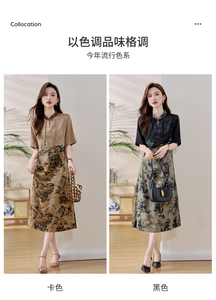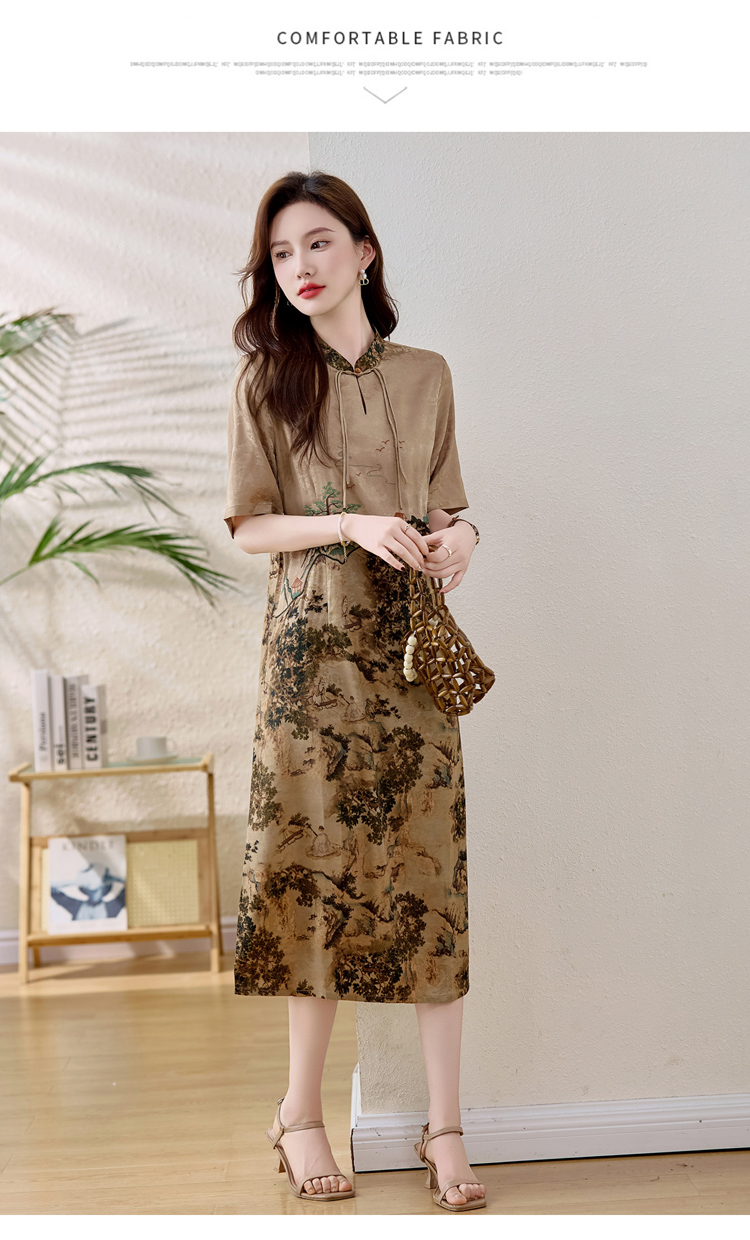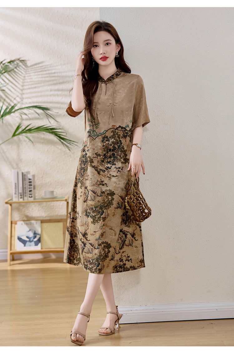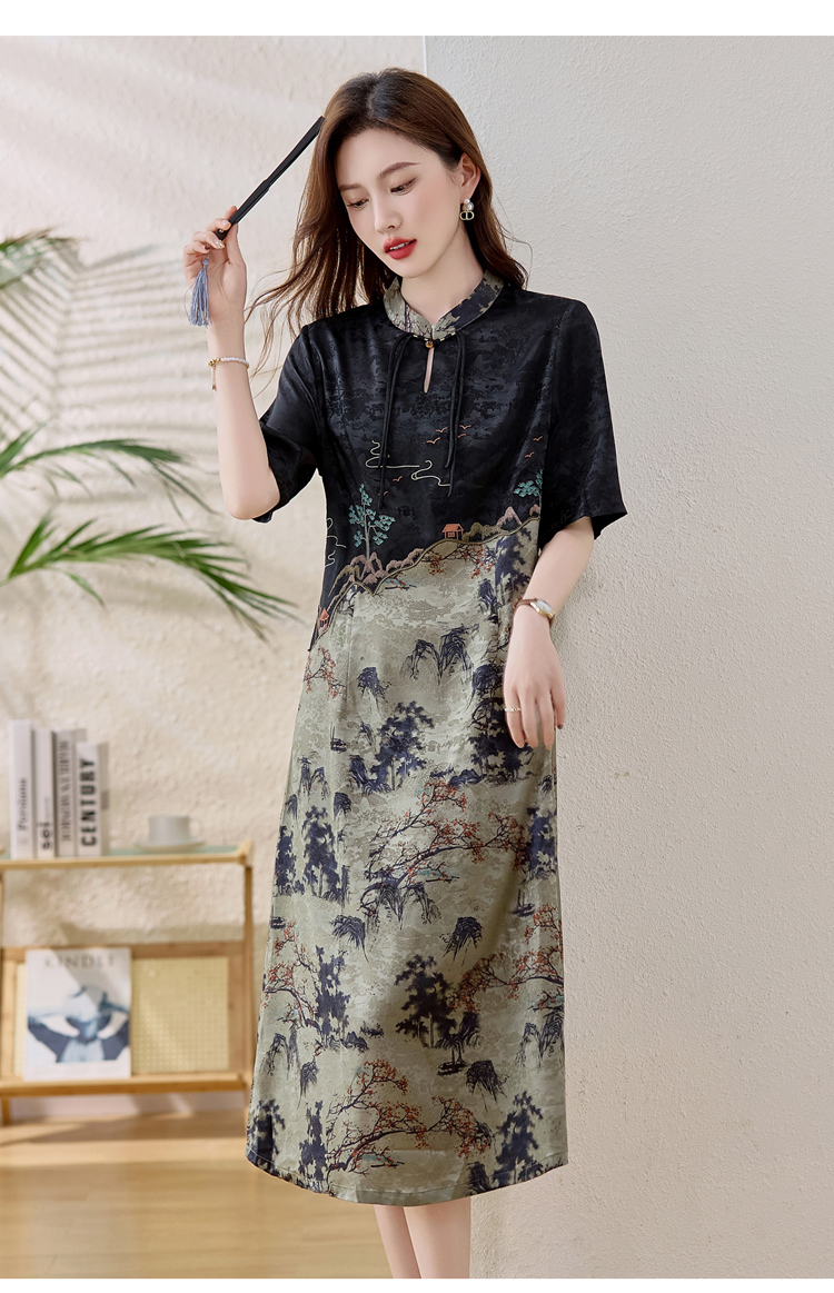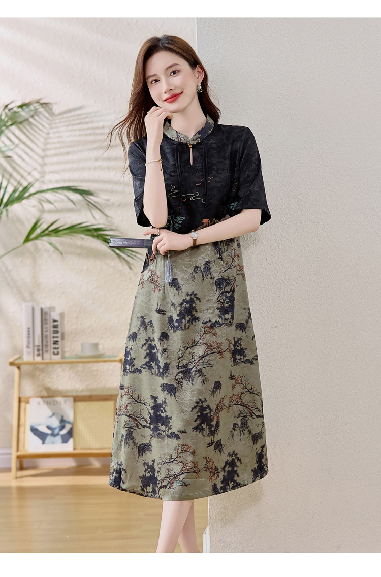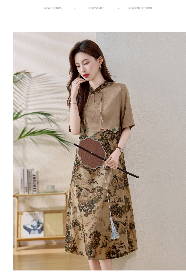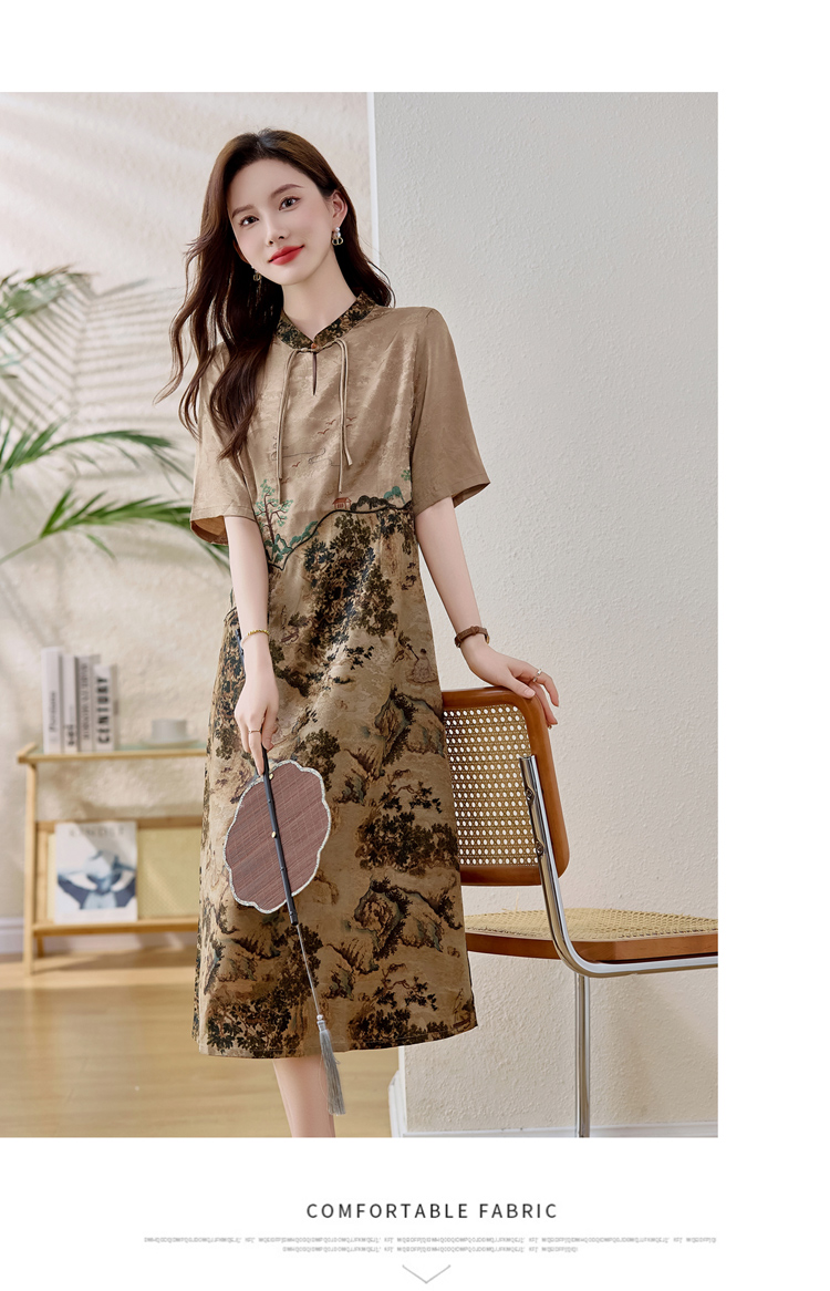 国风印花短袖,气质优雅显瘦连衣裙HR-YYG82955