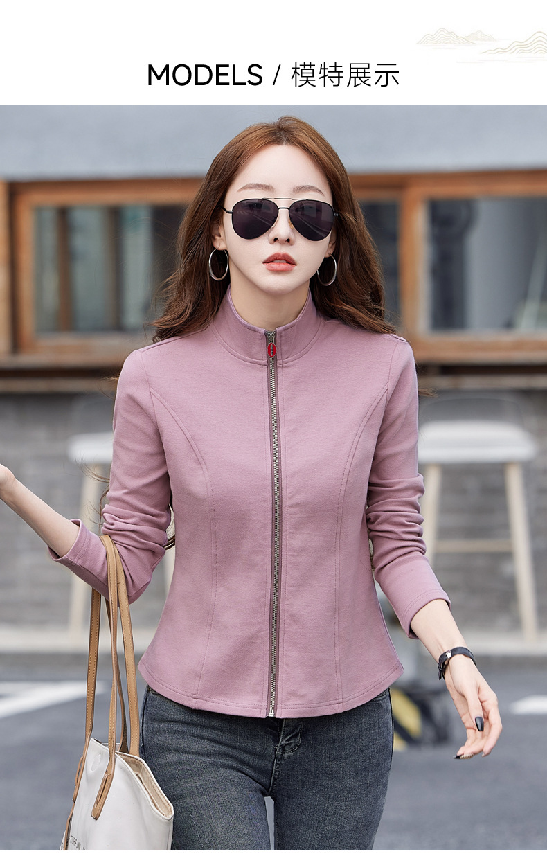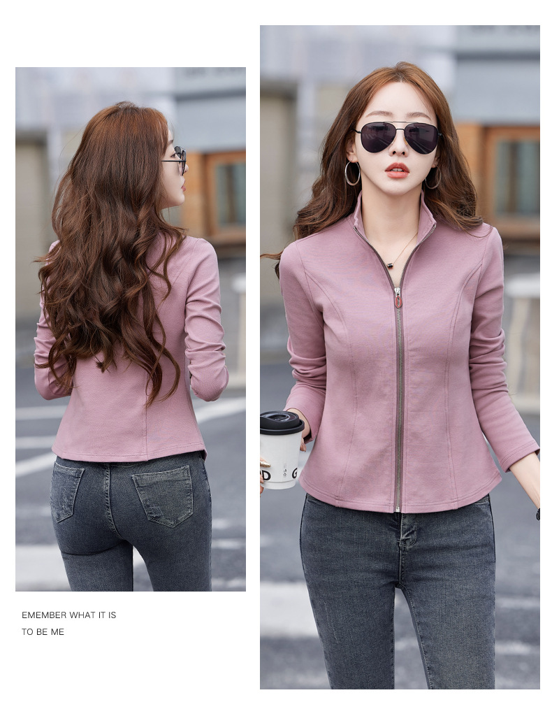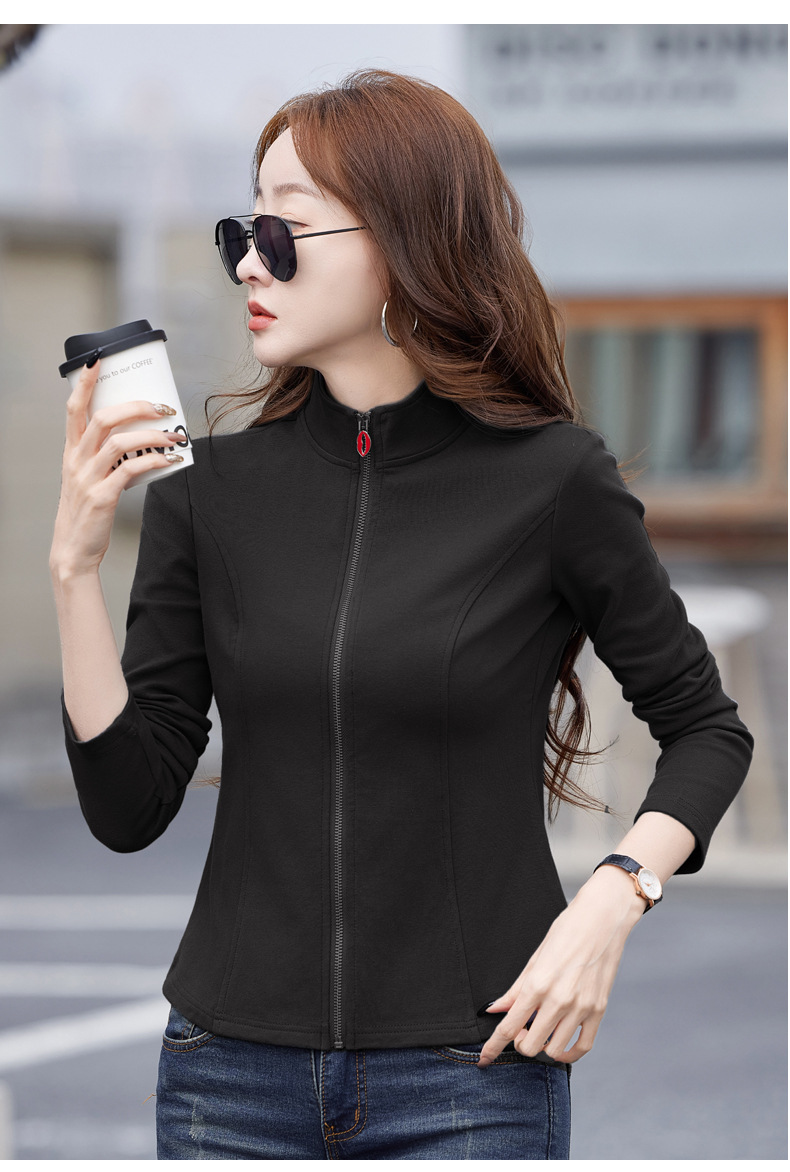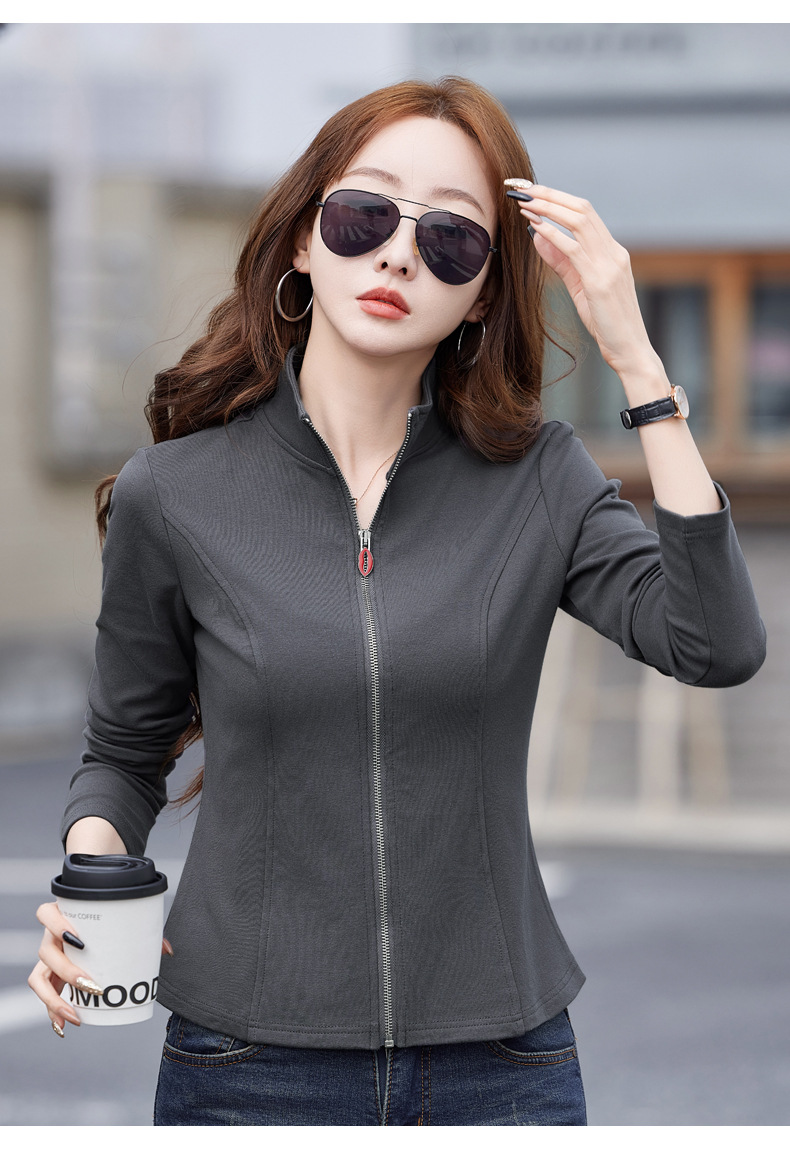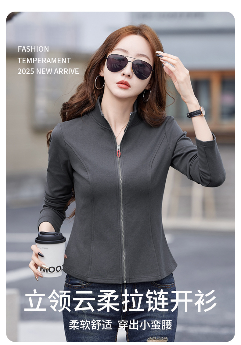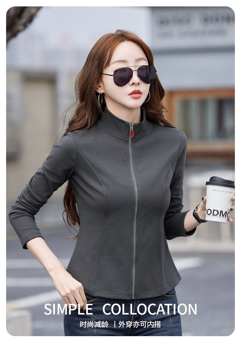 雀说新款立领拉链长袖t恤女装韩版棉质显瘦开衫AL6617