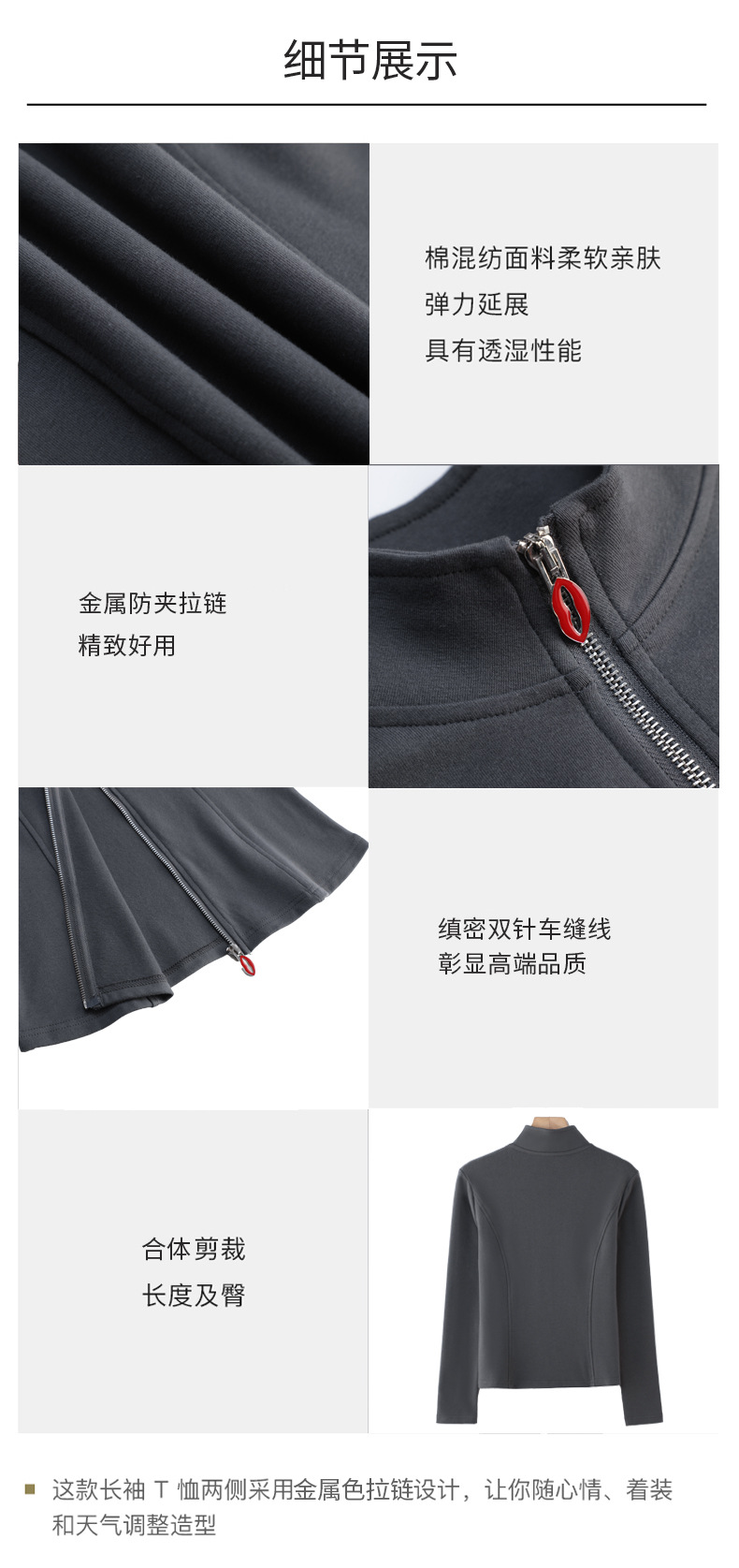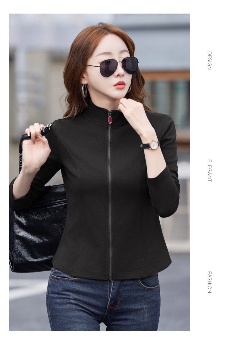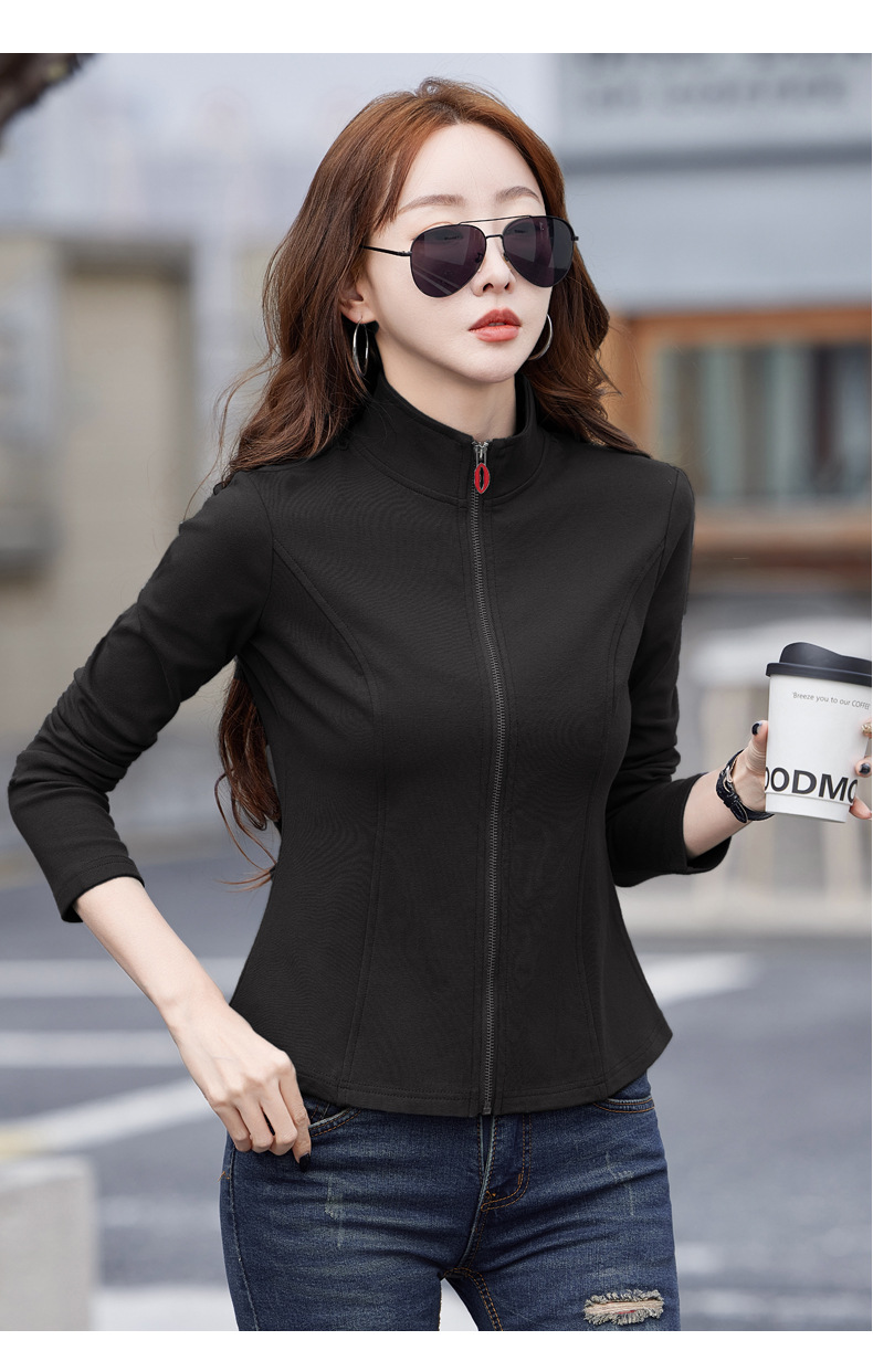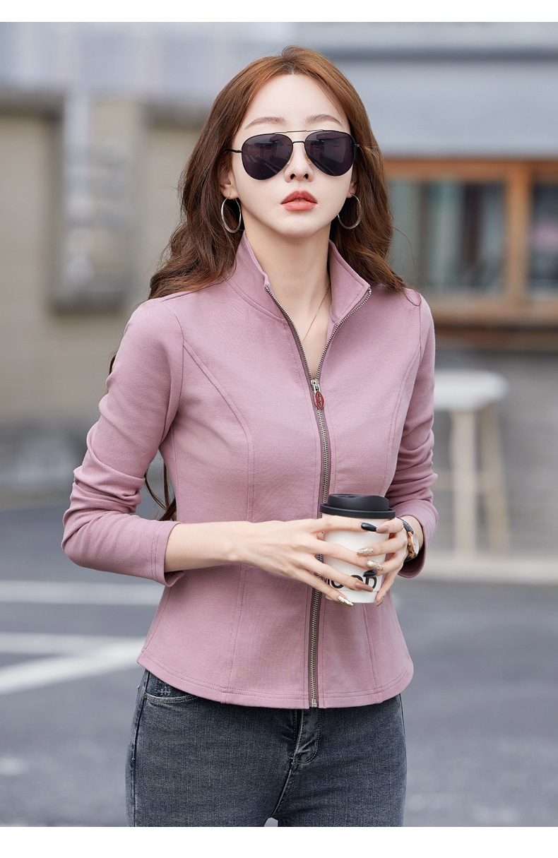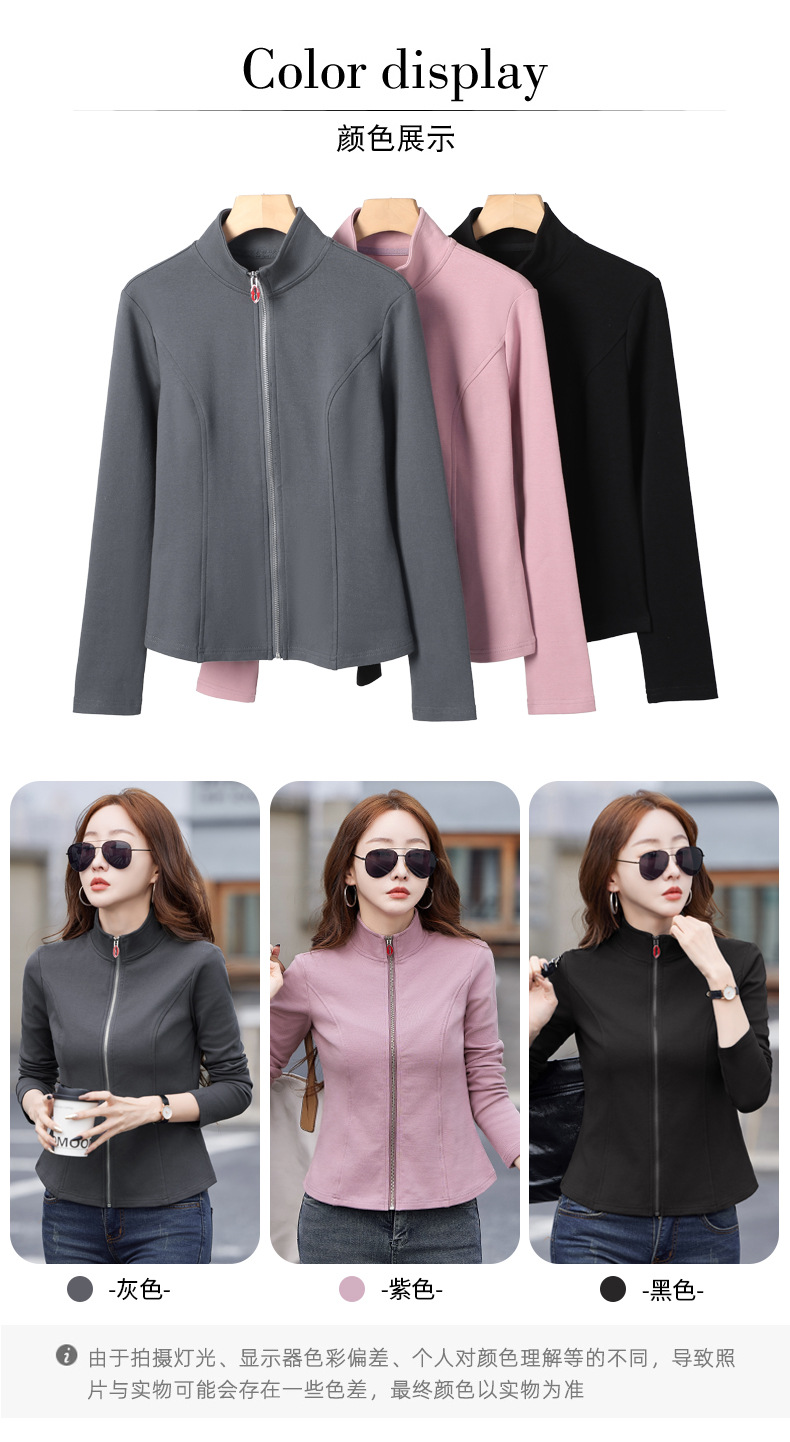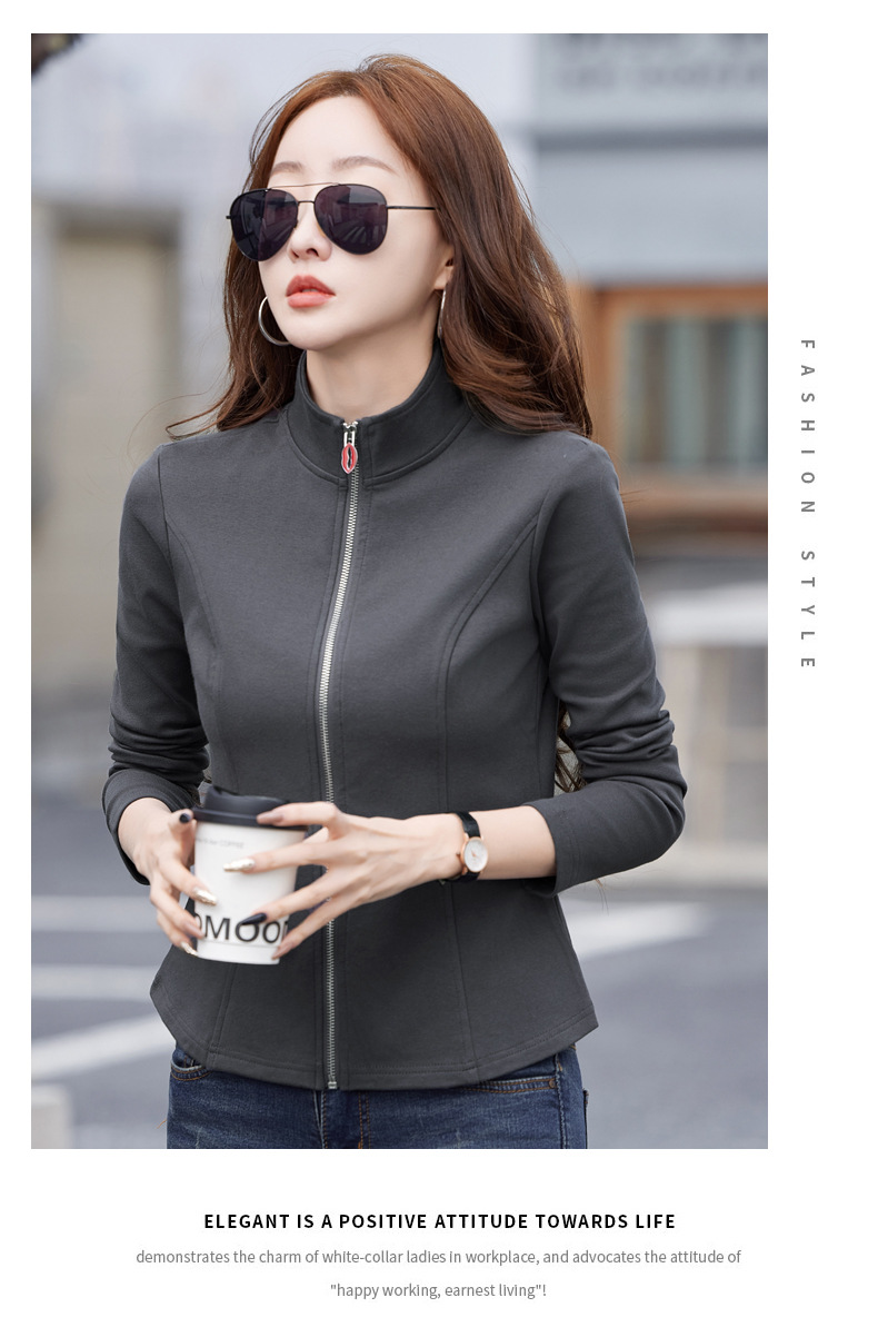 雀说新款立领拉链长袖t恤女装韩版棉质显瘦开衫AL6617