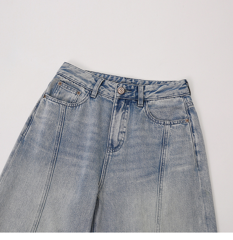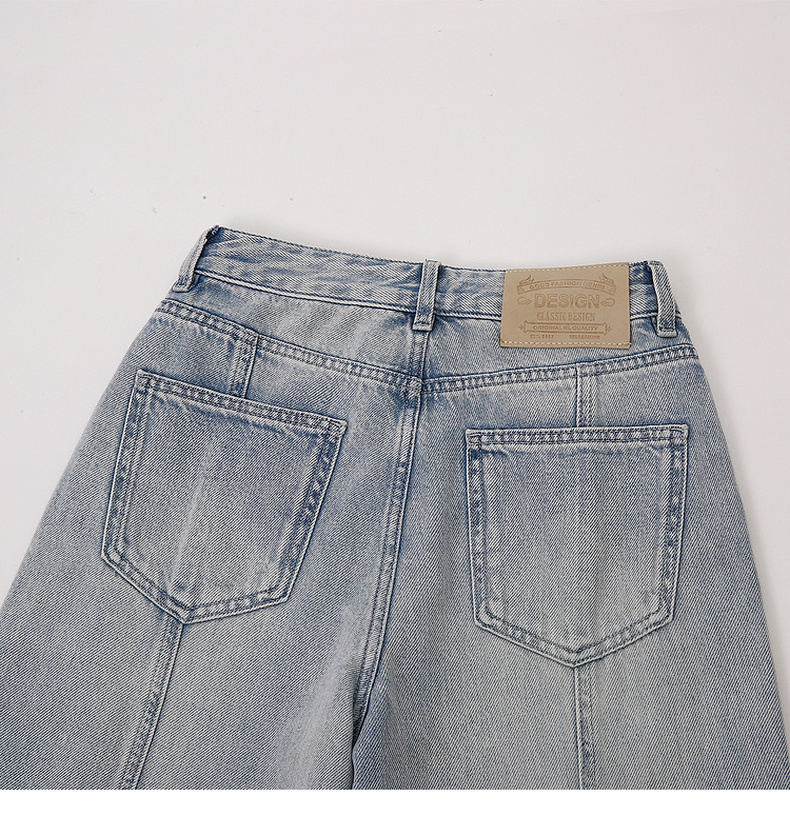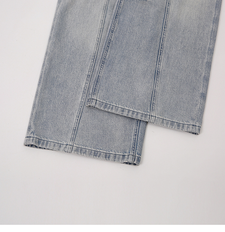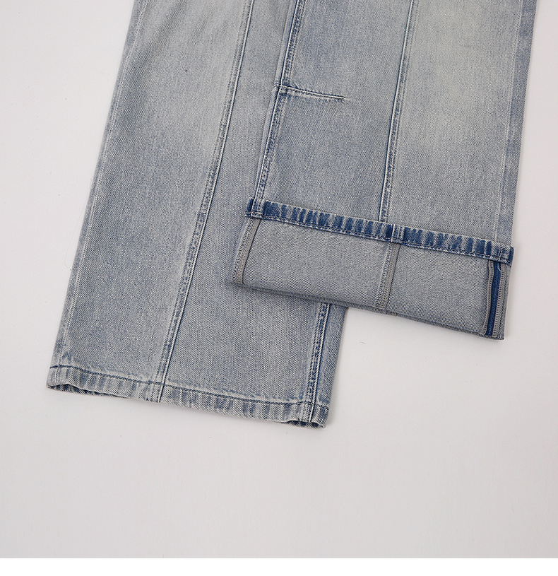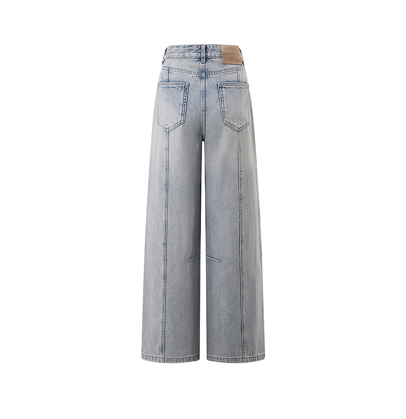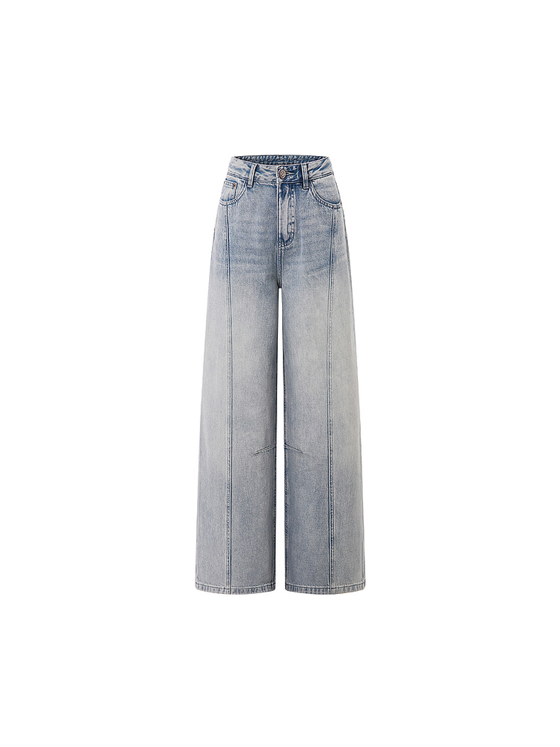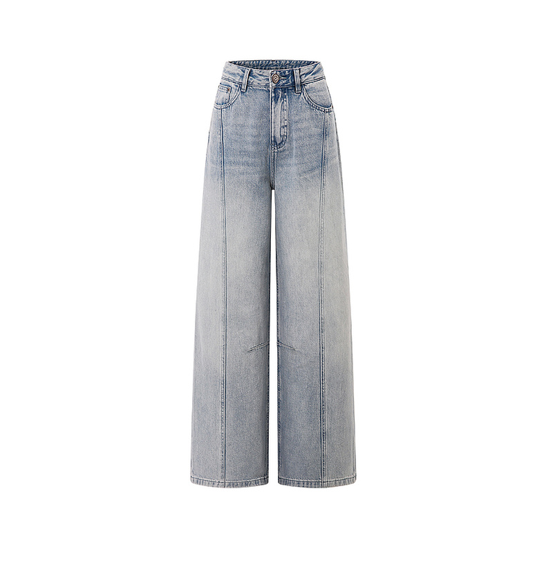 天猫同步【100棉+垂感有型】拉夏贝尔/La Chapelle复古水洗浅蓝牛仔直筒裤新款显瘦显腿直长裤