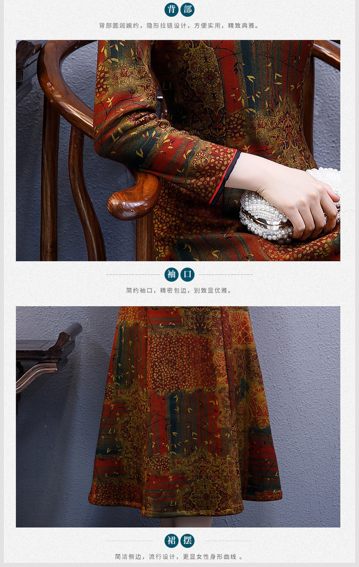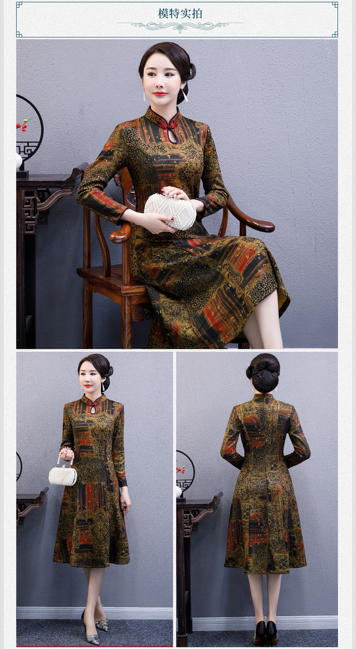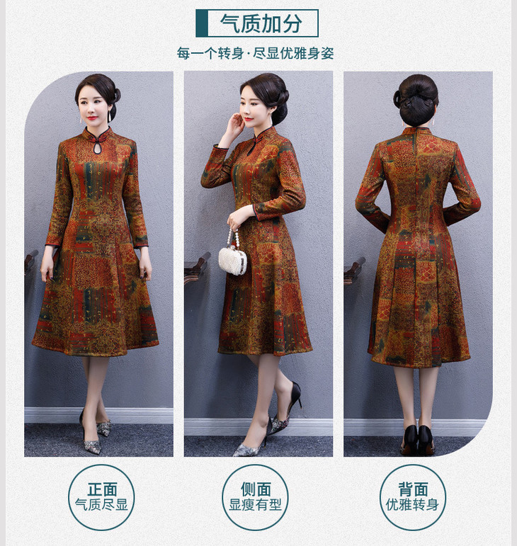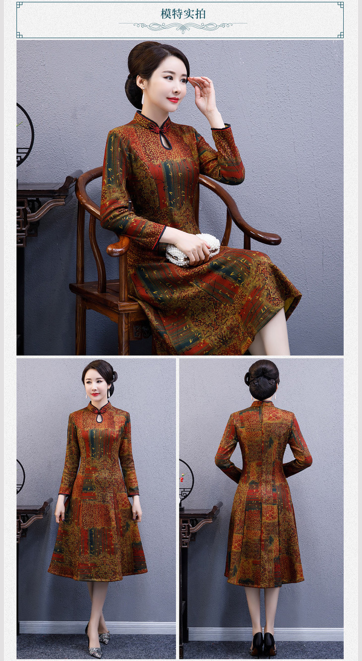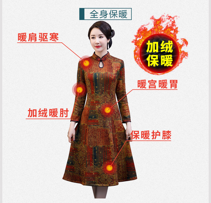 YCE-A273-2090气质大码加绒加厚改良旗袍连衣裙