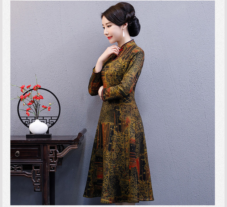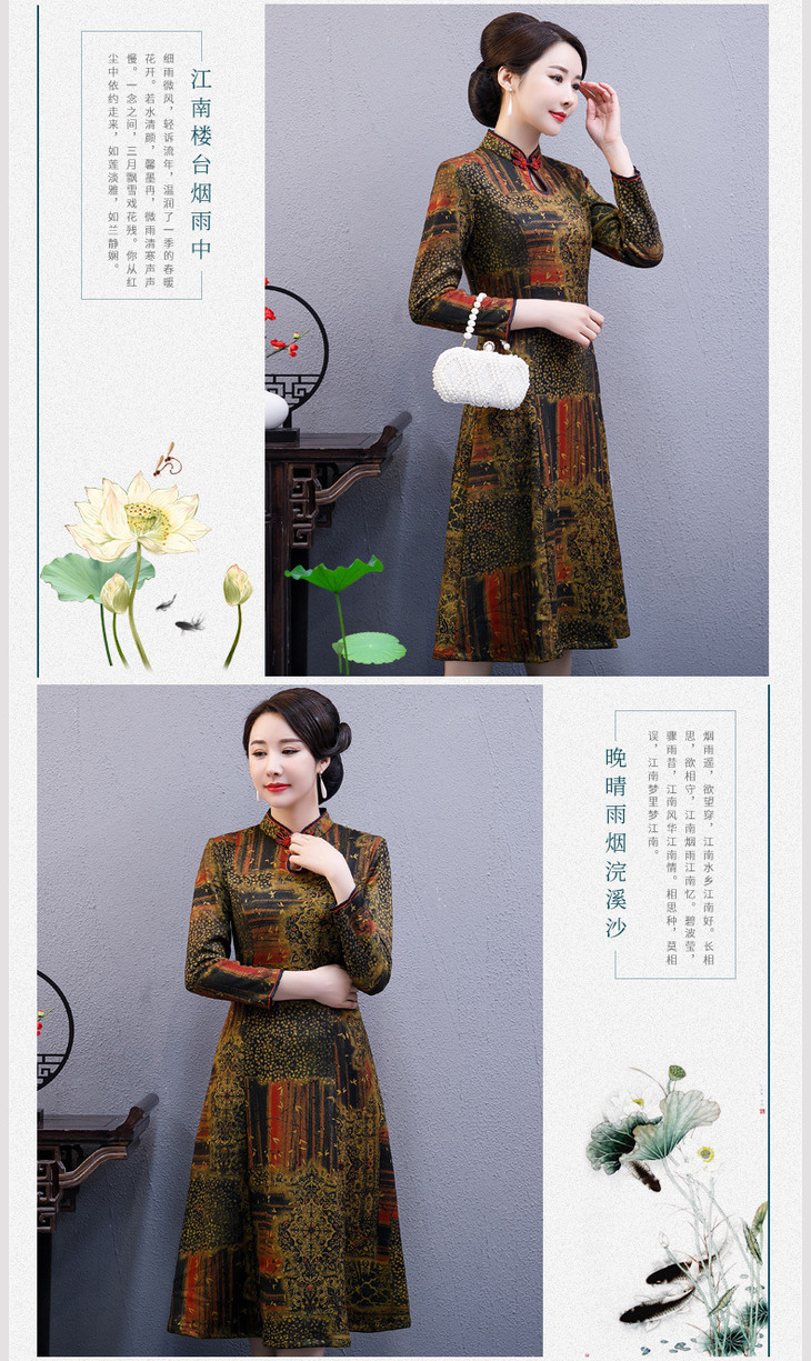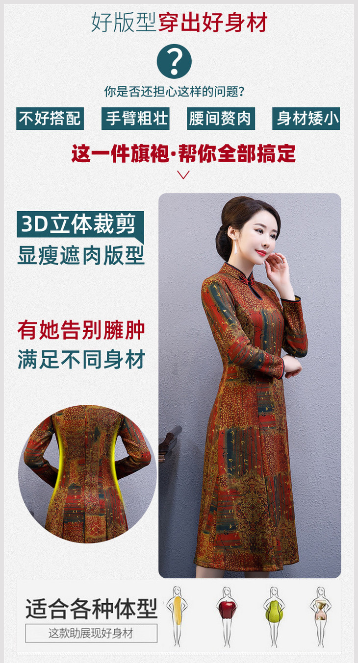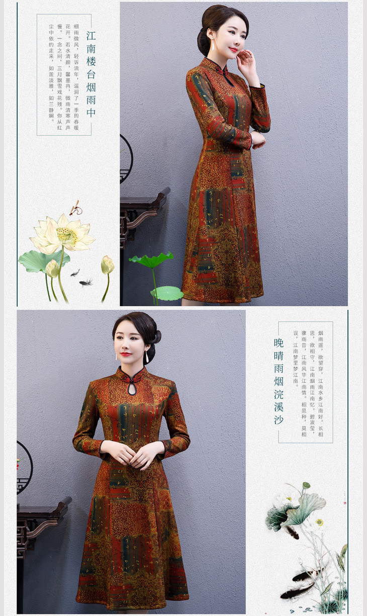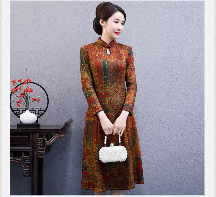 YCE-A273-2090气质大码加绒加厚改良旗袍连衣裙