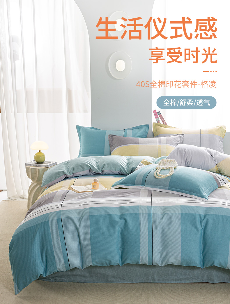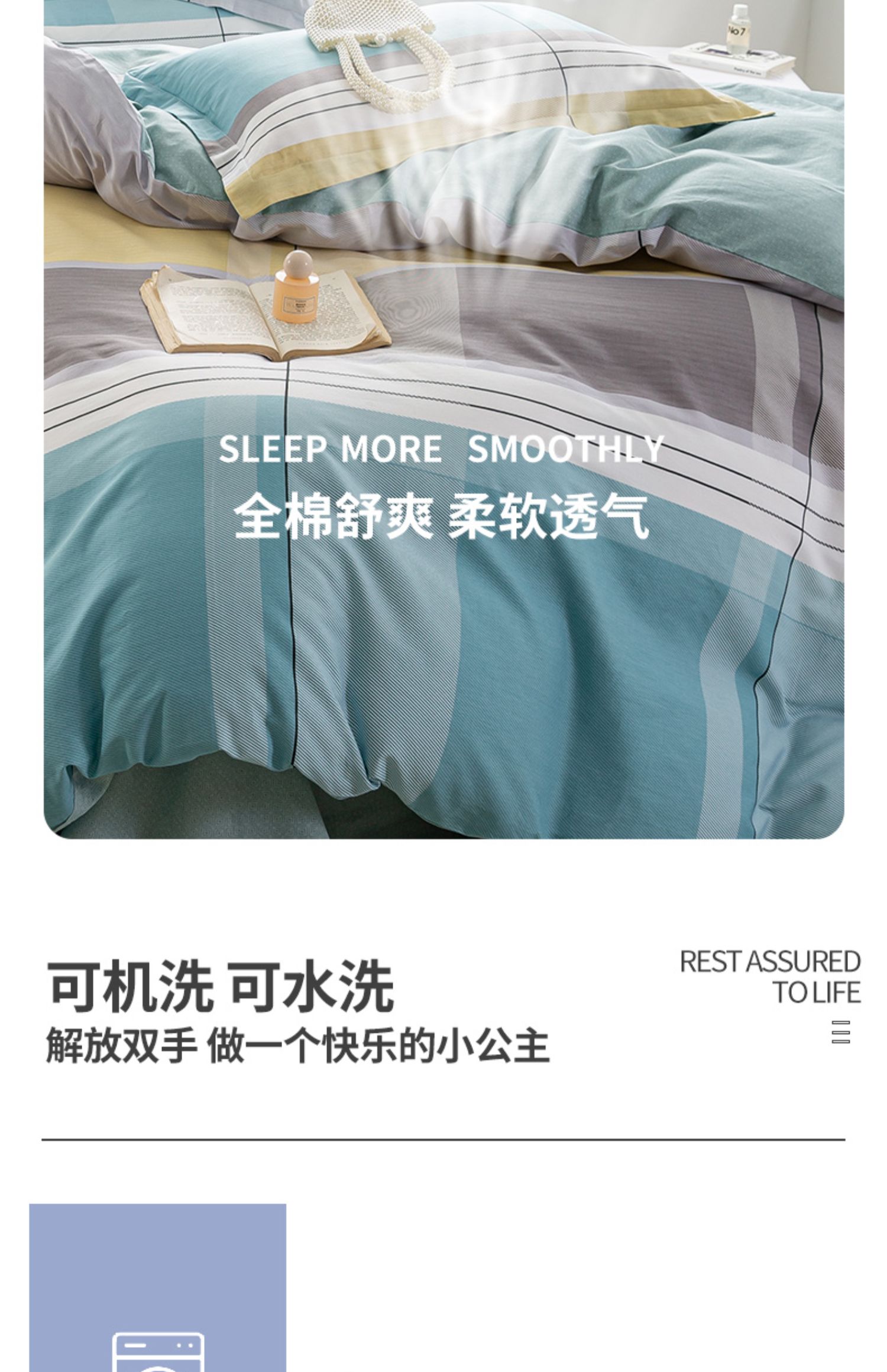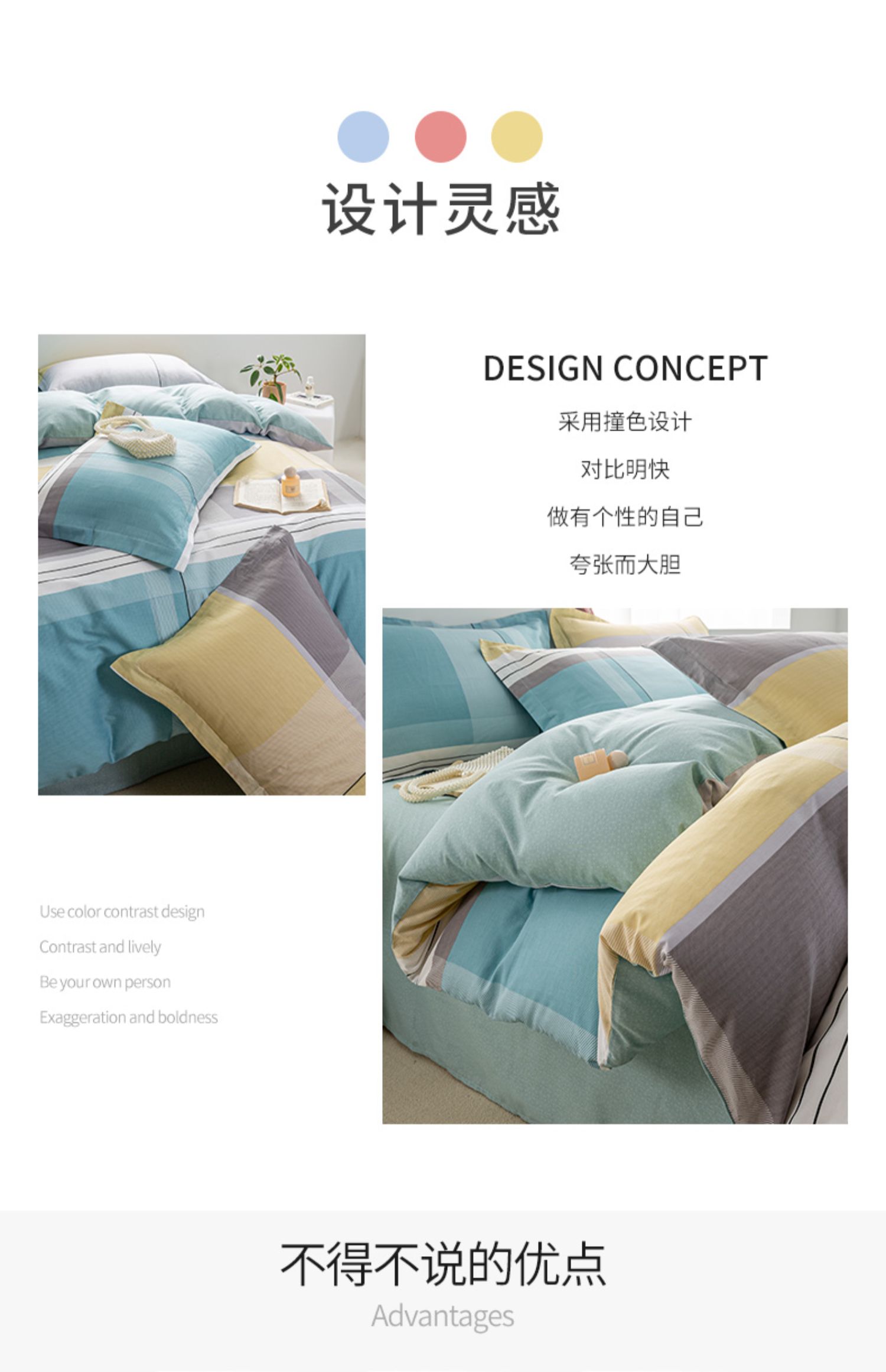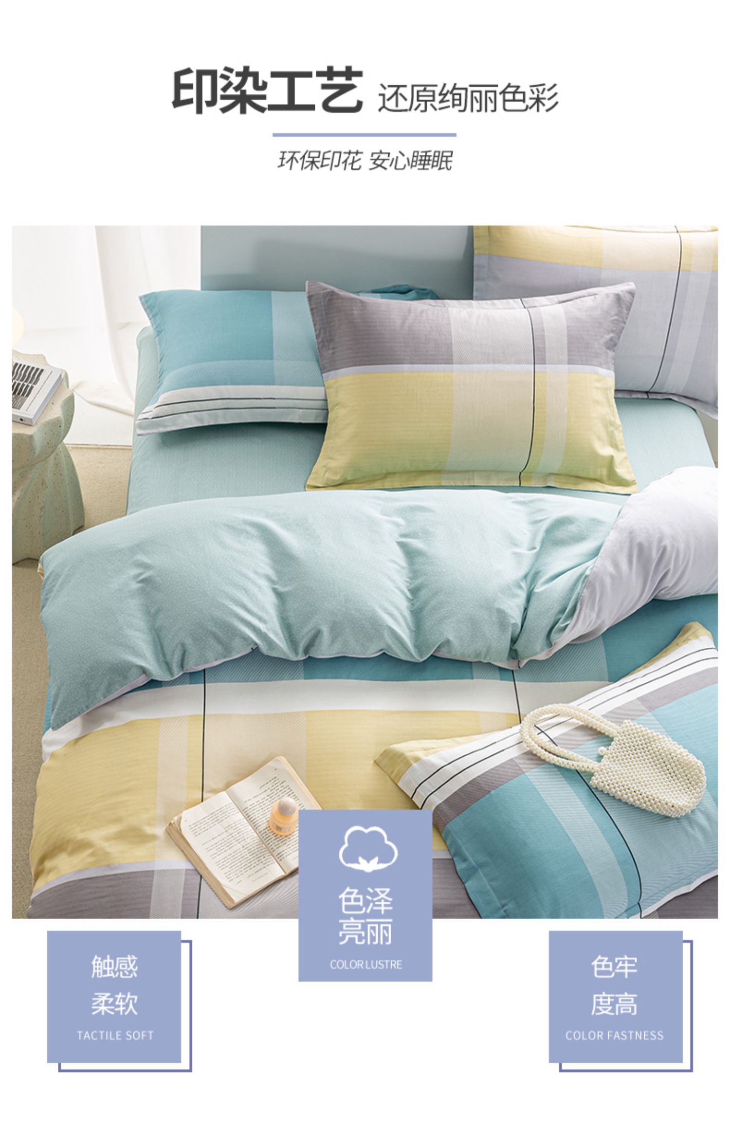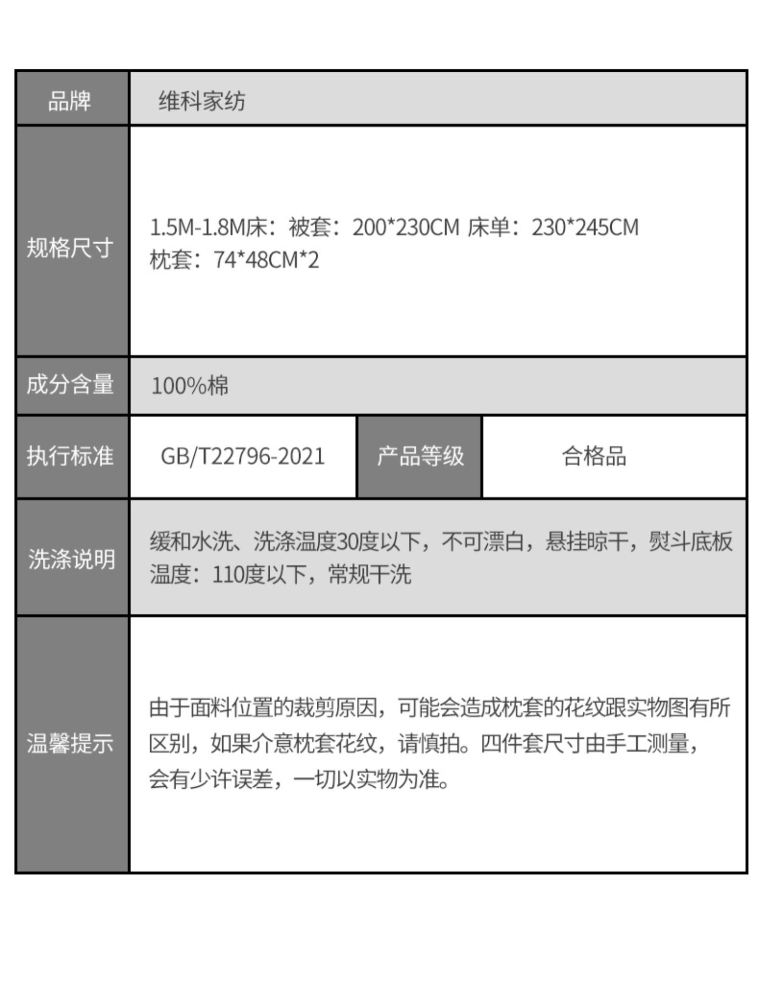 【维科家纺】全棉四件套100纯棉简约床品清新四季被套三件套1.5米1.8