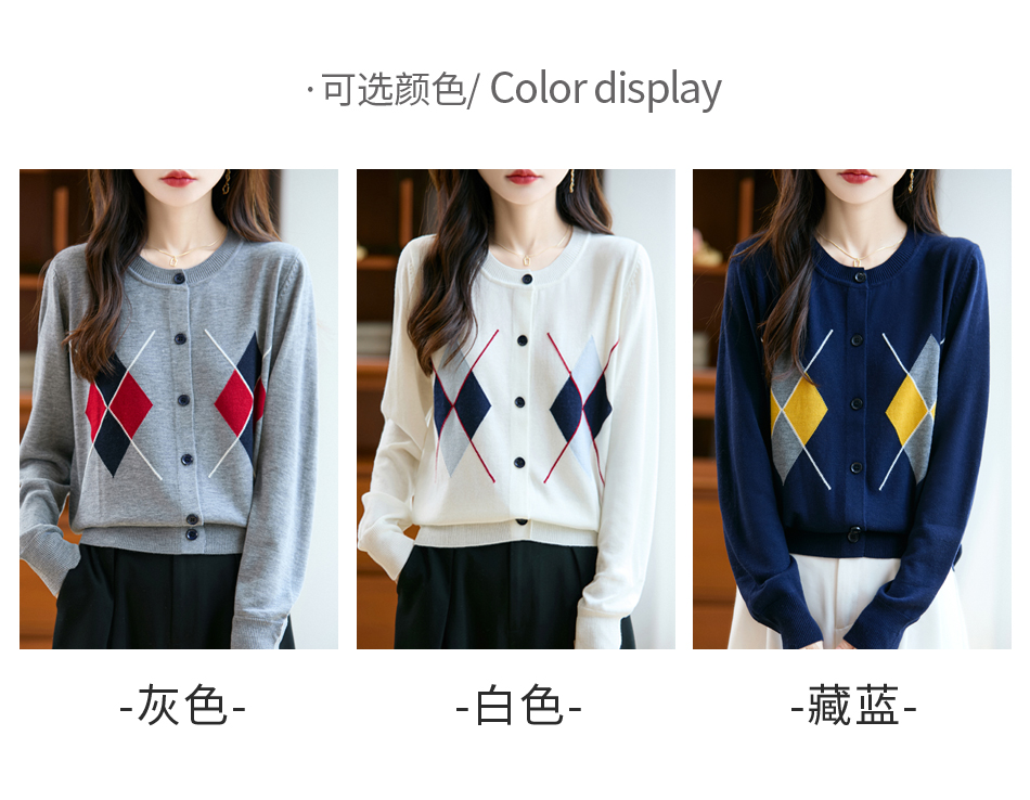 纤束马精纺羊毛菱格圆领开衫 NG-070