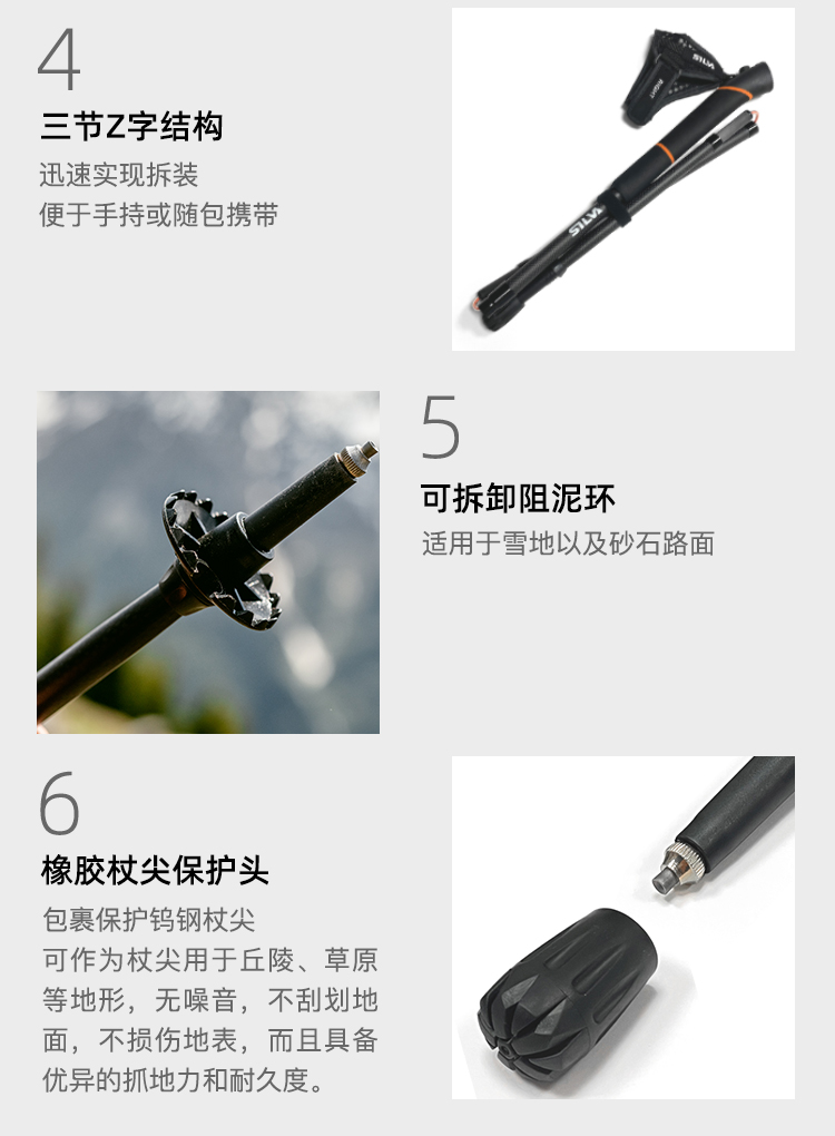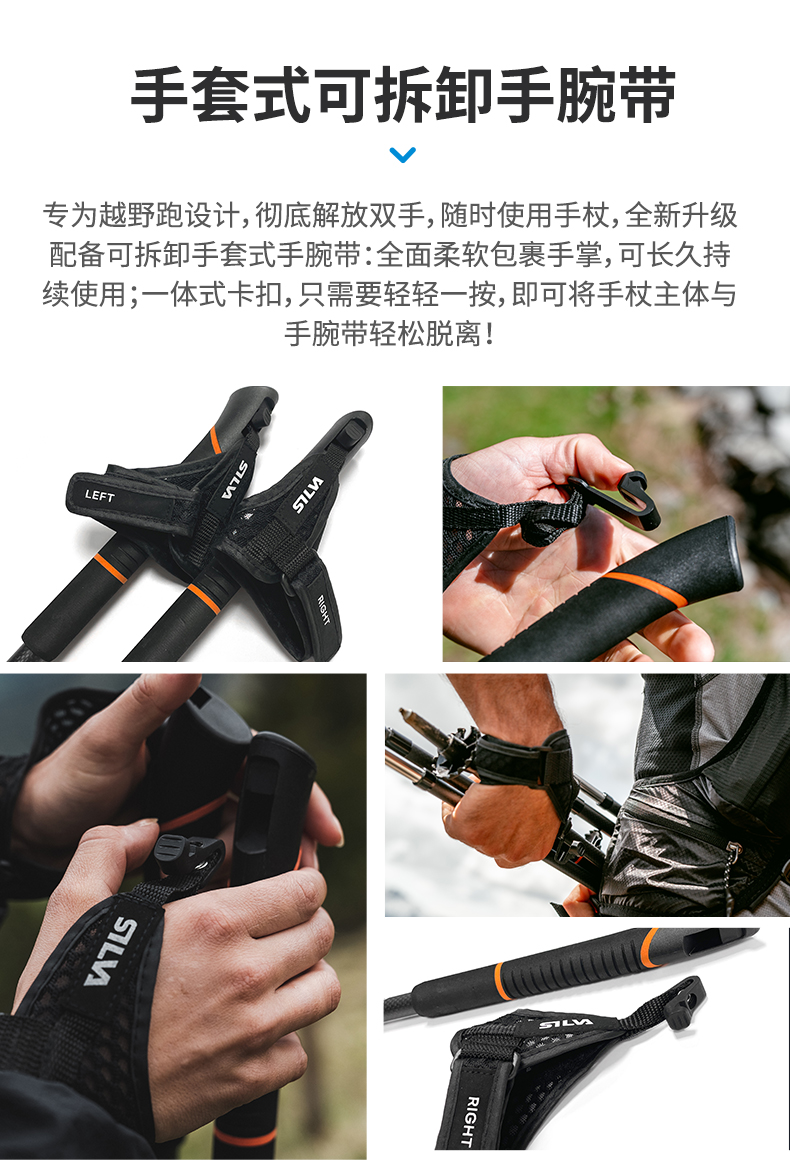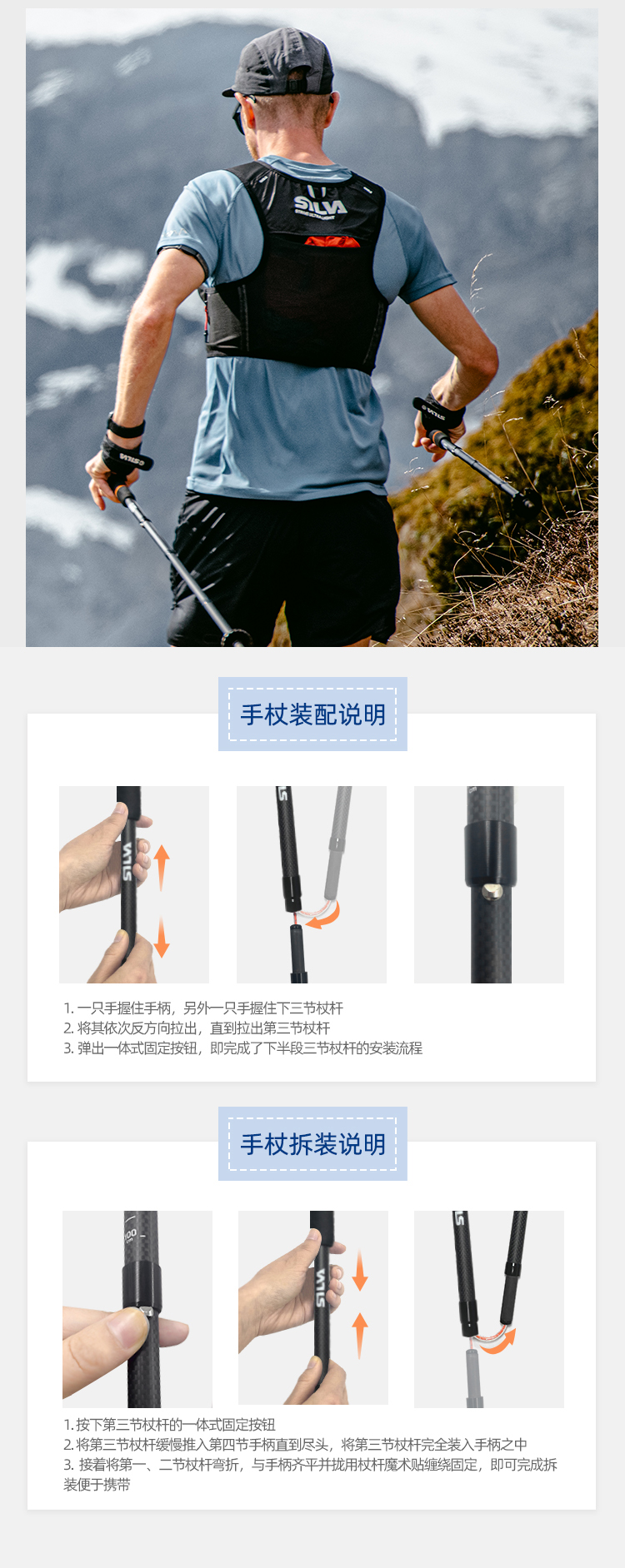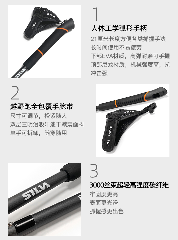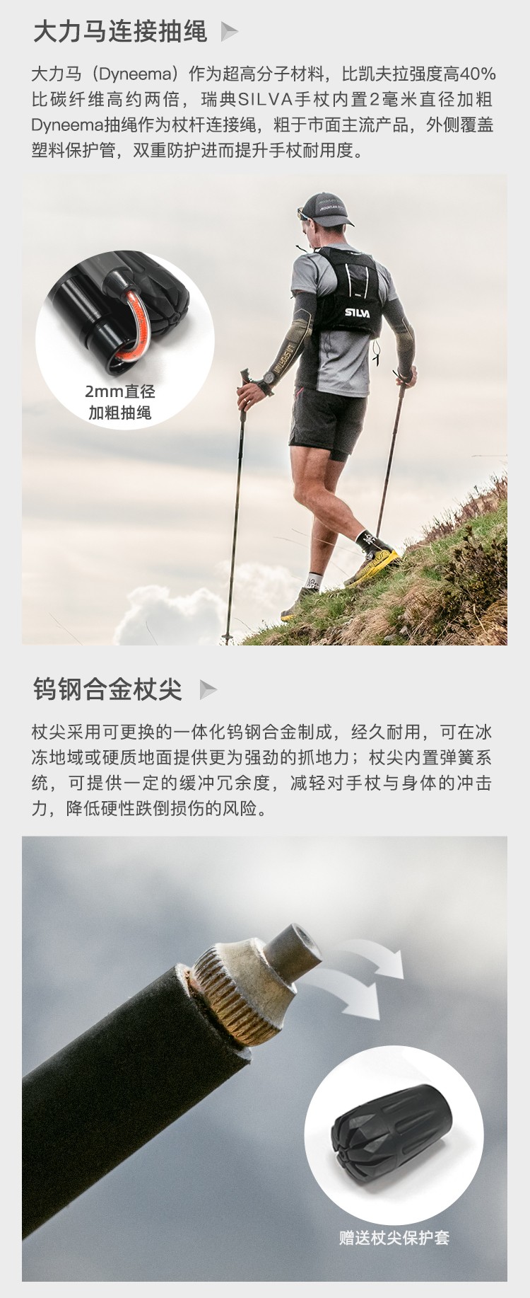 瑞典SILVA碳纤维Z字越野杖 Running poles carbon 男女通用户外跑步越野跑登山耐力跑比赛装备 一旦折断 终生换新(有赠品)