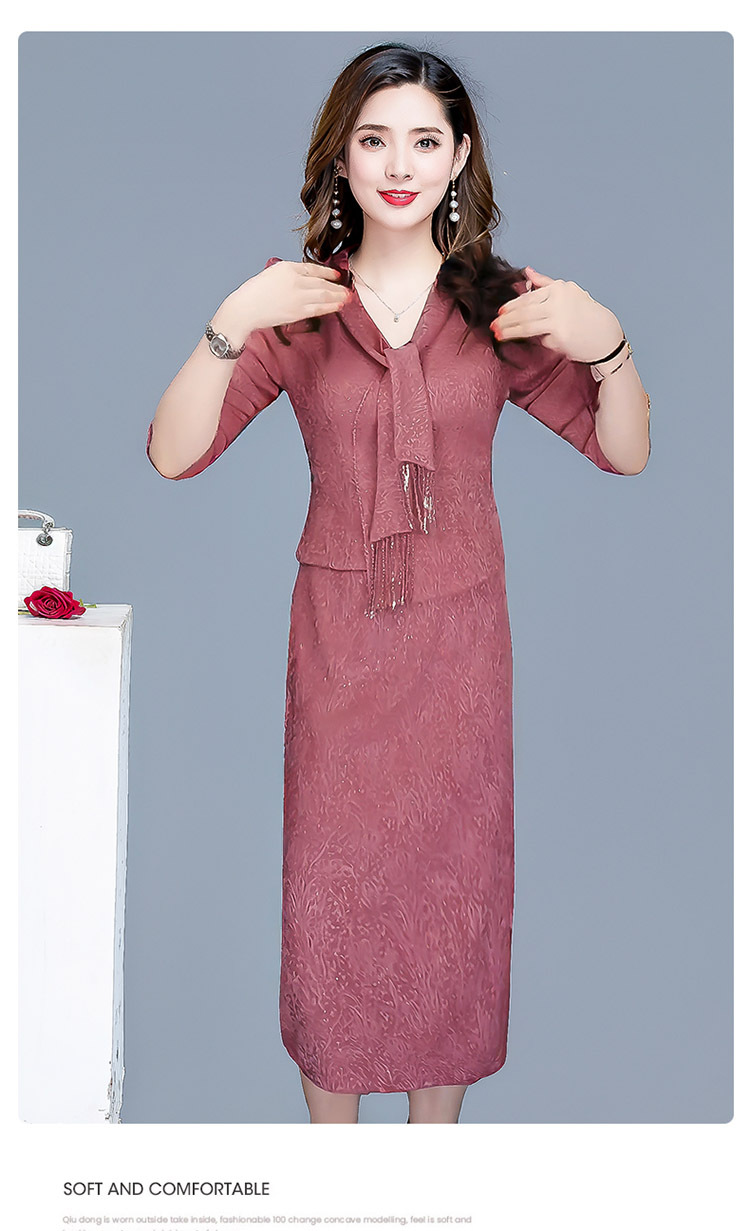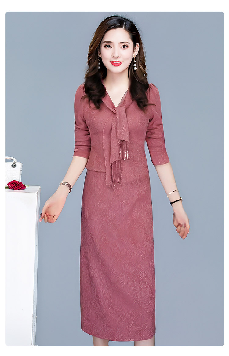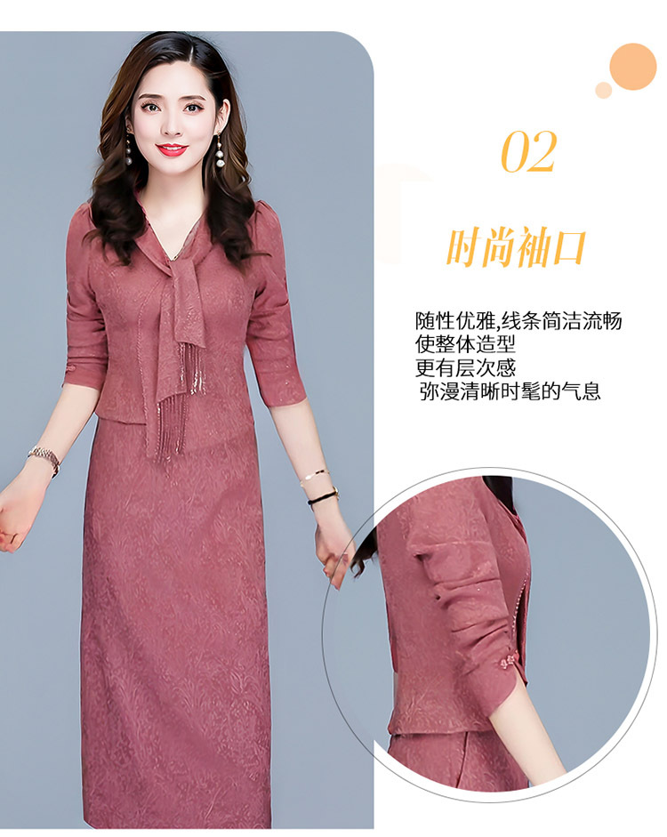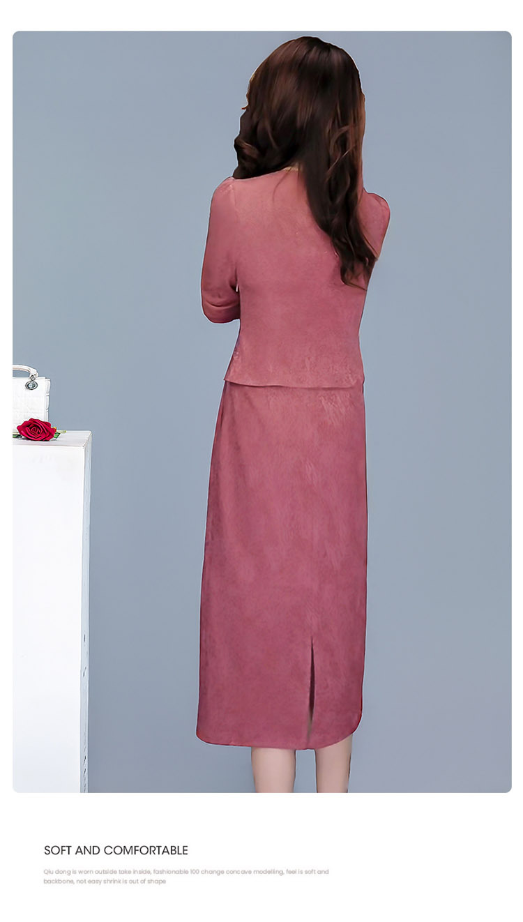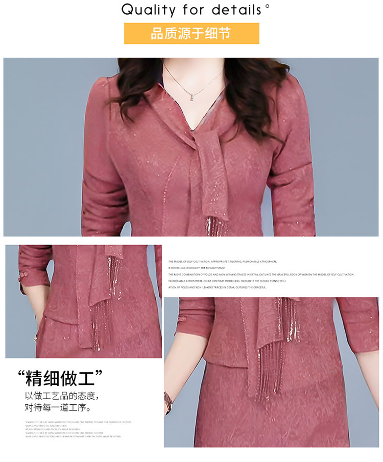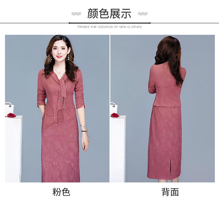 QYMTYH-99H233-Y连衣裙2025年新款秋季女装粉色设计感假两件中长款包臀一步裙 商品图3