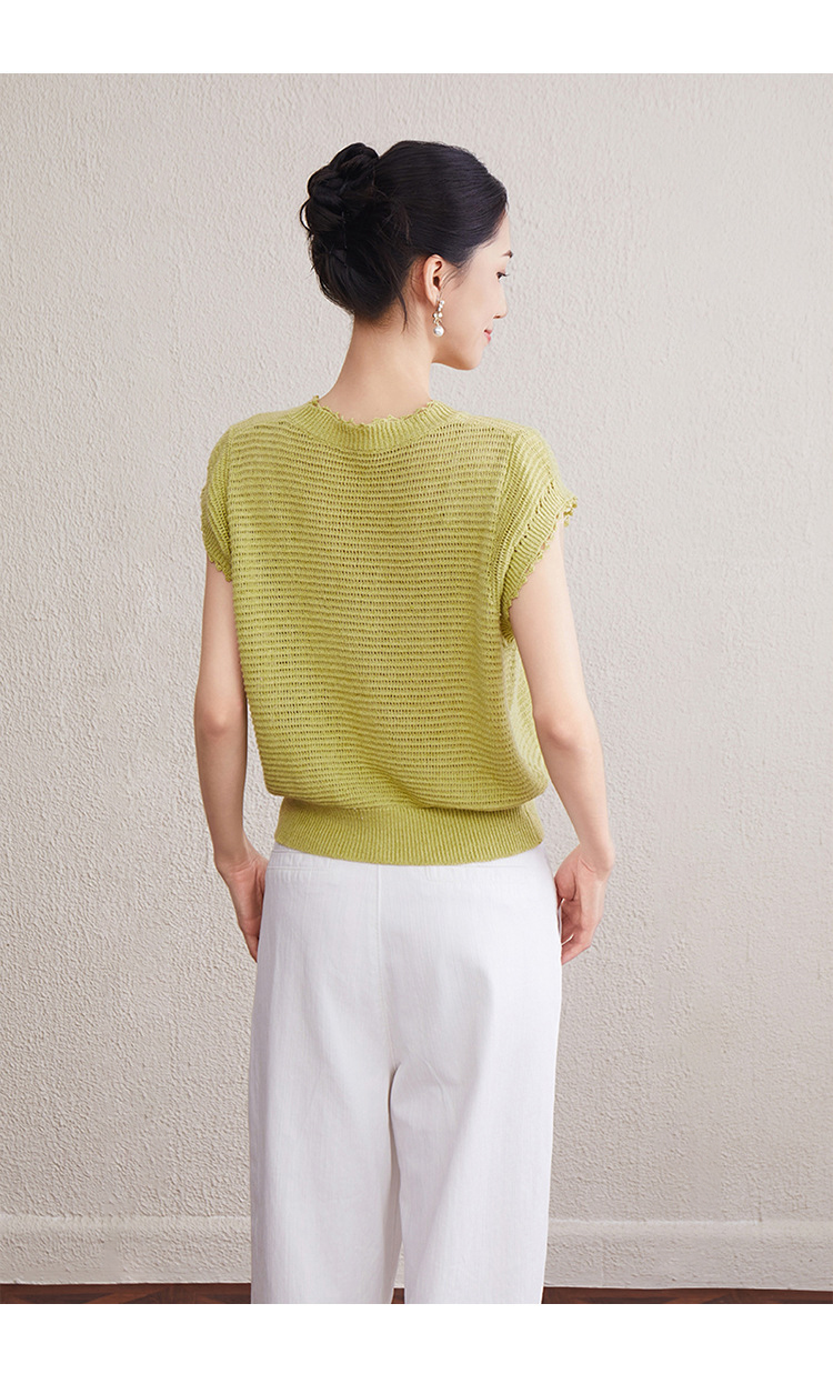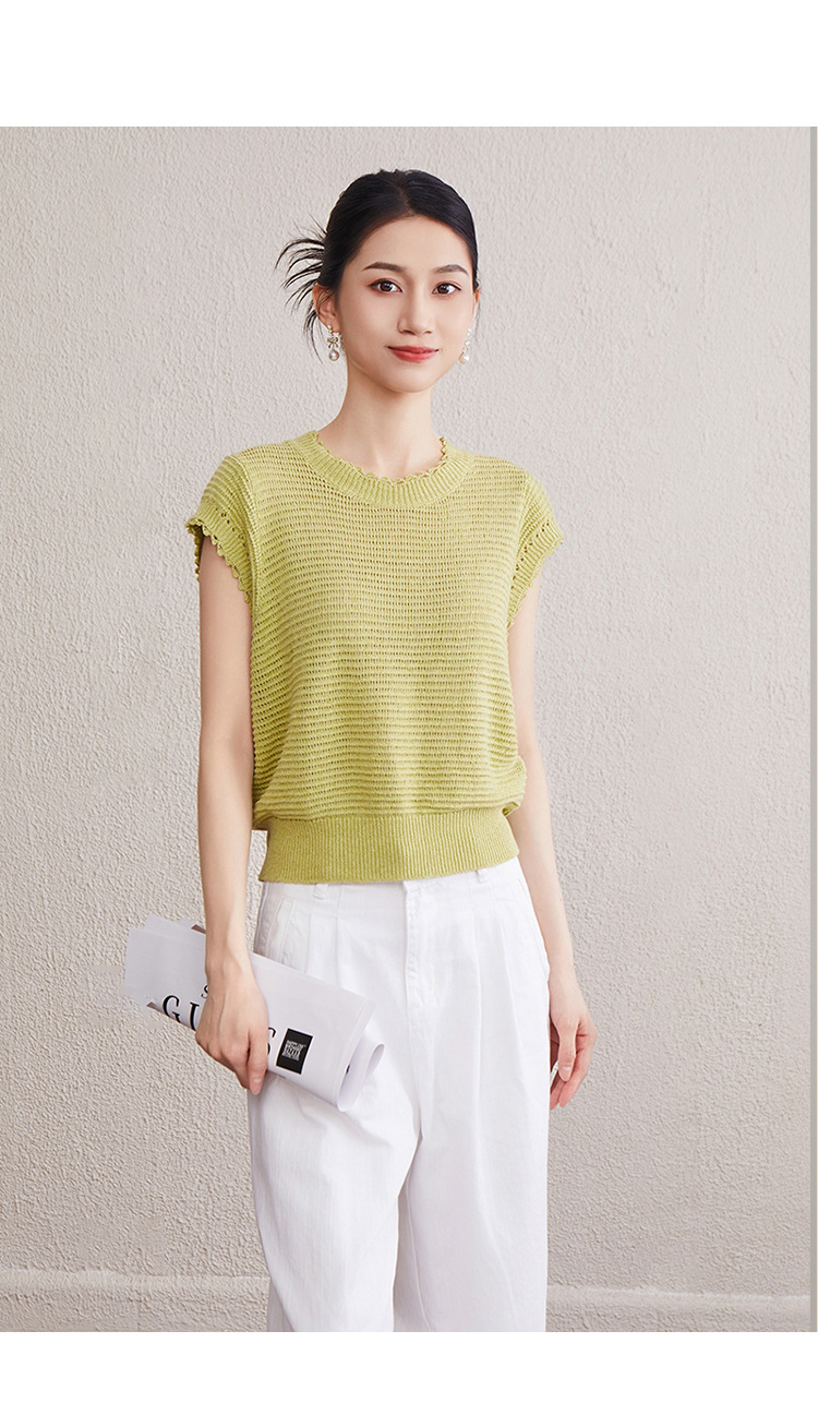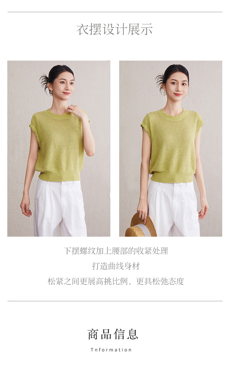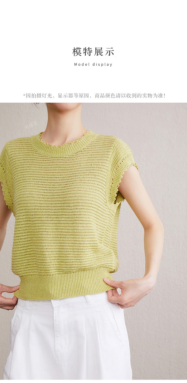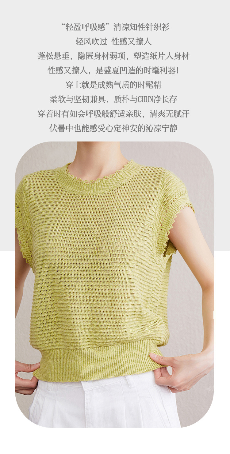 「自」全新升级【铂金会员257/天猫349/差价92】(11527)洛诗琳韩版简约设计感上衣2025夏季新款通勤百搭镂空针织衫