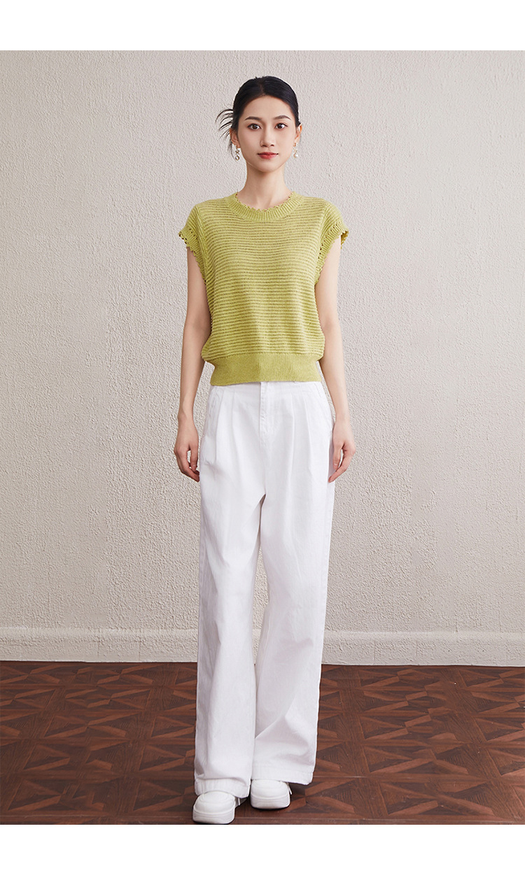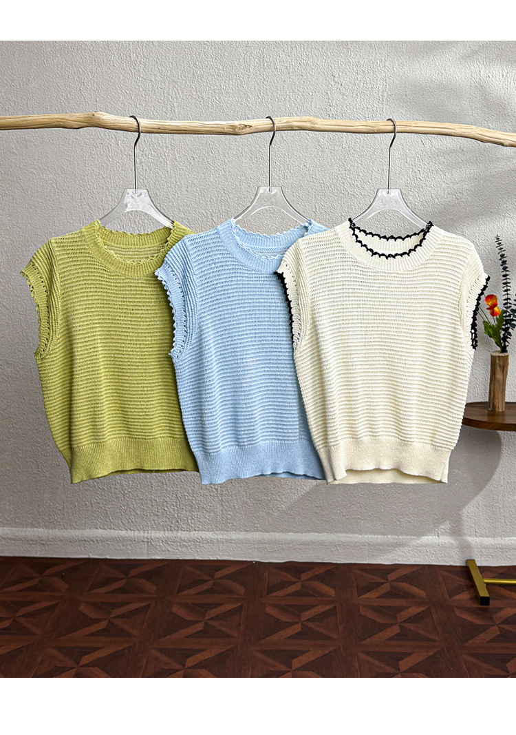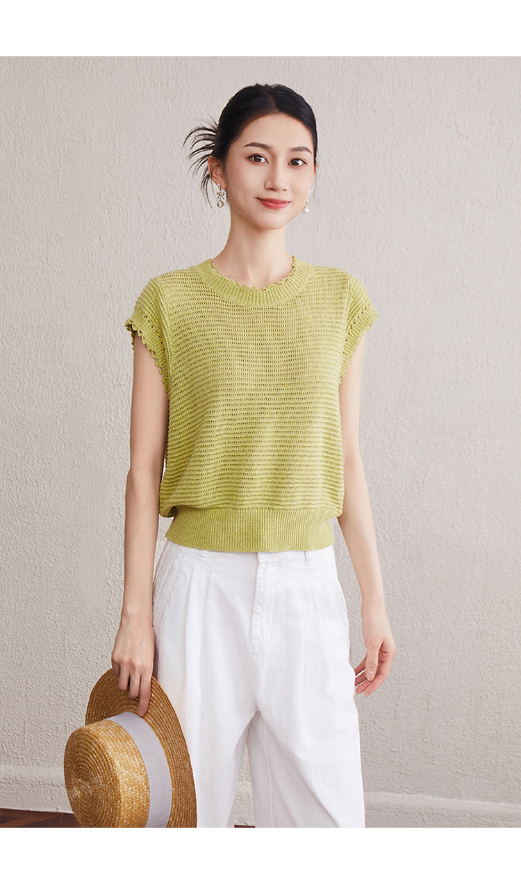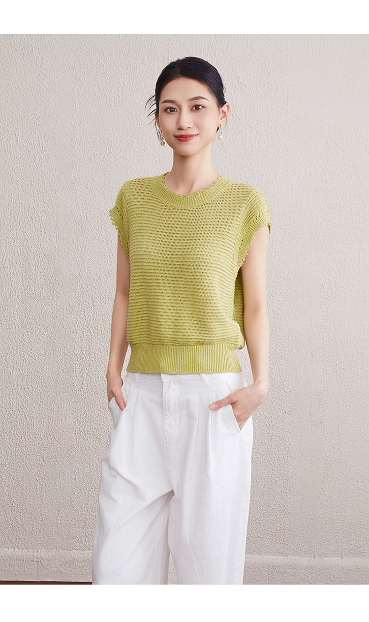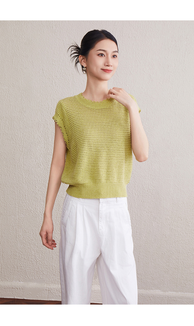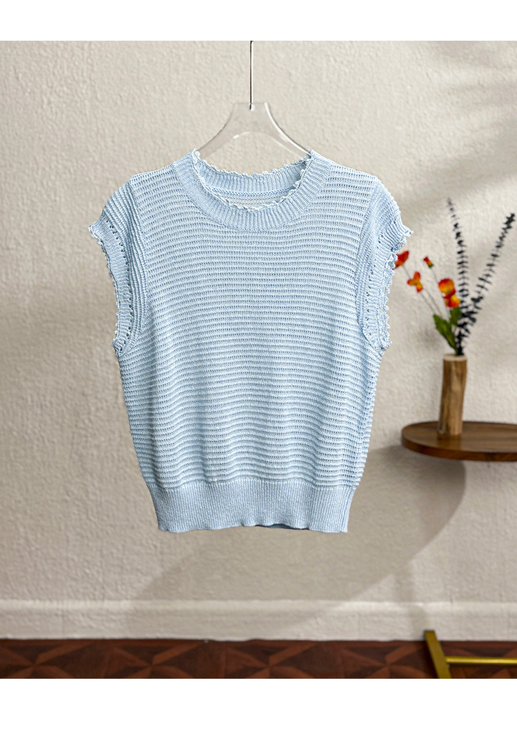 「自」全新升级【铂金会员257/天猫349/差价92】(11527)洛诗琳韩版简约设计感上衣2025夏季新款通勤百搭镂空针织衫
