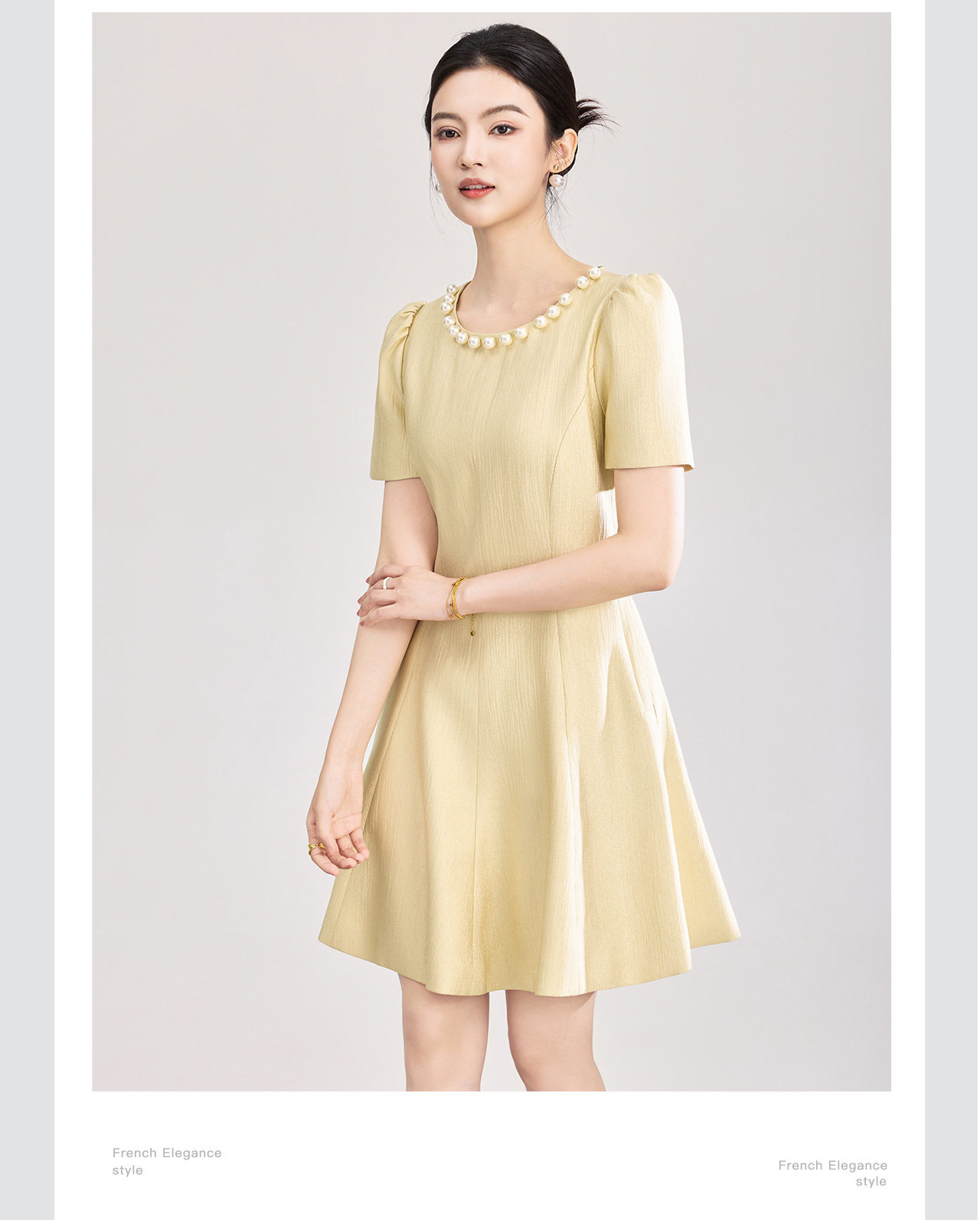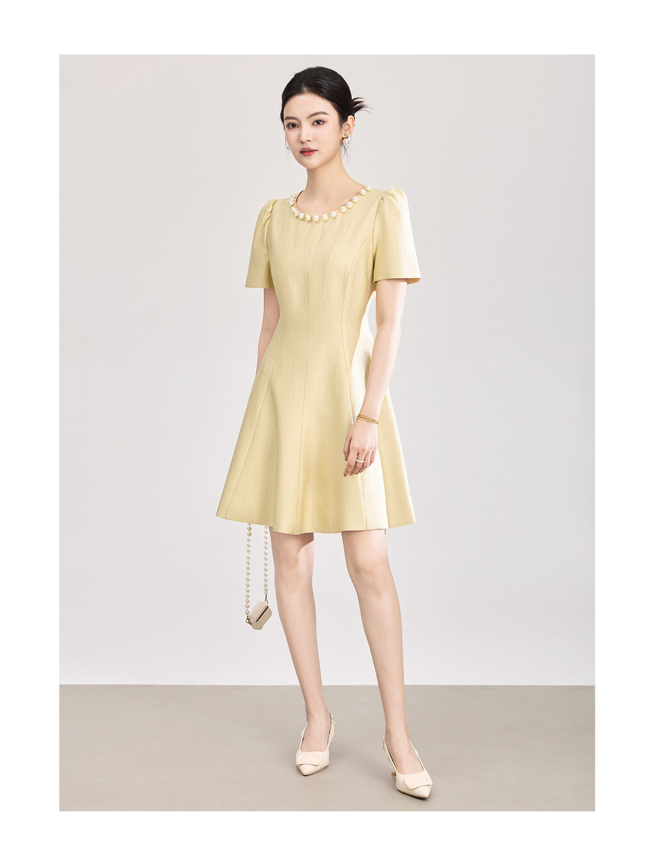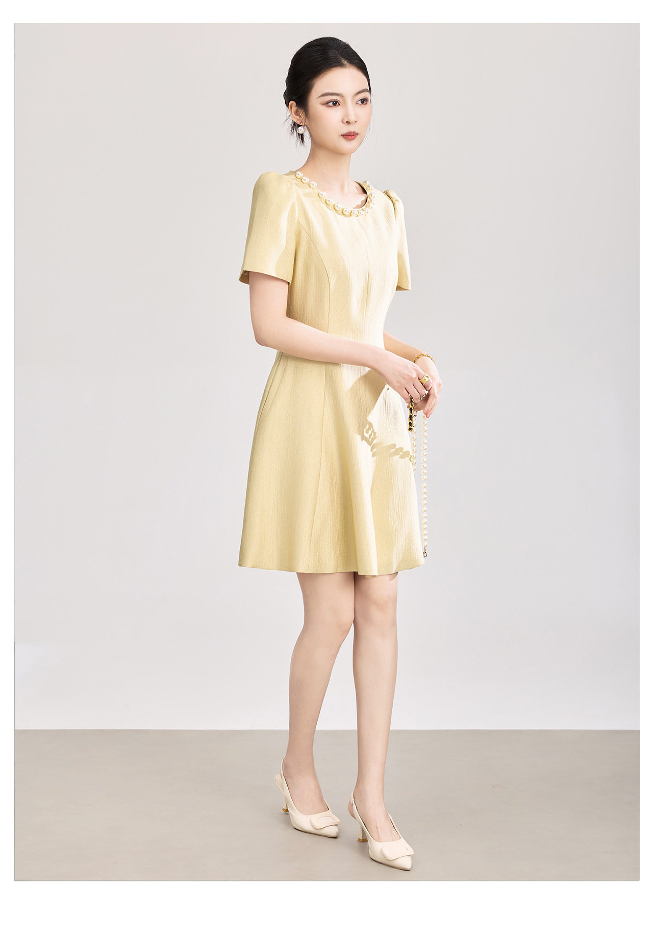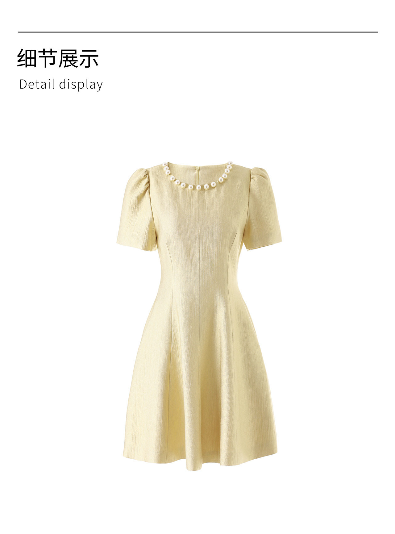 「高货wl」全新升级【铂金会员358/天猫479/差价121】(03147)洛诗琳气质珍珠领连衣裙2026春季法式泡泡袖收腰显瘦A字裙