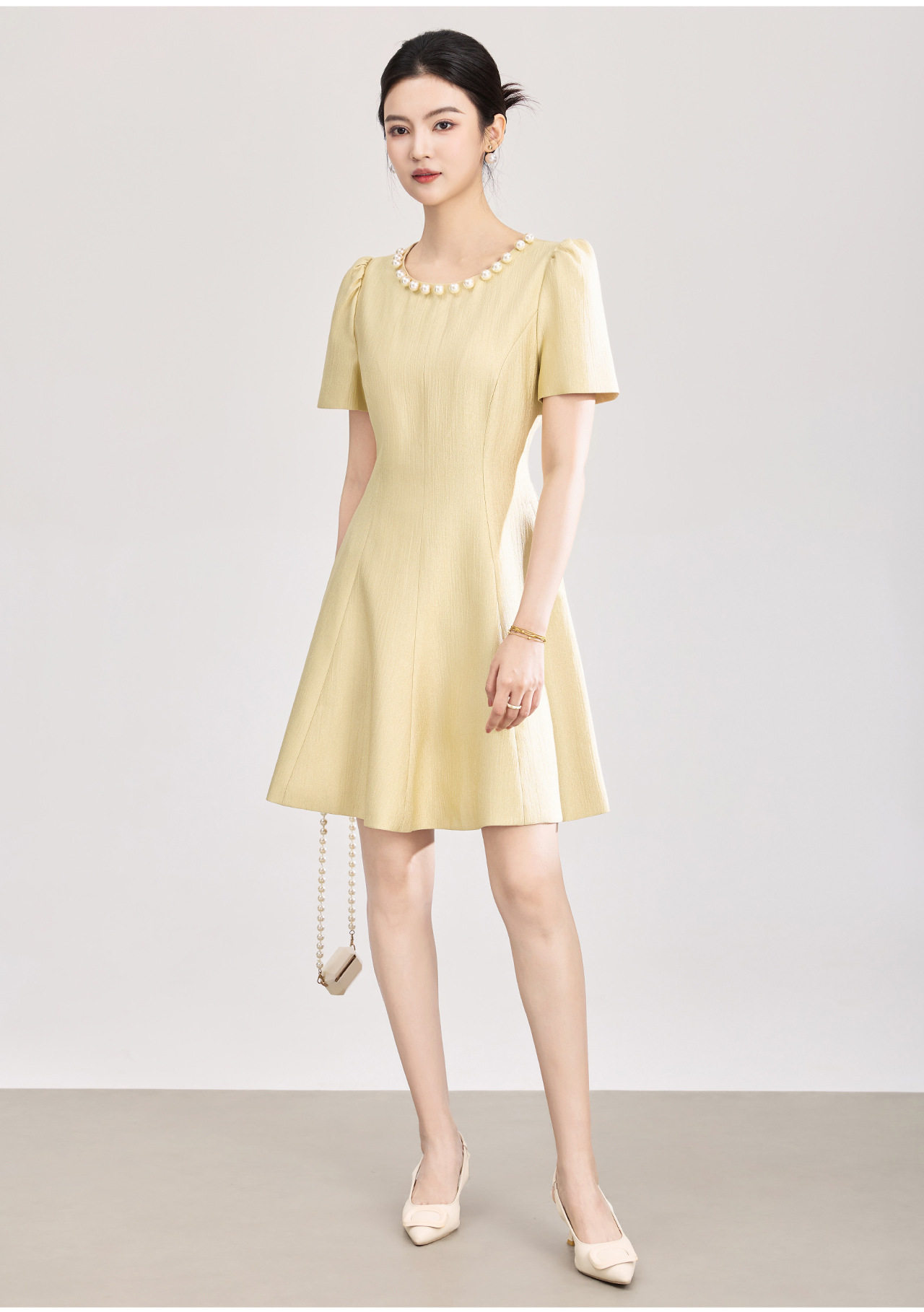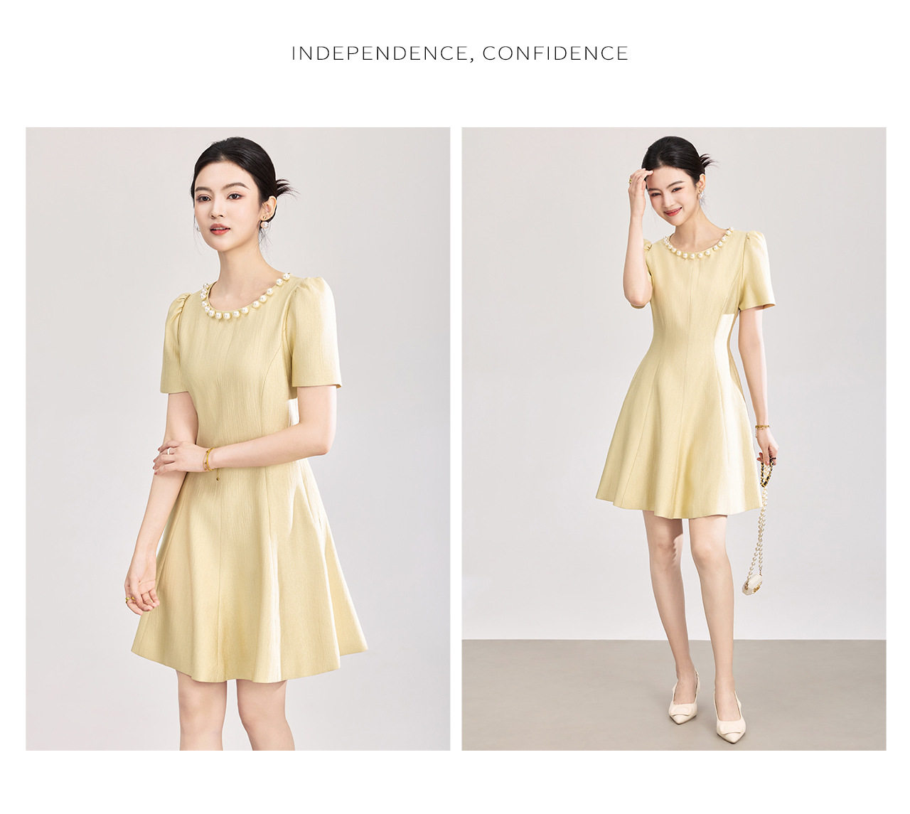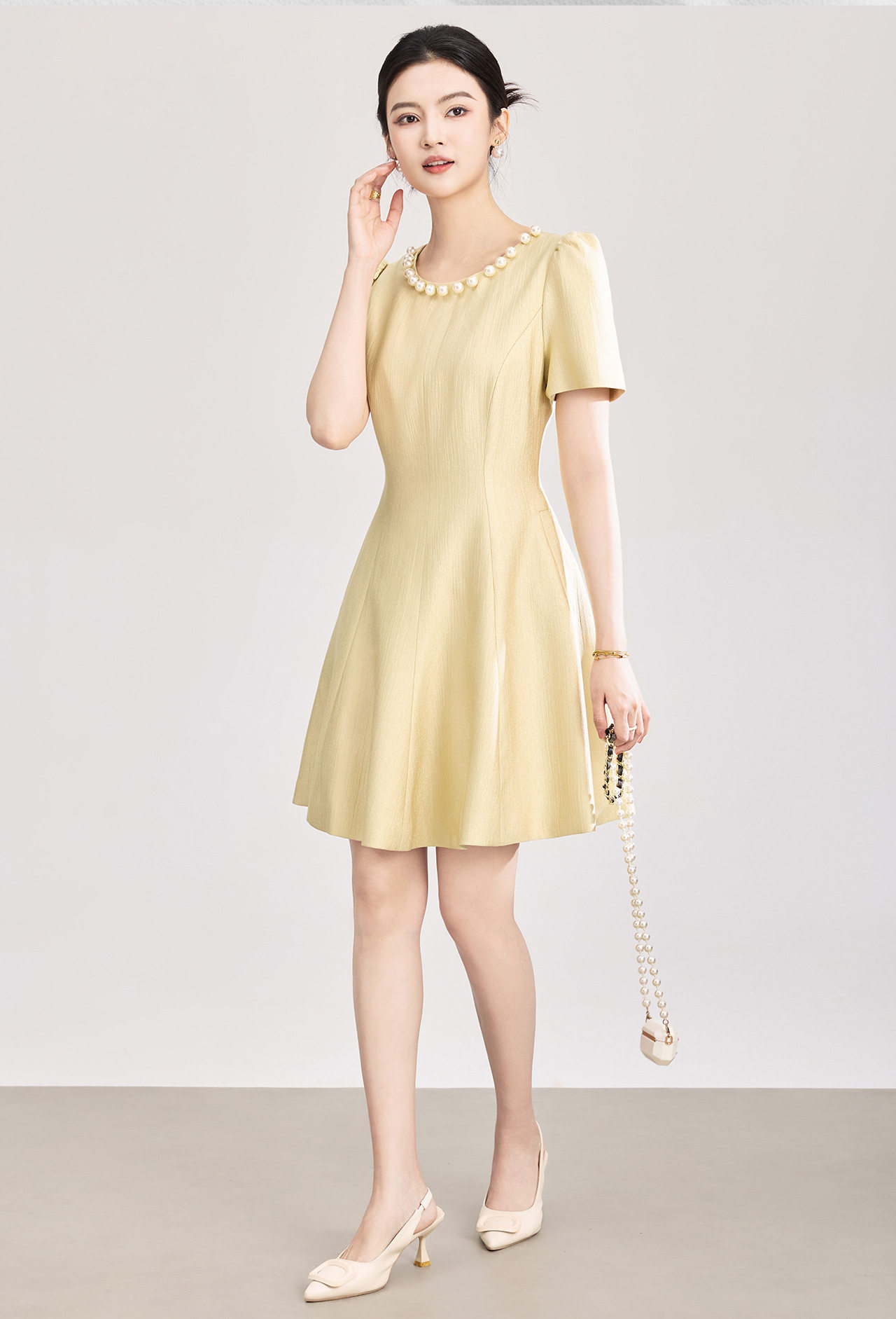 「高货wl」全新升级【铂金会员358/天猫479/差价121】(03147)洛诗琳气质珍珠领连衣裙2026春季法式泡泡袖收腰显瘦A字裙