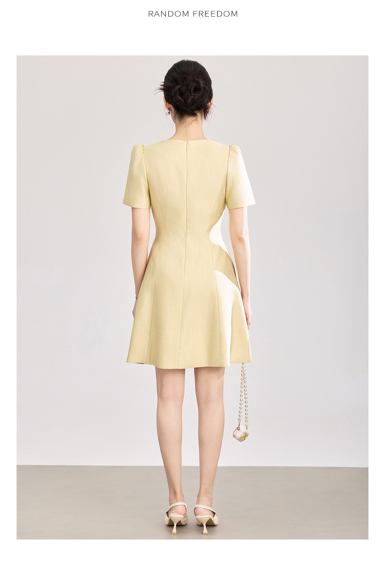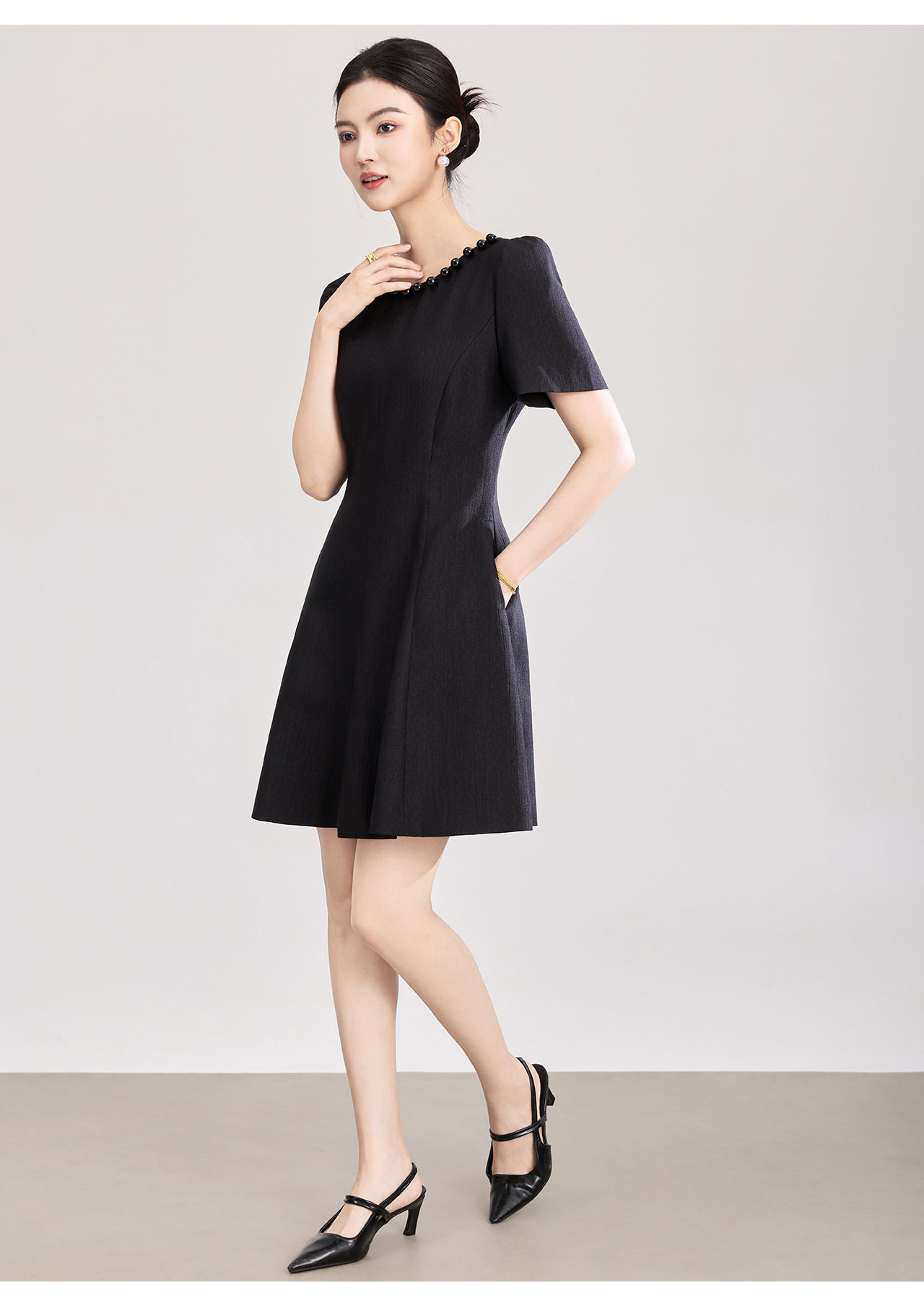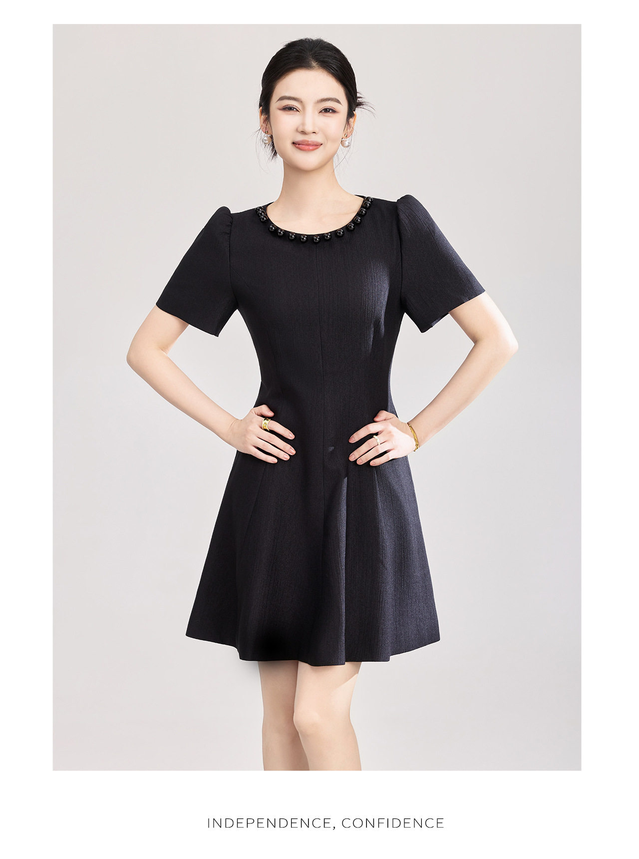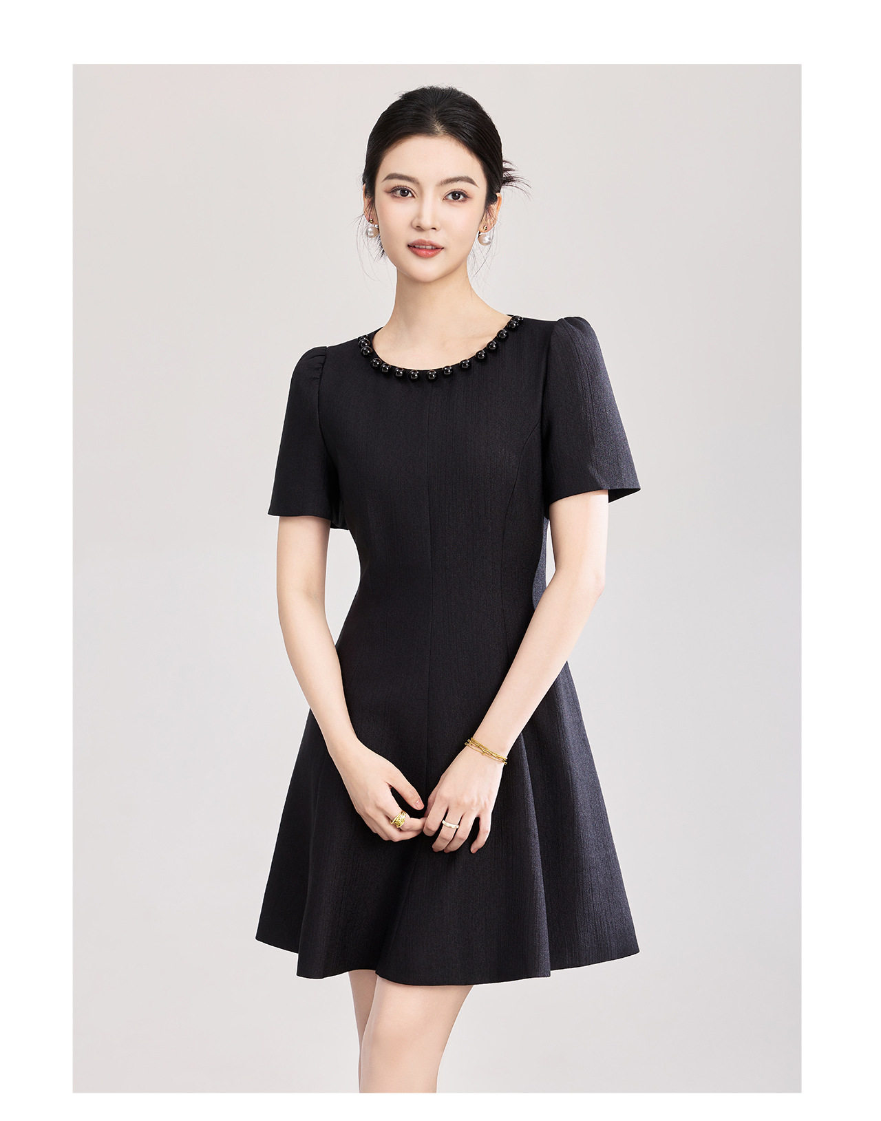 「高货wl」全新升级【铂金会员358/天猫479/差价121】(03147)洛诗琳气质珍珠领连衣裙2026春季法式泡泡袖收腰显瘦A字裙