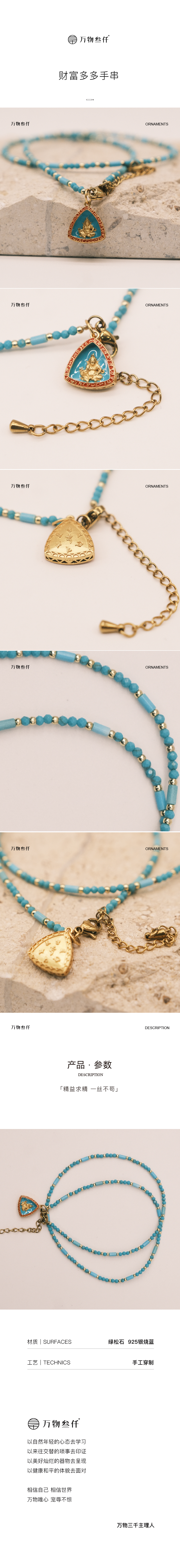 万物三千|绿松石黄财神 度母 吊坠双圈手链 链长32.5CM