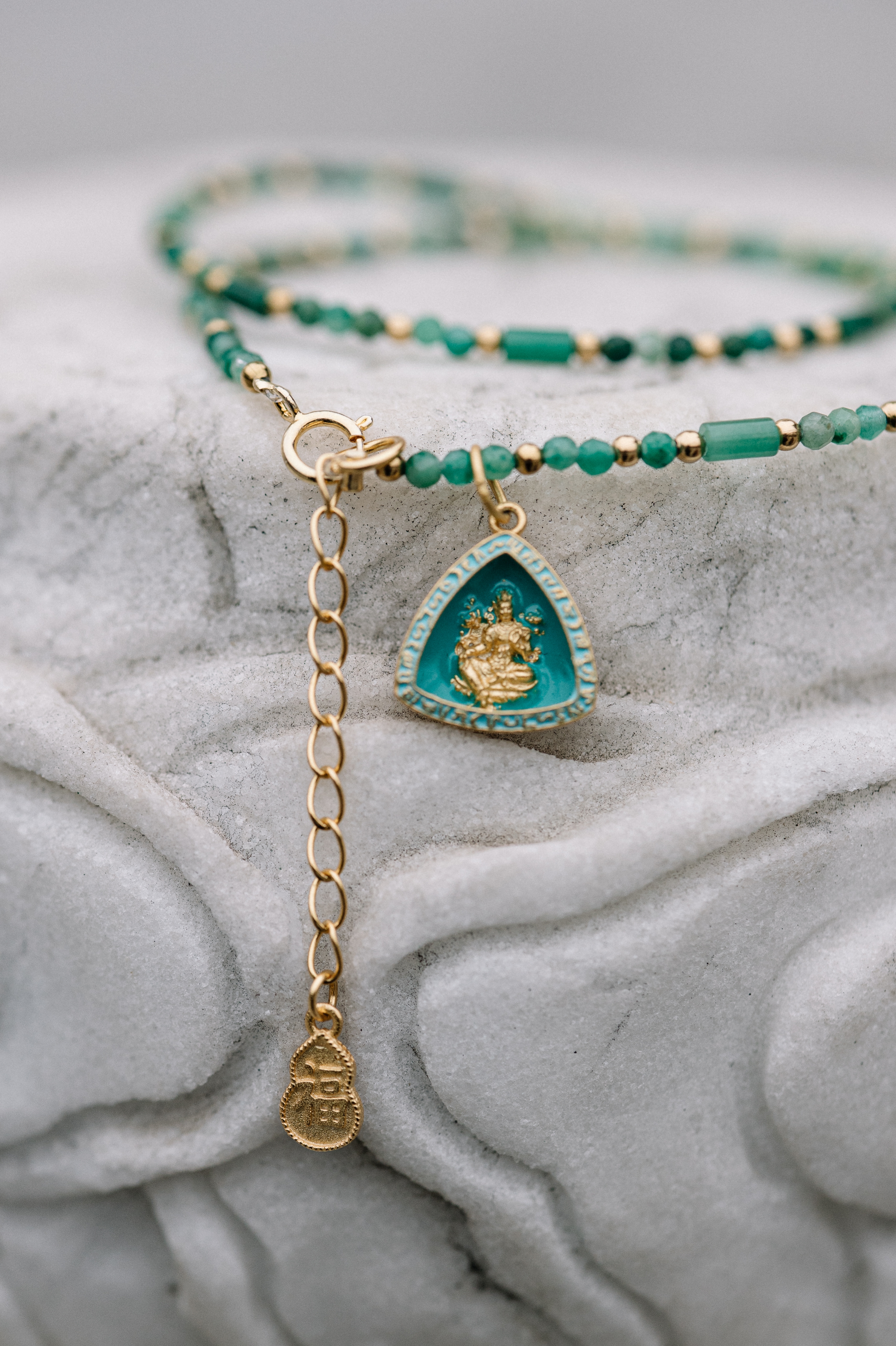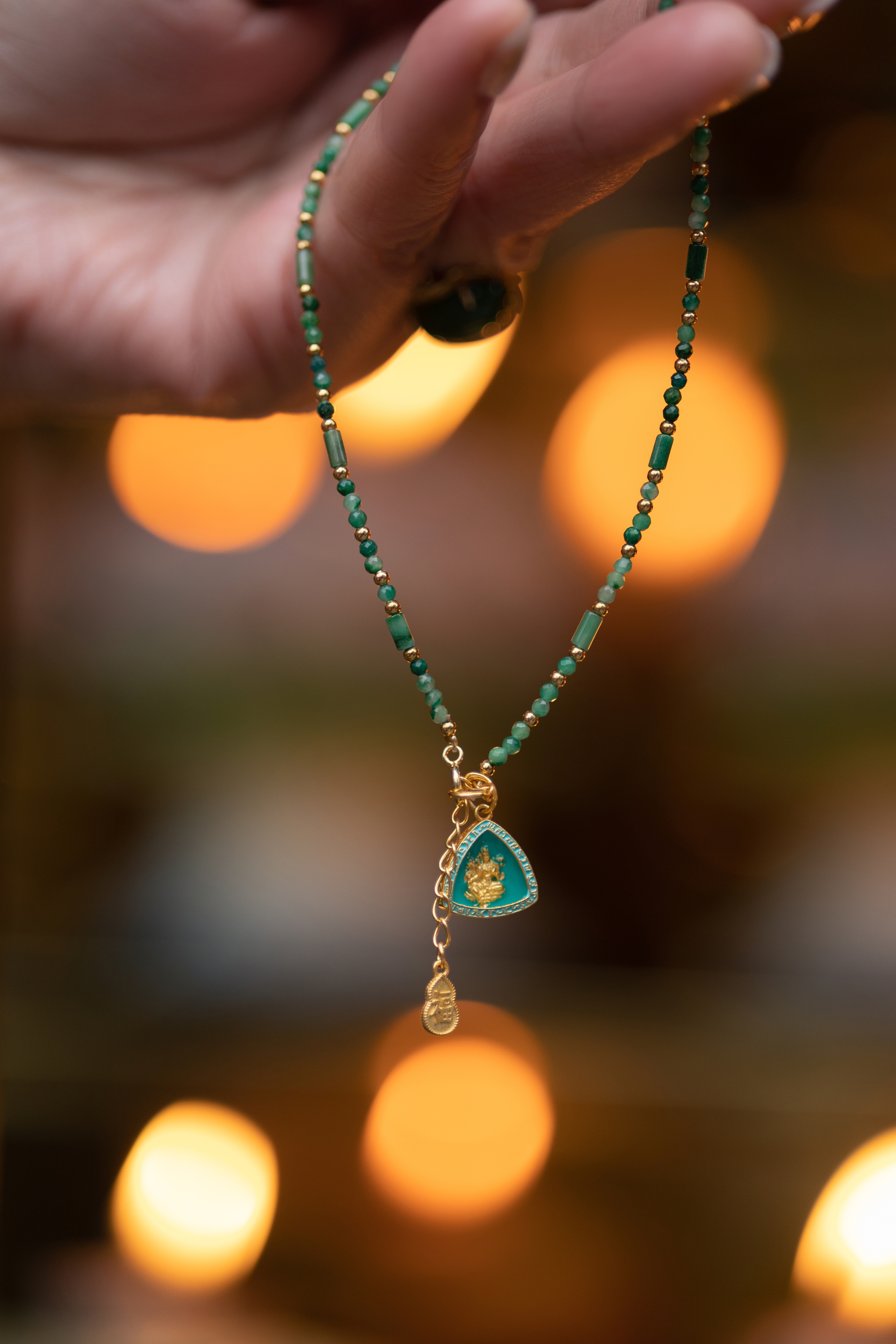 文殊孔雀石细吊坠项链 | 万物叁仟