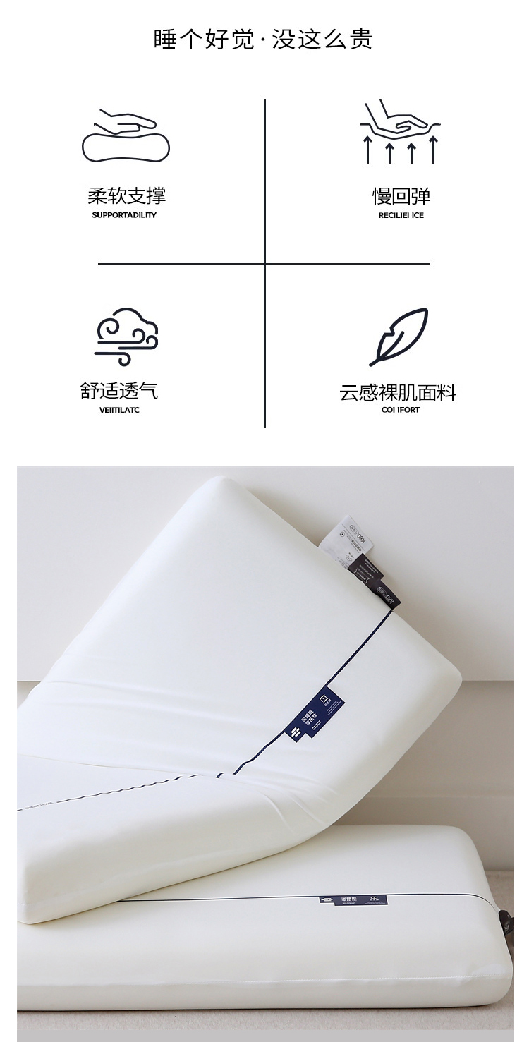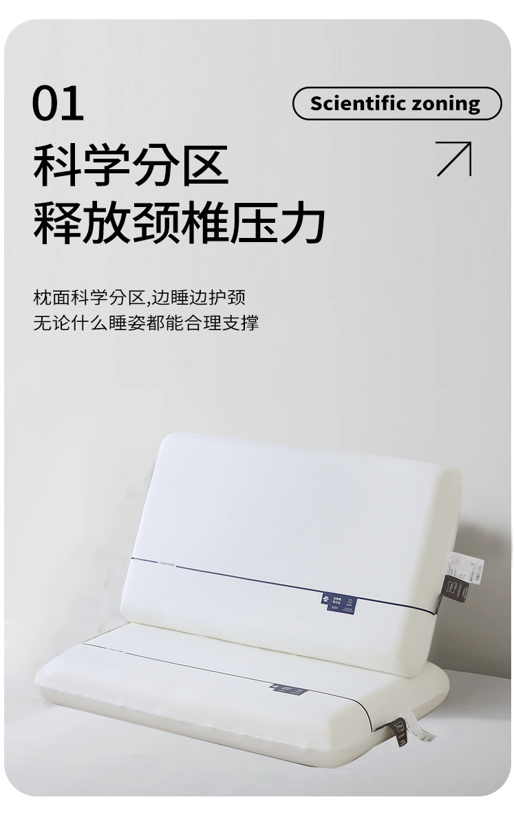 云朵零压记忆枕-单个【悠梦嘉居云朵零压记忆枕,4大贴心设计解决颈椎与睡眠问题,人体工学设计,感温舒压,高低曲线贴合颈部,慢回弹可及时恢复记忆功能,亲肤透气,多巴胺蓝白】