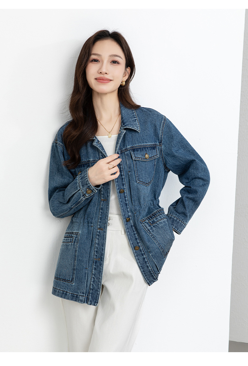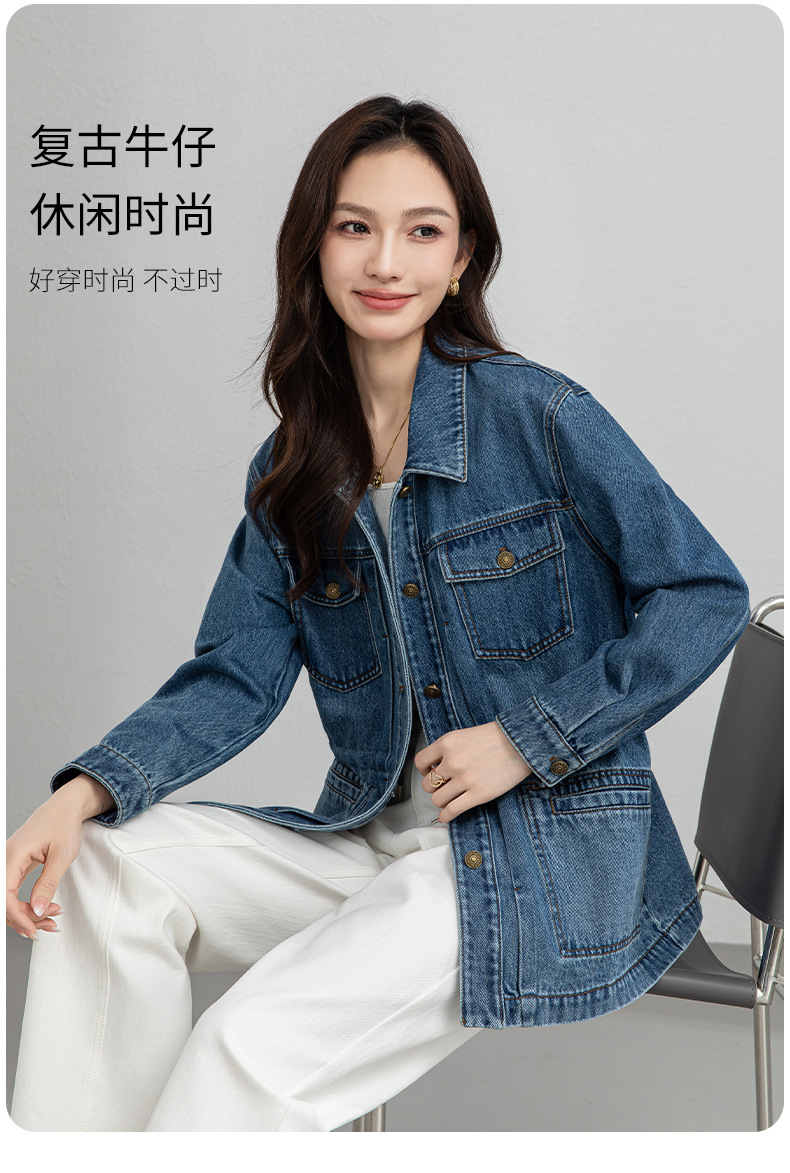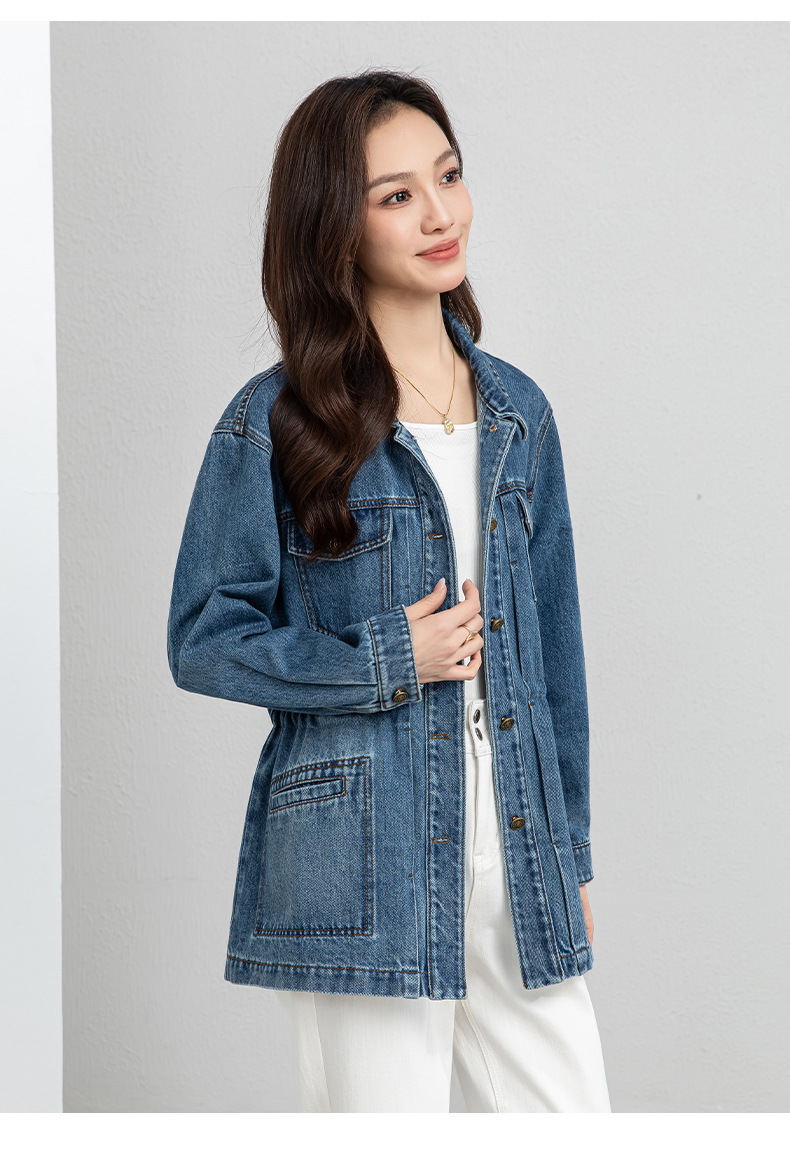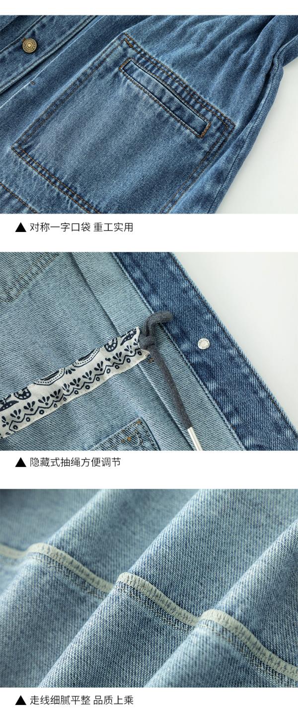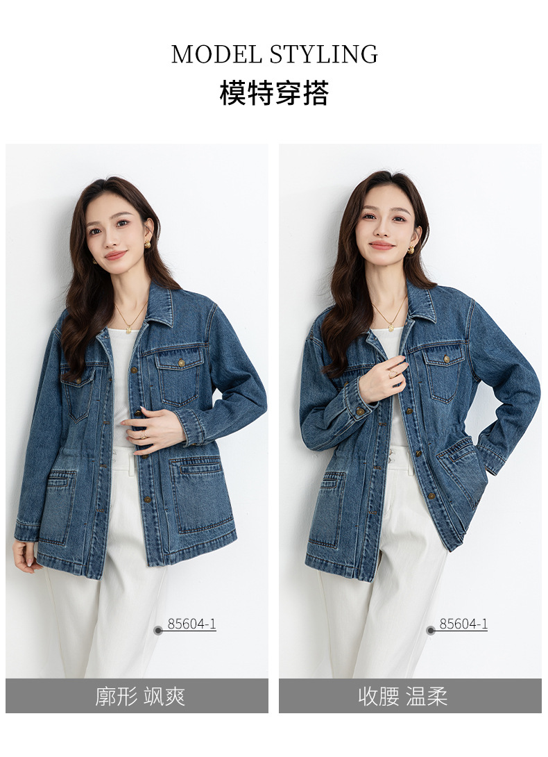 百媚生 棉质复古中长款休闲牛仔外套宽松夹克AC66017