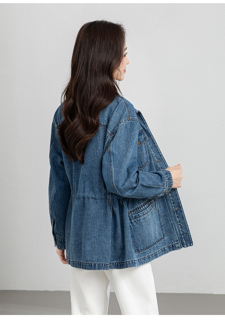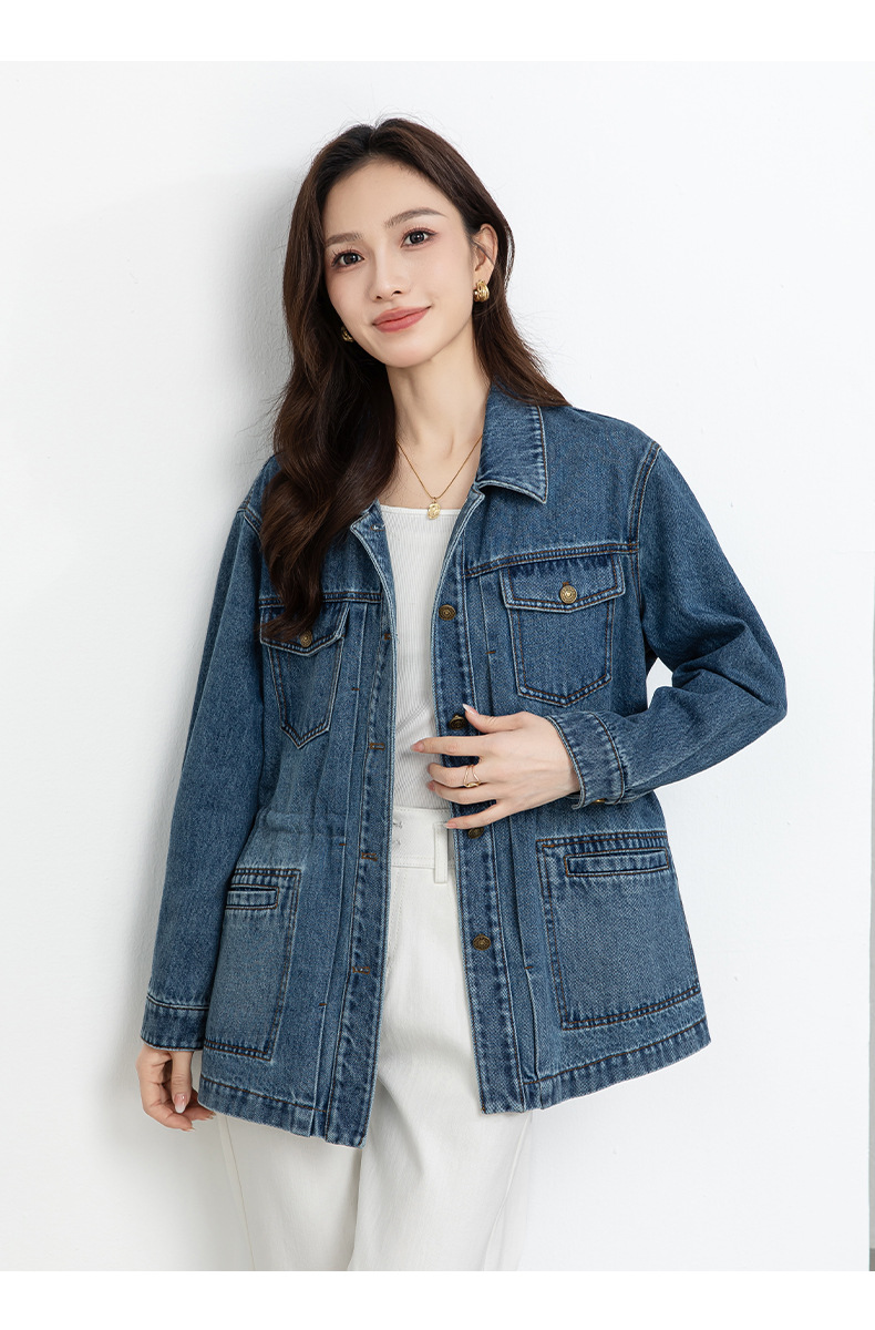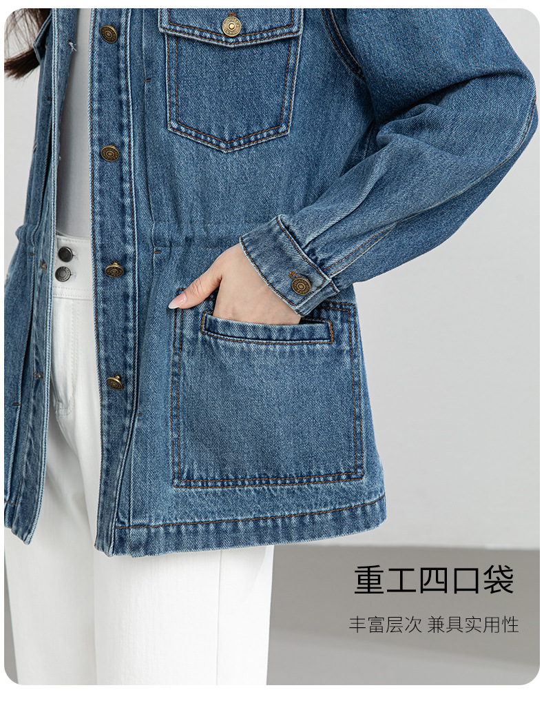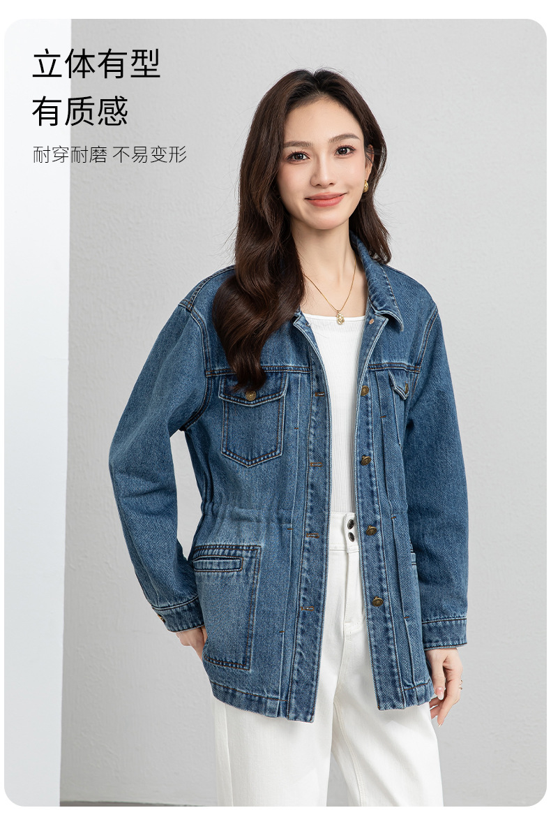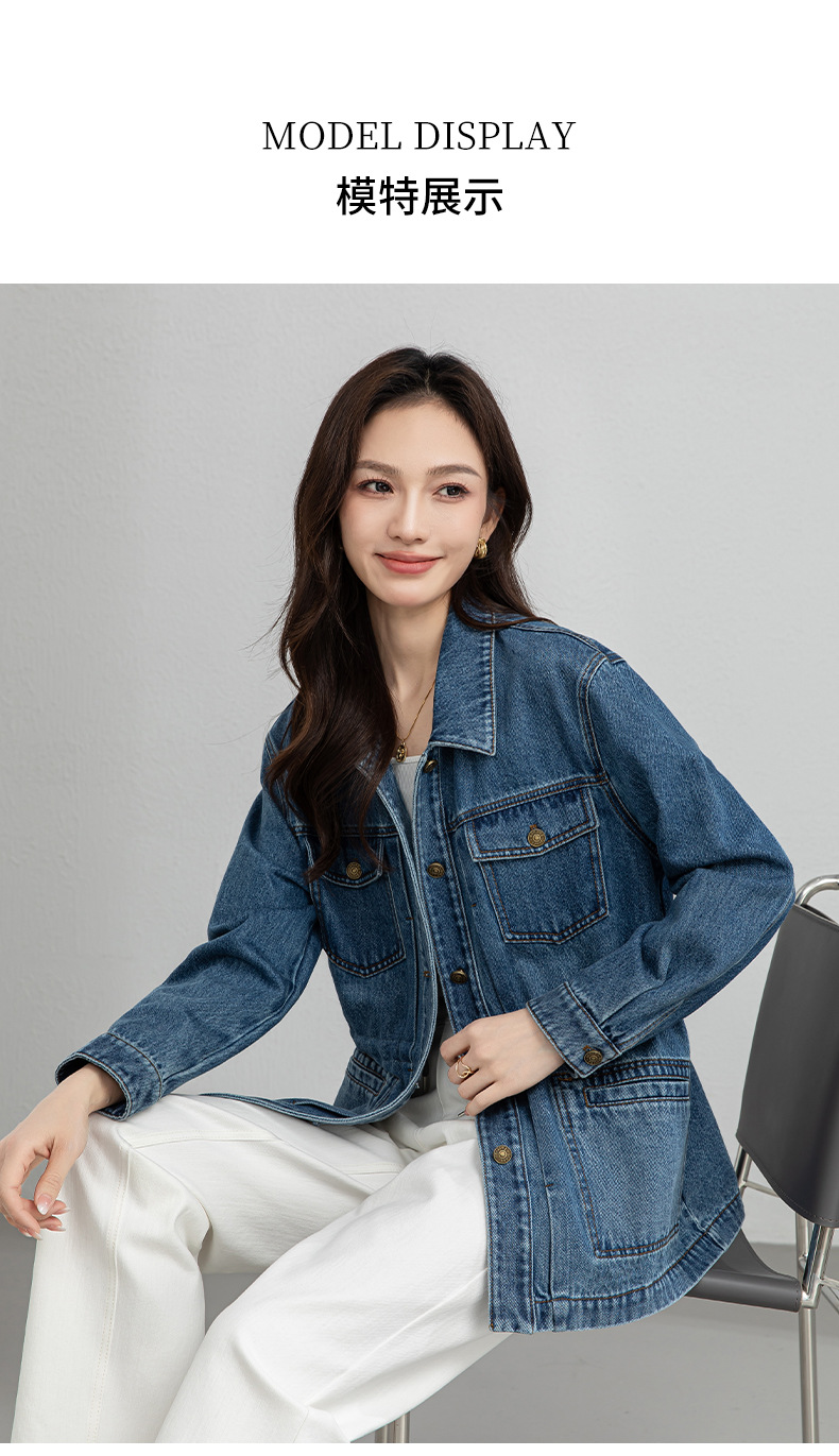 百媚生 棉质复古中长款休闲牛仔外套宽松夹克AC66017