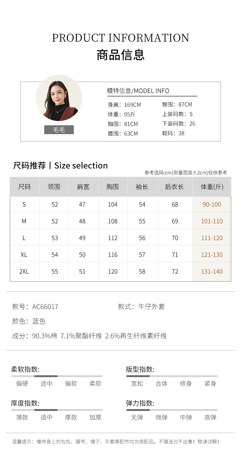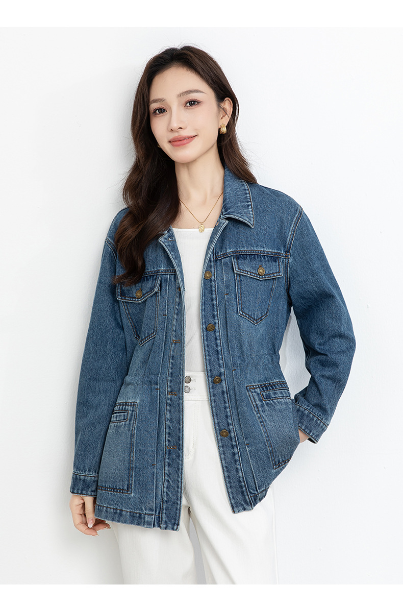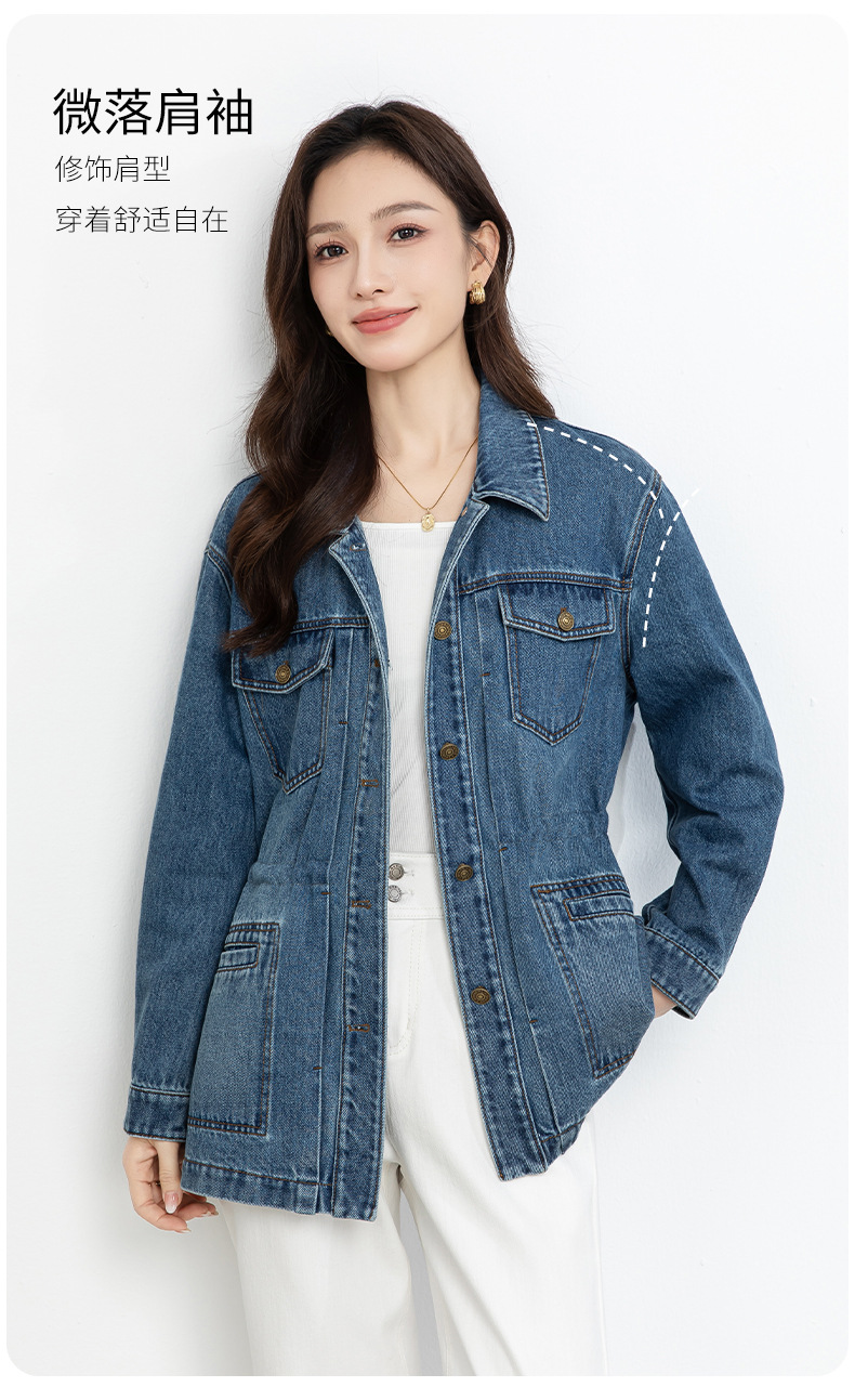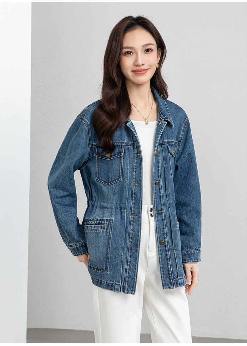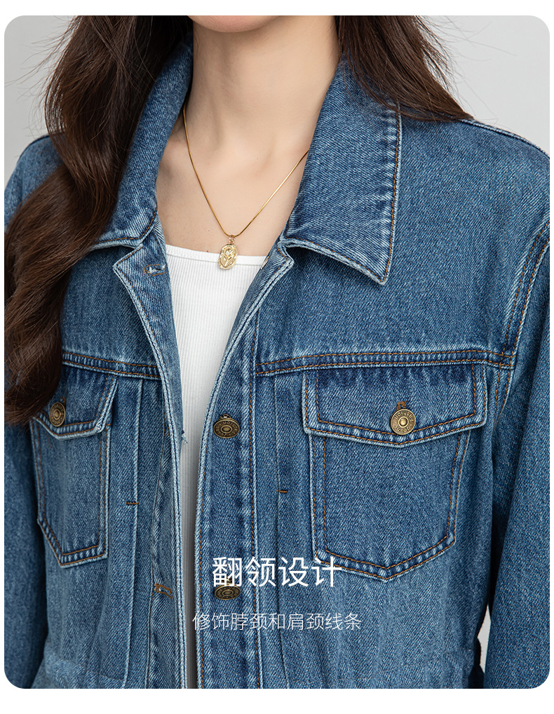 百媚生 棉质复古中长款休闲牛仔外套宽松夹克AC66017
