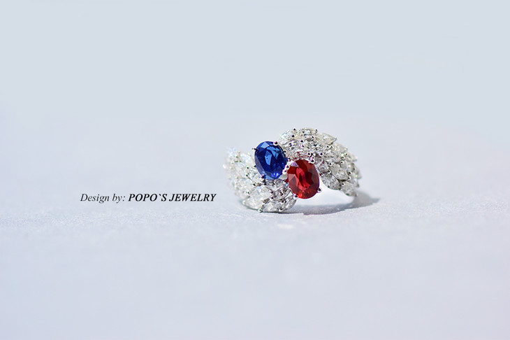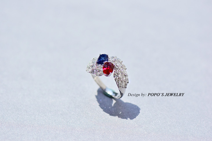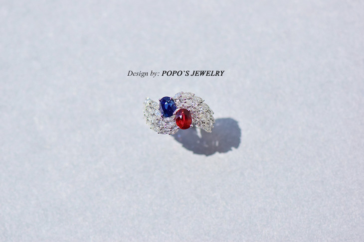 18K白金皇家蓝鸽血红戒指