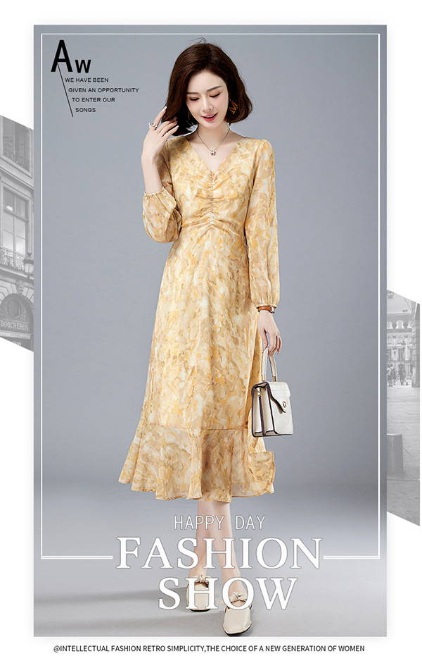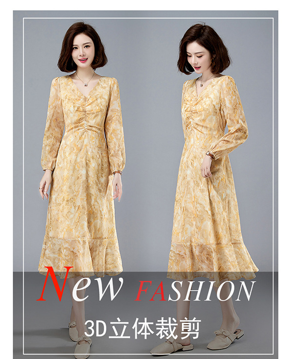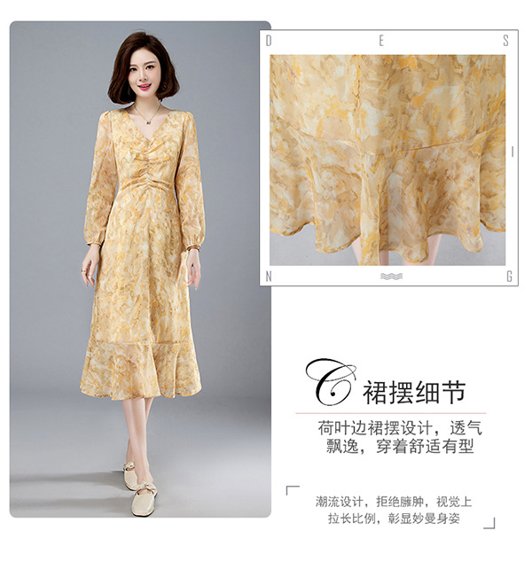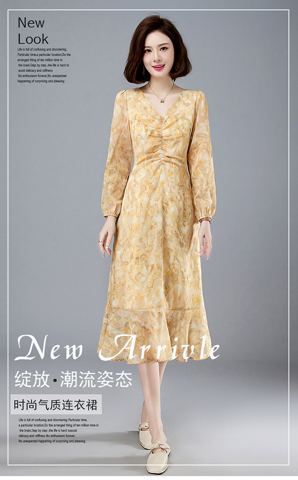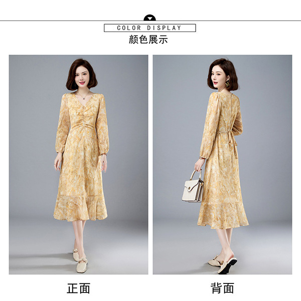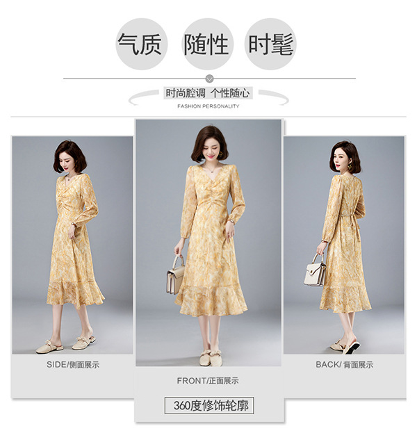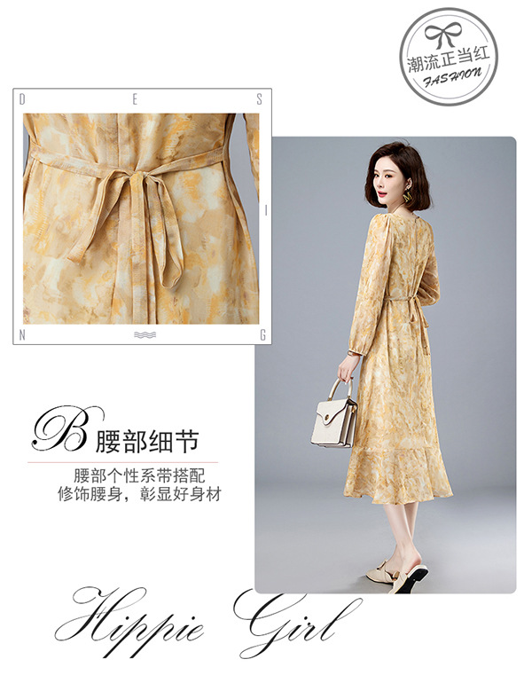 法式复古,新款长袖中长款碎花裙修身显瘦设计感小众连衣裙女春HR-WM89079