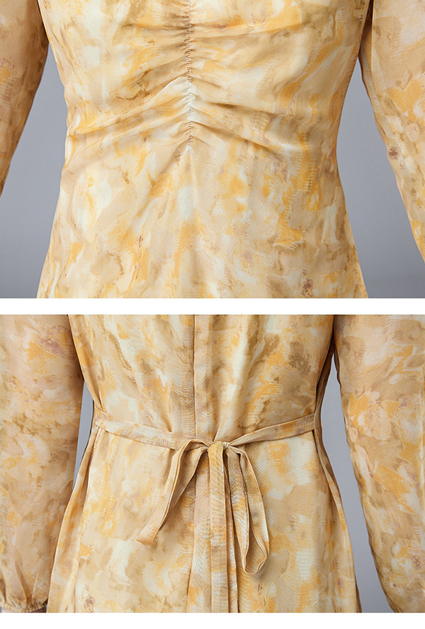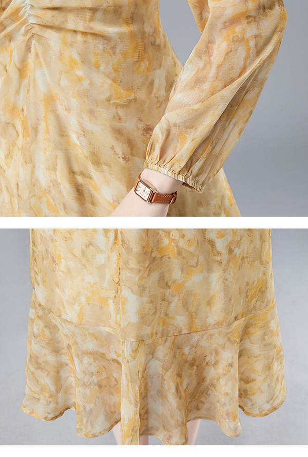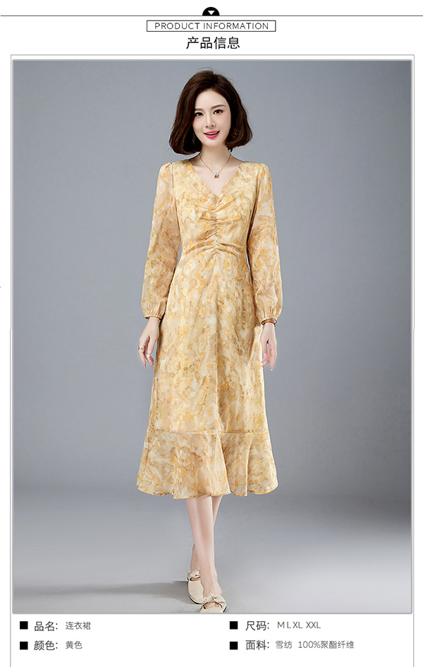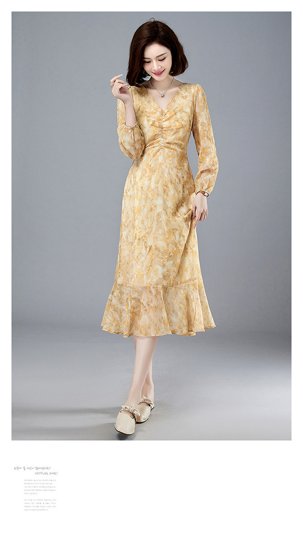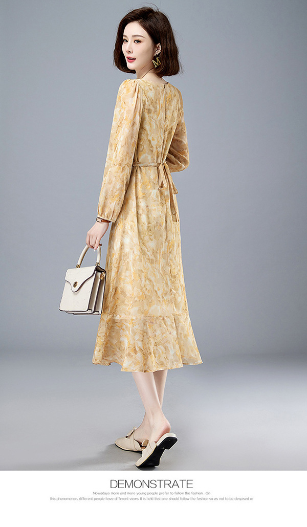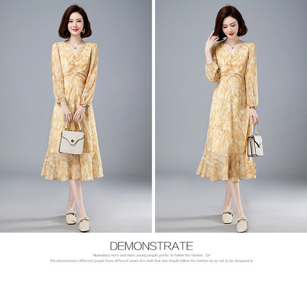 法式复古,新款长袖中长款碎花裙修身显瘦设计感小众连衣裙女春HR-WM89079