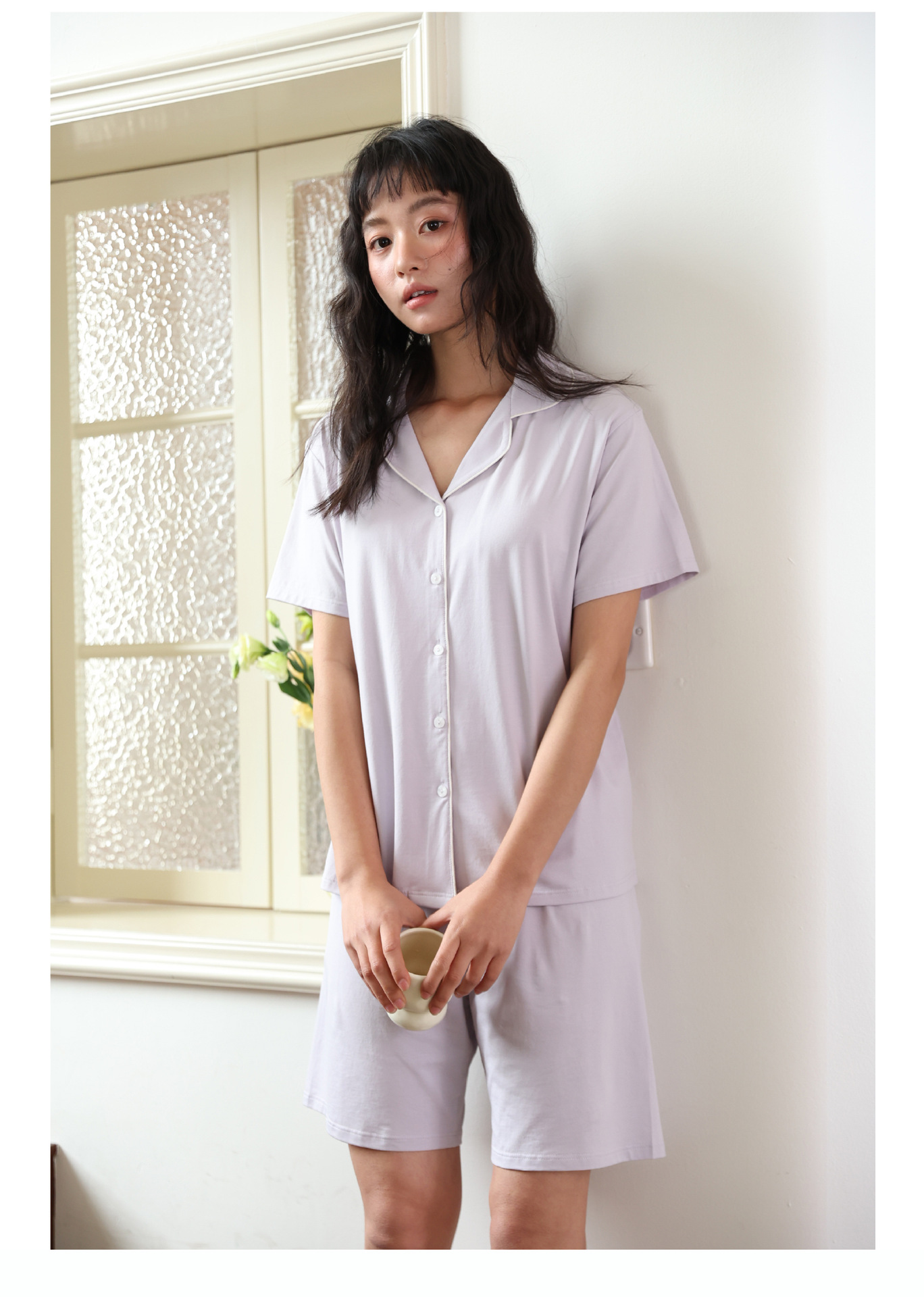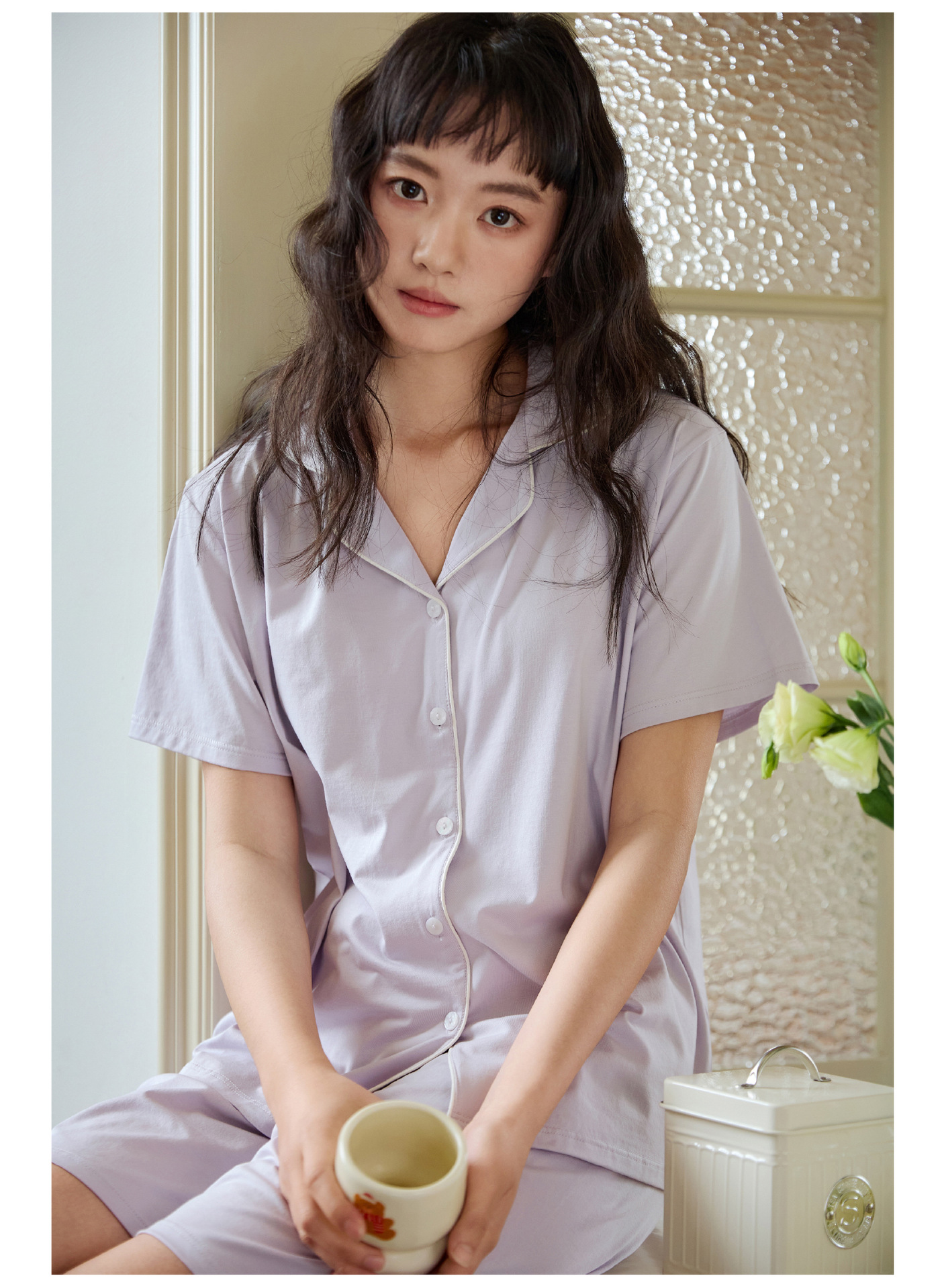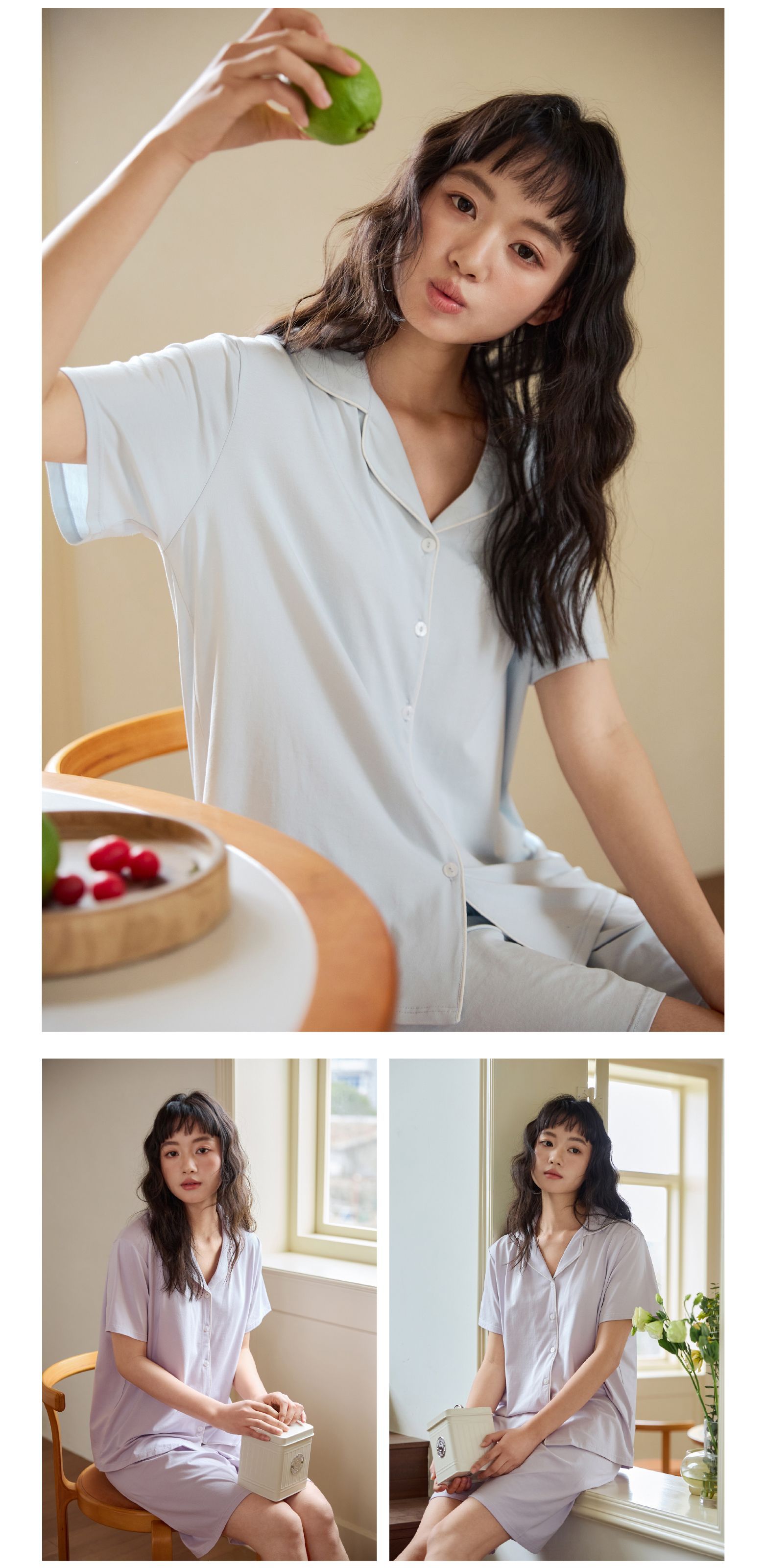 【2026夏季】桑蚕丝・开衫家居服 翻领爽滑亲肤凉感 短袖短裤宽松纽扣套装 纯色设计感外穿睡衣