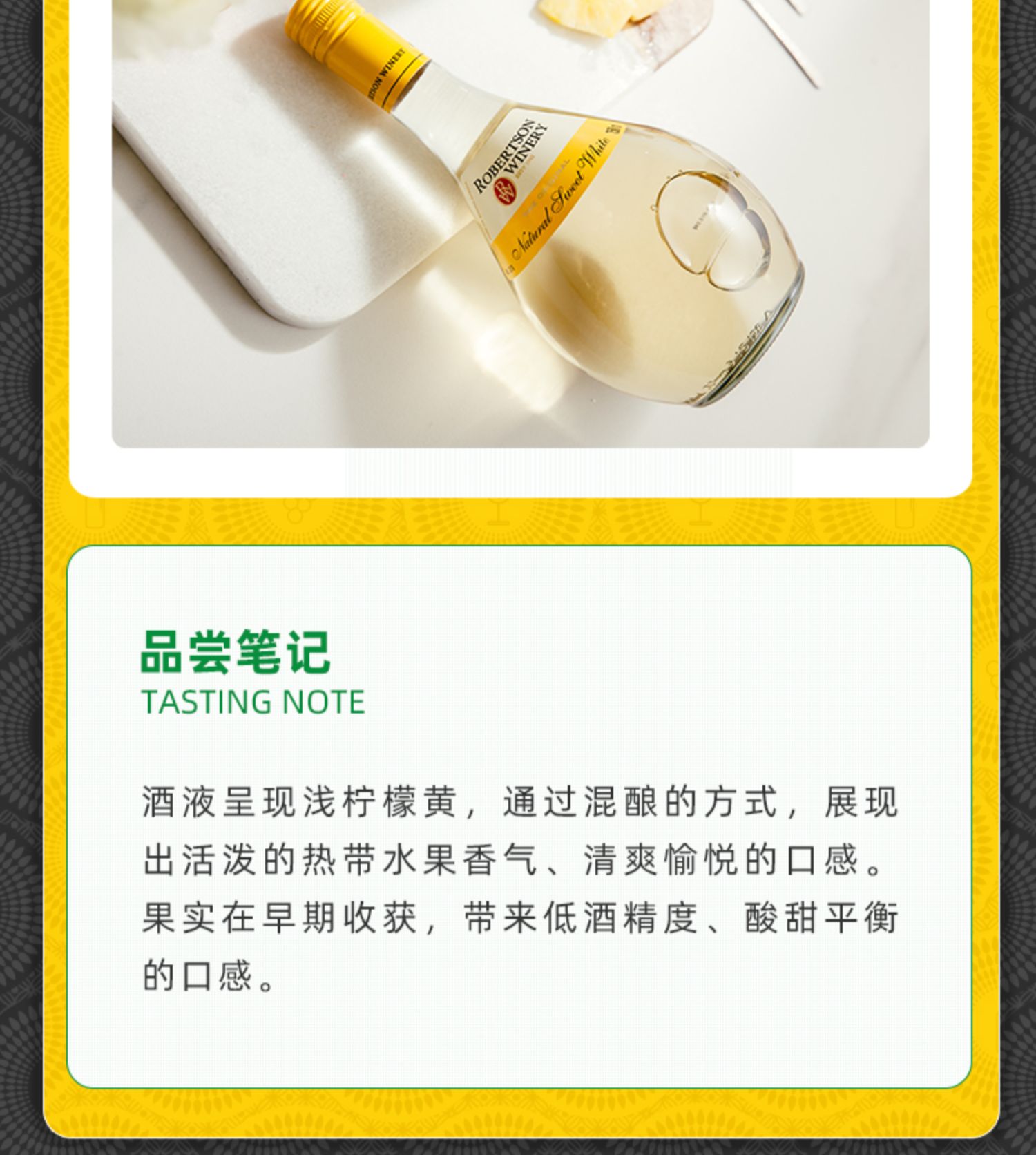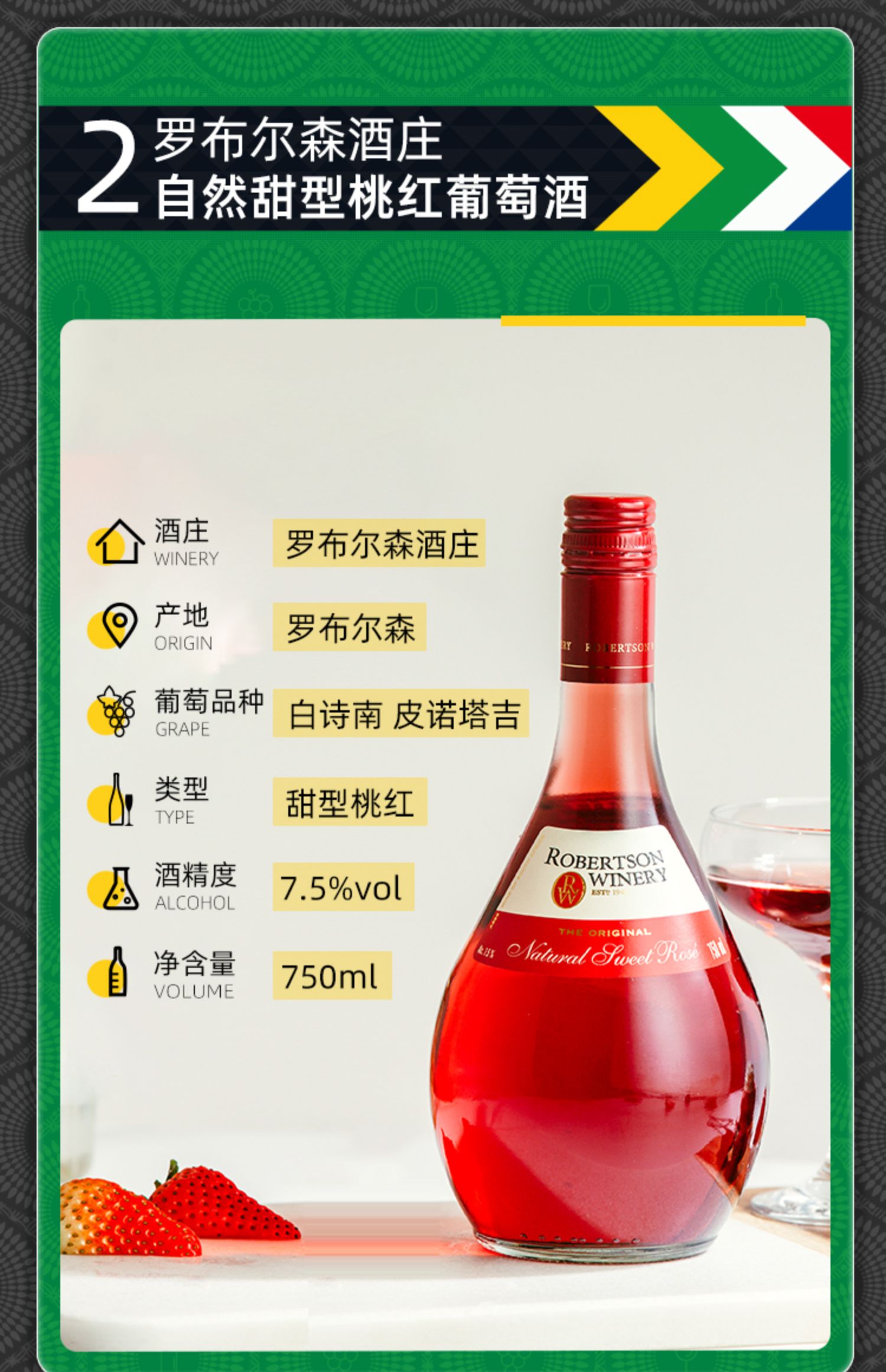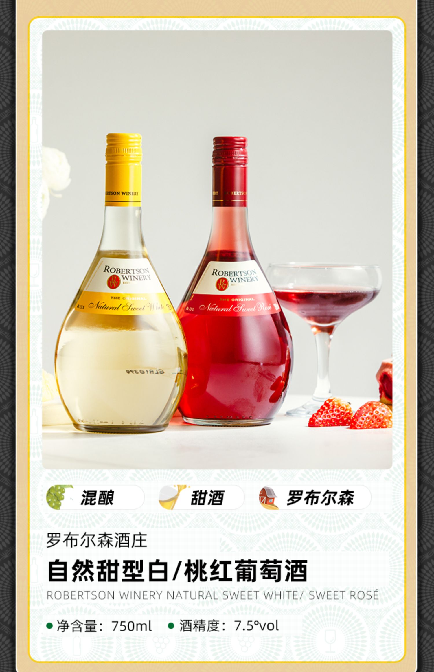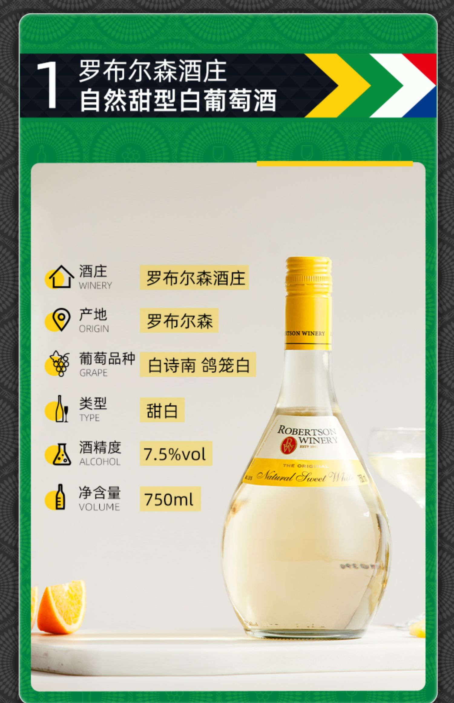南非威廉罗布尔森酒庄自然甜白葡萄酒750ml