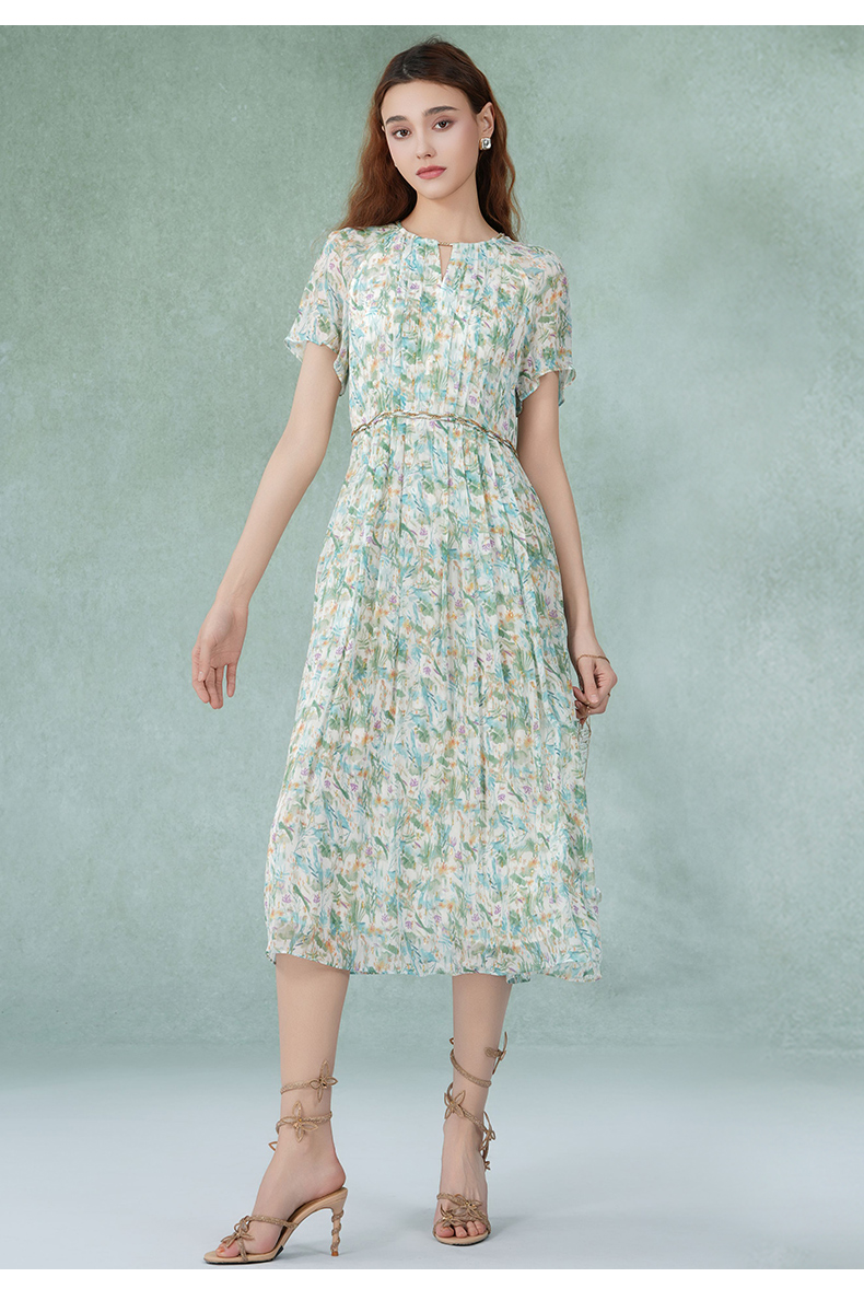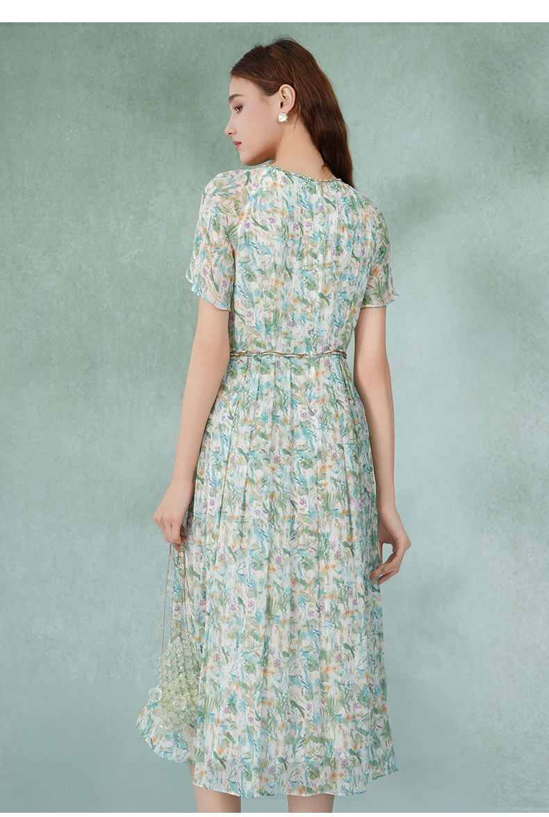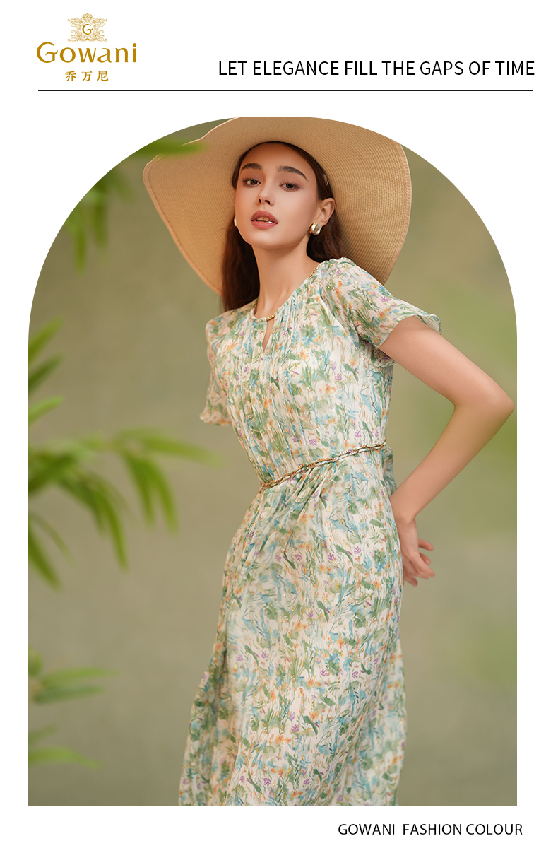 乔万尼100%桑蚕丝连衣裙夏新品法式设计EM2E836