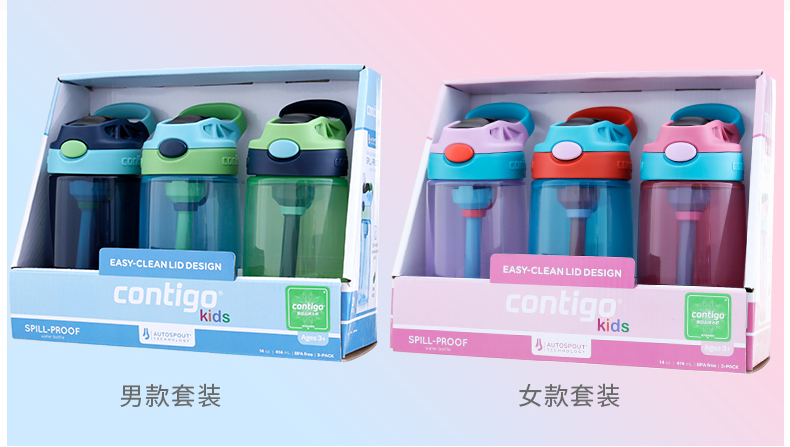 美国康迪克contigo 儿童水杯水壶吸管杯 414ml 男女可选