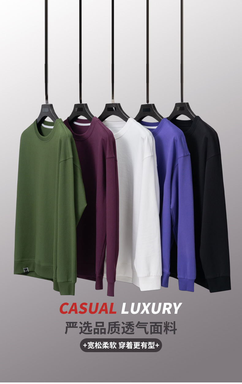 【DMH】大依优型大码男装净版卫衣高街简约圆领长袖纯色上衣落肩袖百搭宽松休闲男日系