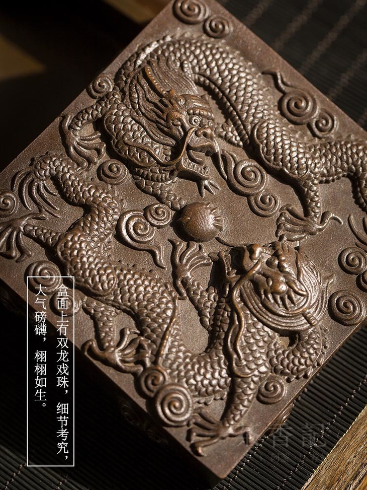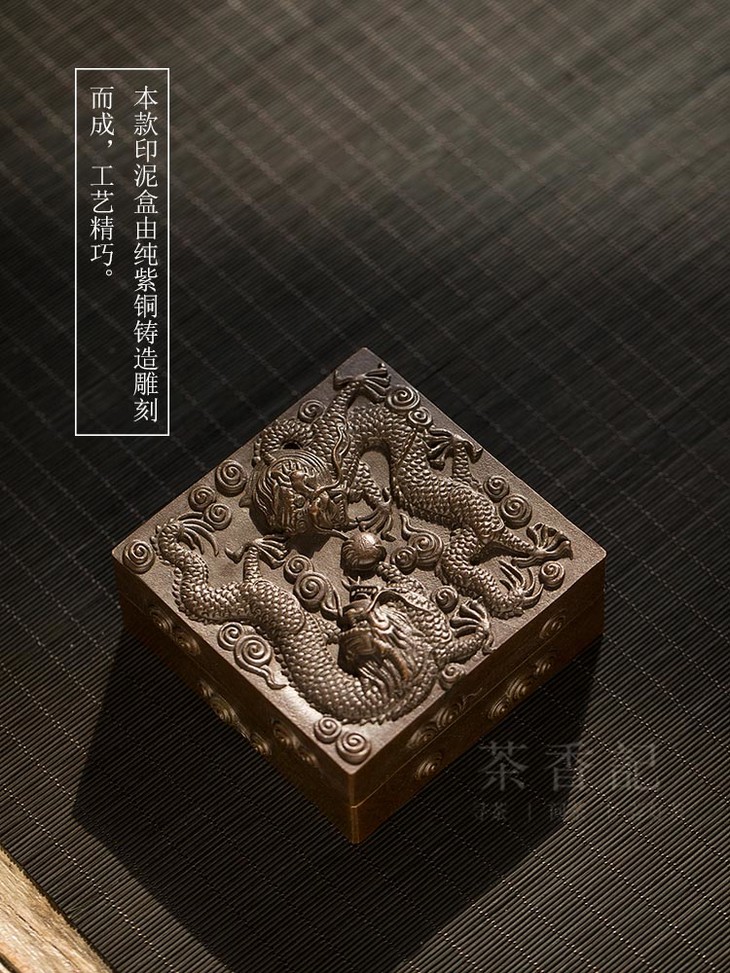 本款印泥盒由纯紫铜铸造雕刻而成,工艺精湛。