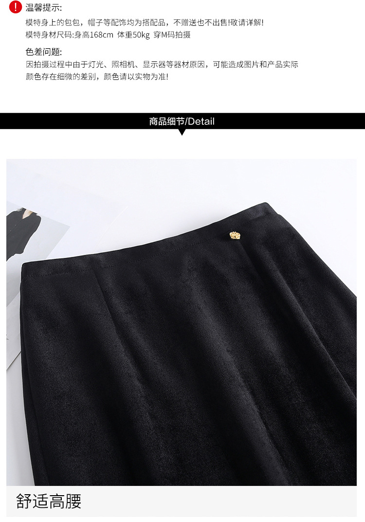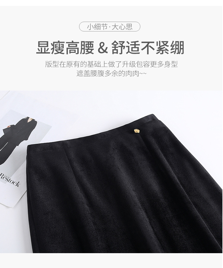 QYM 2567-Y加厚半身裙高腰直筒裙厚款中长款包臀裙开衩 商品图3