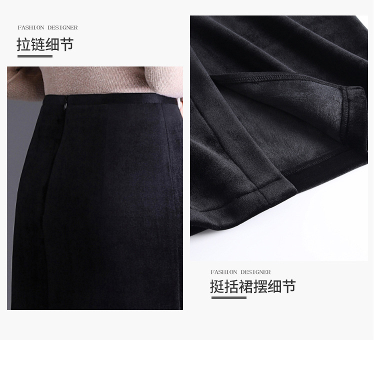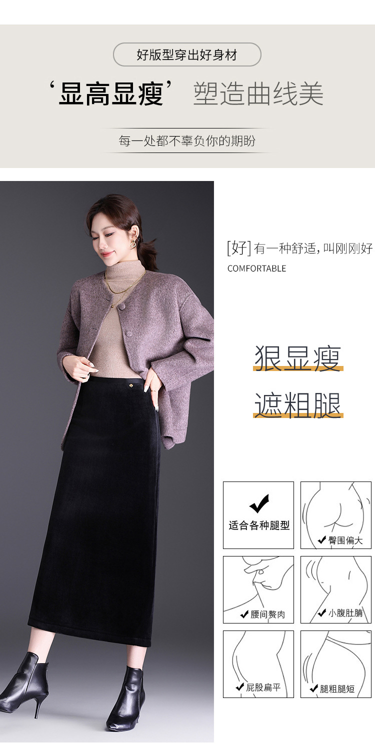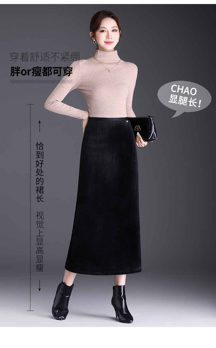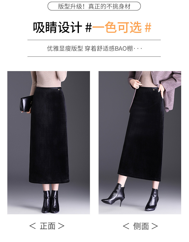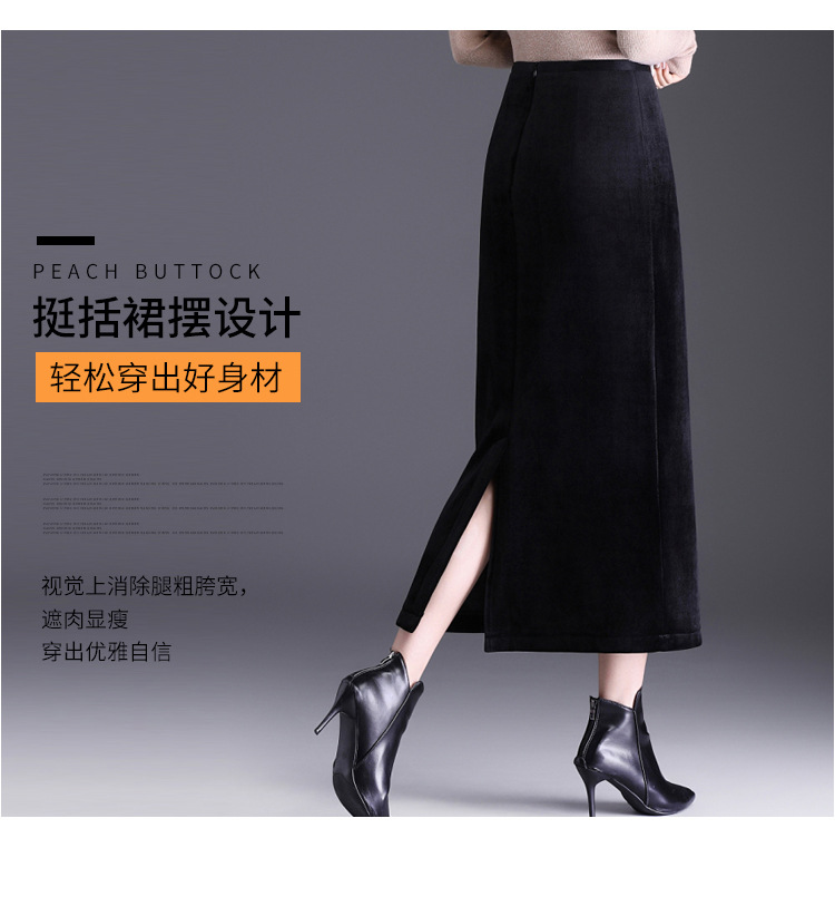 QYM 2567-Y加厚半身裙高腰直筒裙厚款中长款包臀裙开衩 商品图4