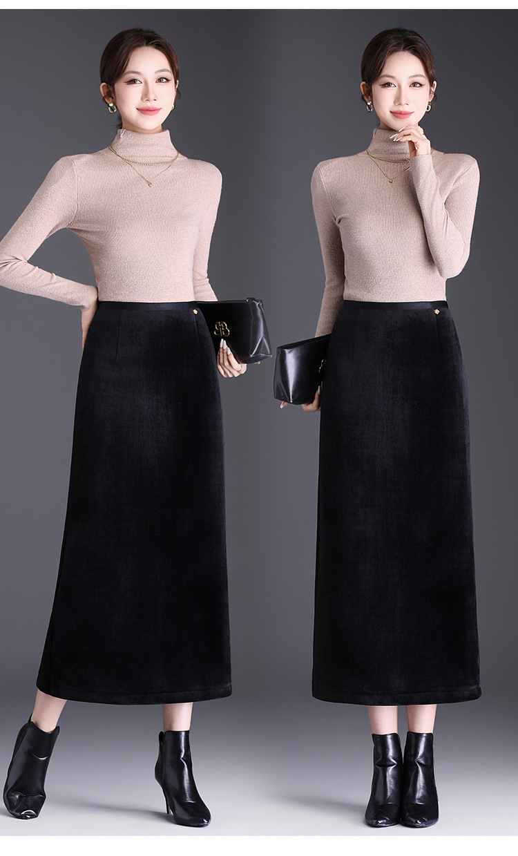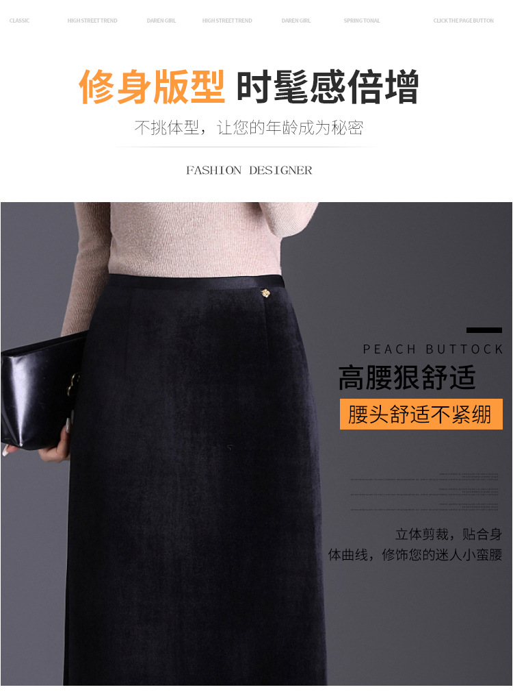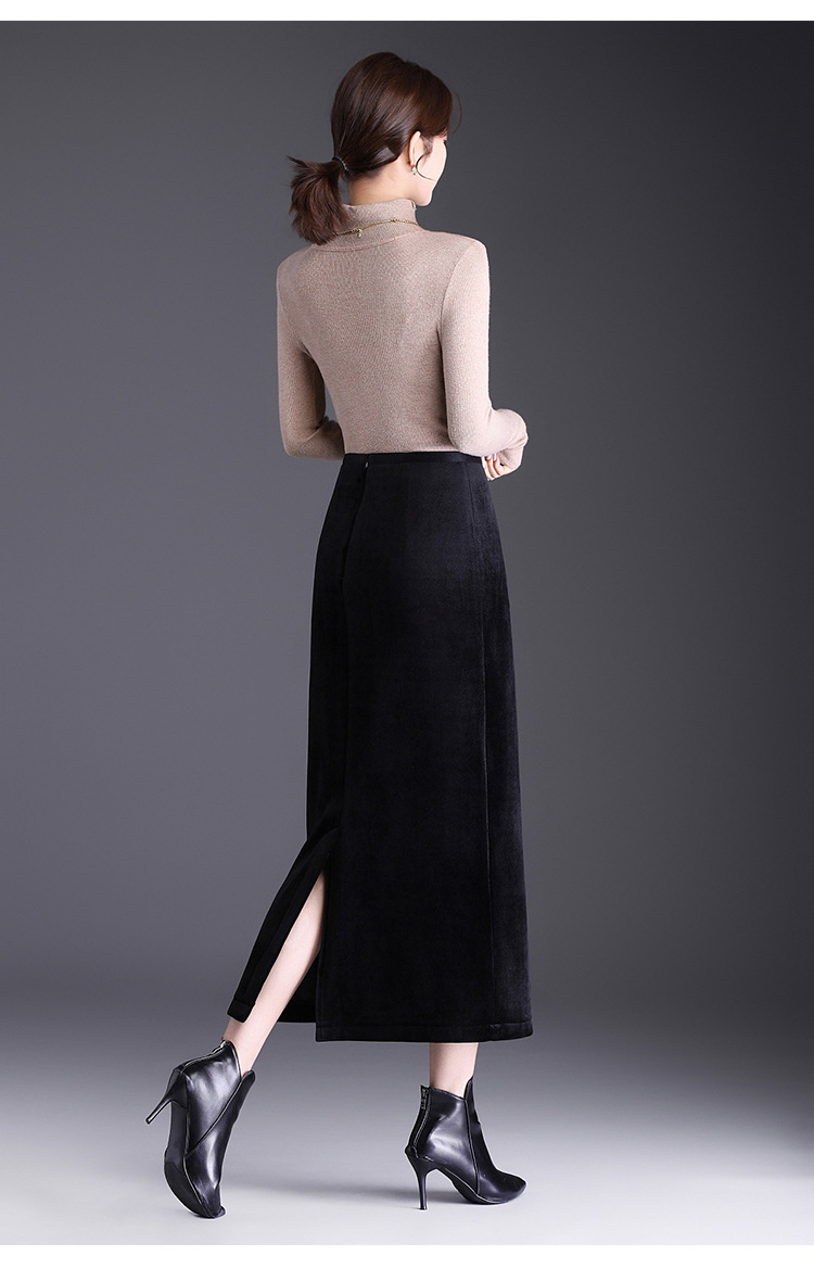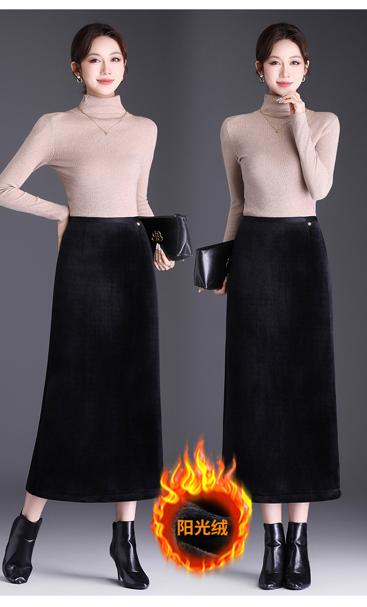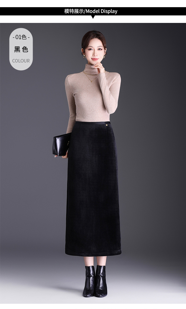 QYM 2567-Y加厚半身裙高腰直筒裙厚款中长款包臀裙开衩 商品图4