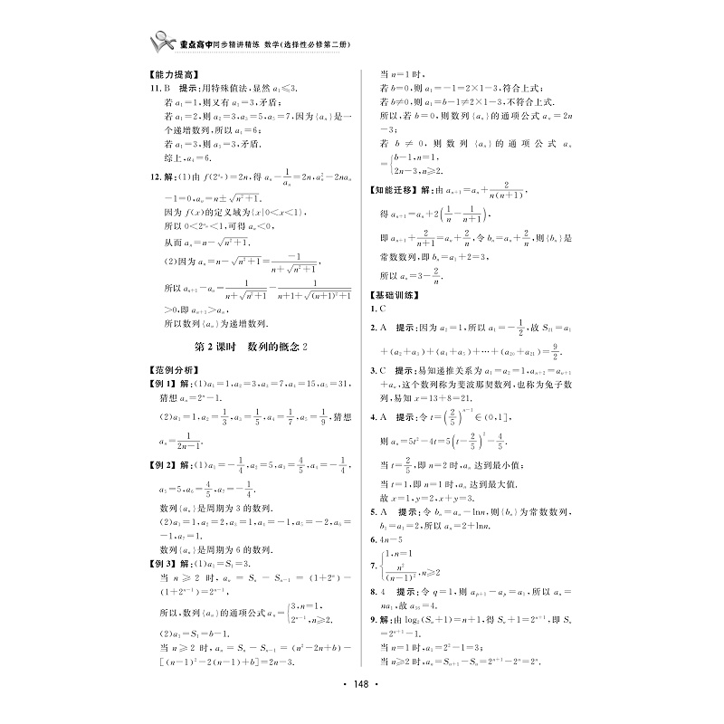 重点高中同步精讲精练(数学. 附参考答案 选择性必修第二册)2019年人教A版高中数学新课标教材/周顺钿/浙江大学出版社
