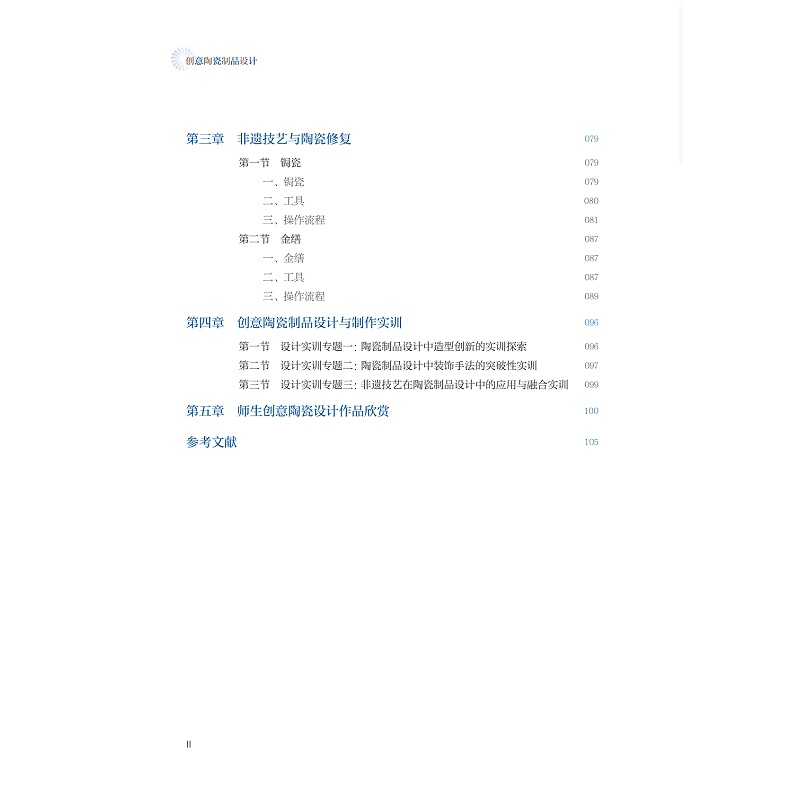 本教材主要针对高校设计类专业学生,尤其是应用型高校,除了文化理论外还较为重视学生的工艺技术的掌握、应用与创新。主要内容涵盖从历史文化到实践创新;从文物设计、非遗技艺到现代产品设计;从传统造物思维到创新交互思维;从文化到设计再到工艺技术。本教材从陶瓷史出发,结合历史文化背景分析我国各时代最具代表性的陶瓷文物的特点,从造型与装饰两个方向剖析古人的造物思维。同时特别增加非遗工艺在现代设计的再利用章节,再结合西方设计方法学,取其精华应用于现代陶瓷产品创新设计中,做到古为今用,西为中用,开拓创新。最后结合实践案例分析讲解工艺技术的实现,力求通过本教材的学习做到陶瓷产品从设计创意到实物模型的从无到有的全过程。