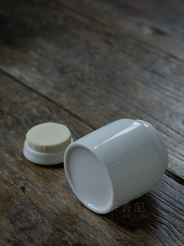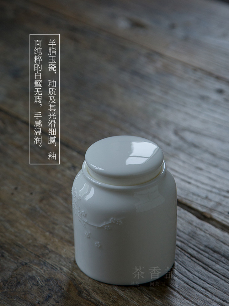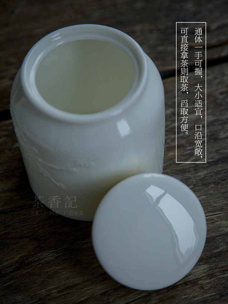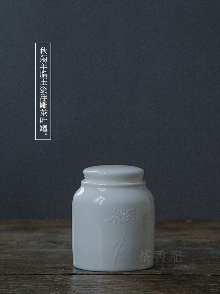 寻得这款「羊脂玉瓷浮雕茶叶罐」。
