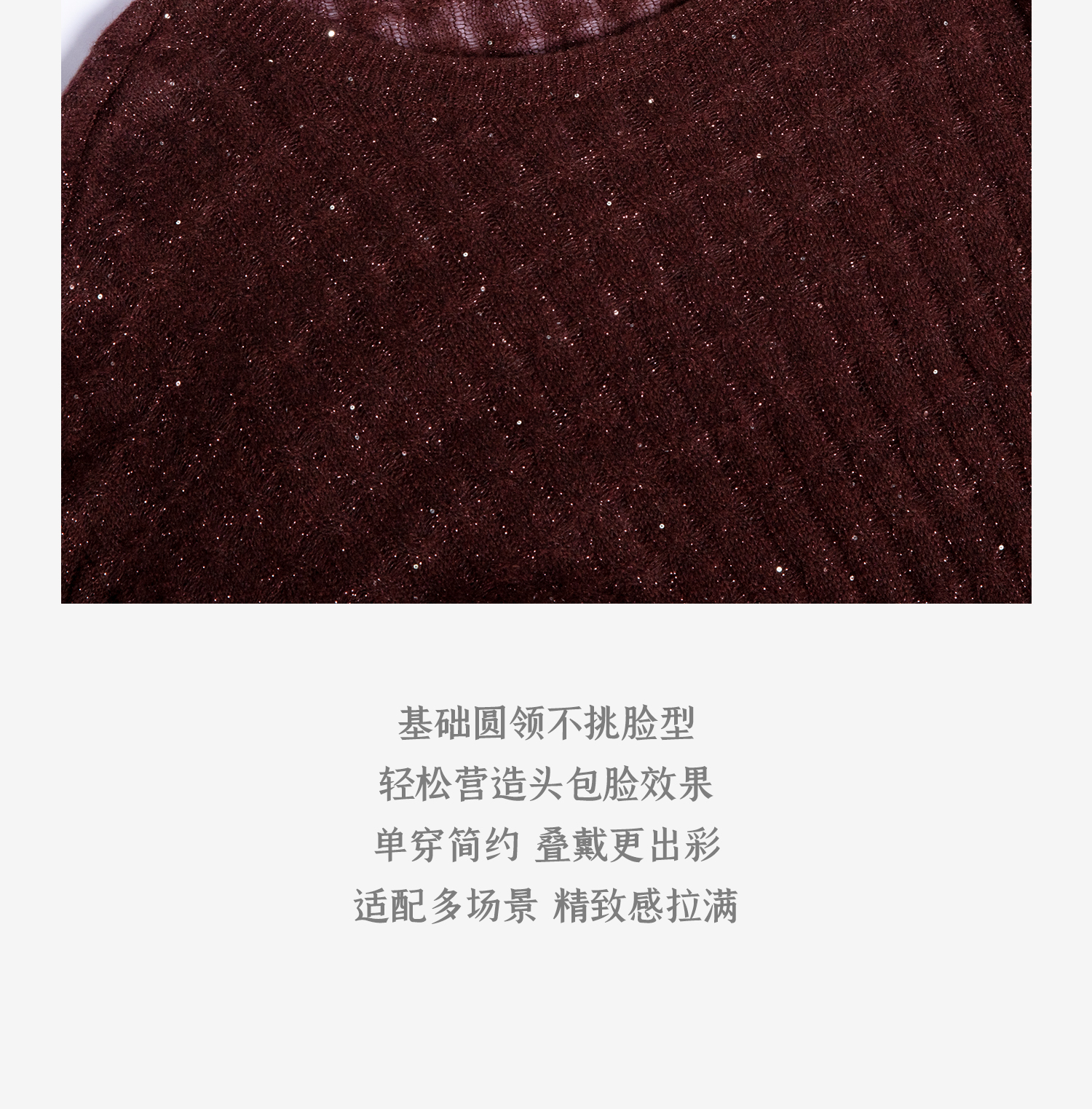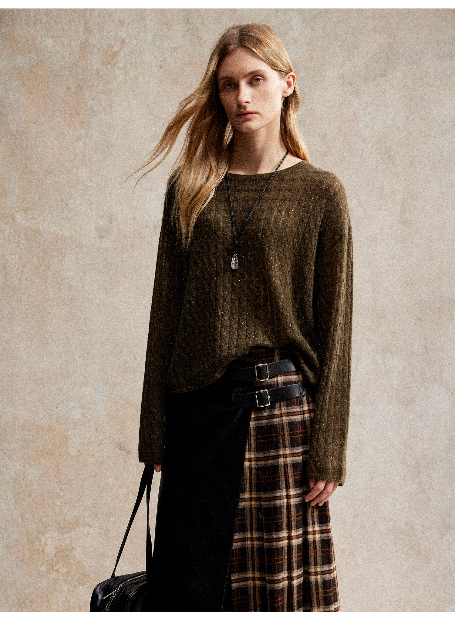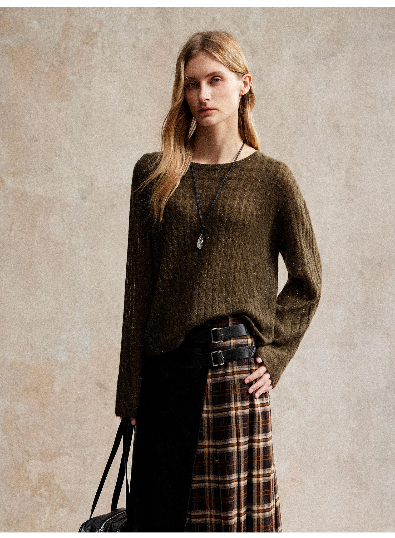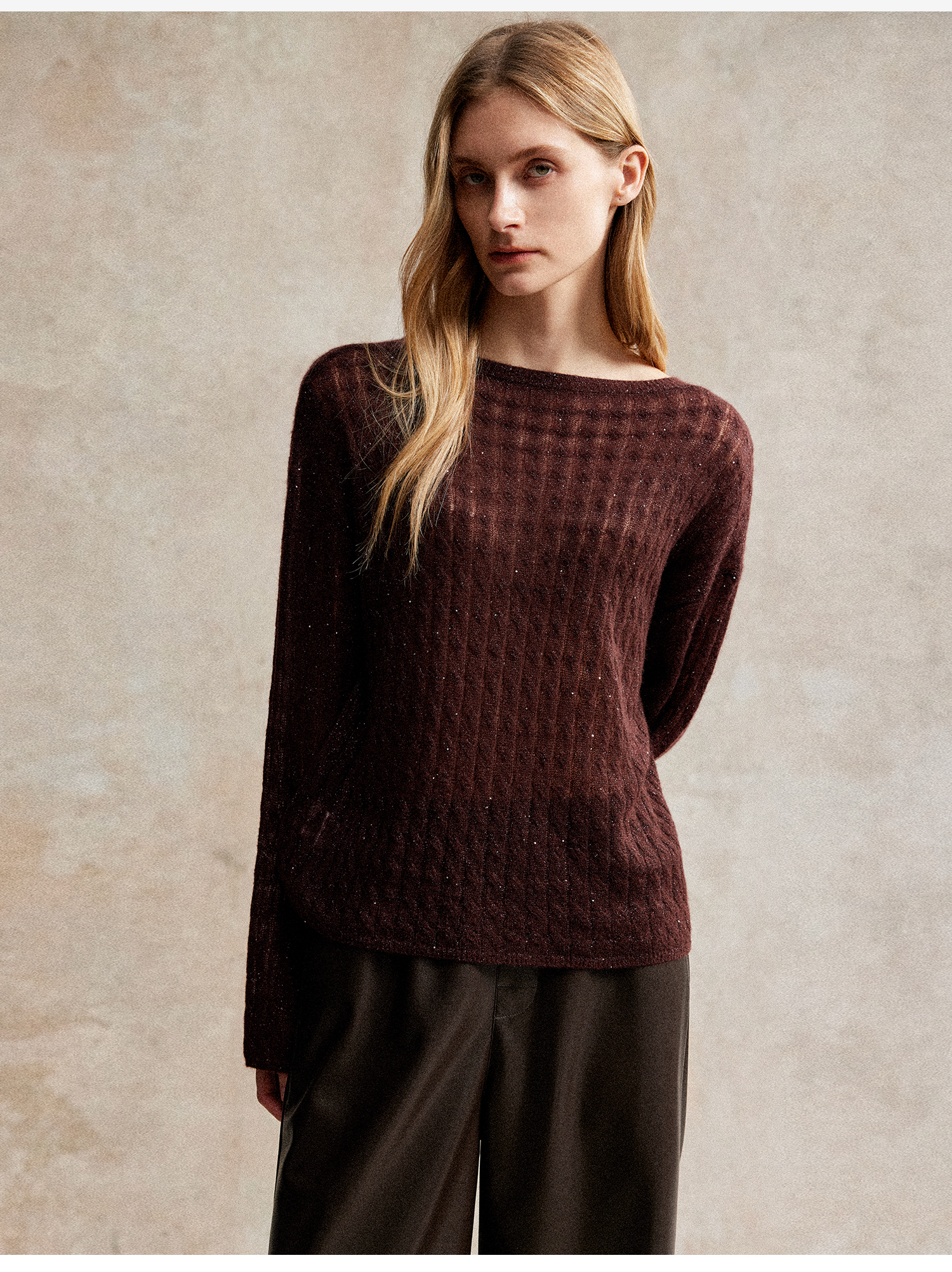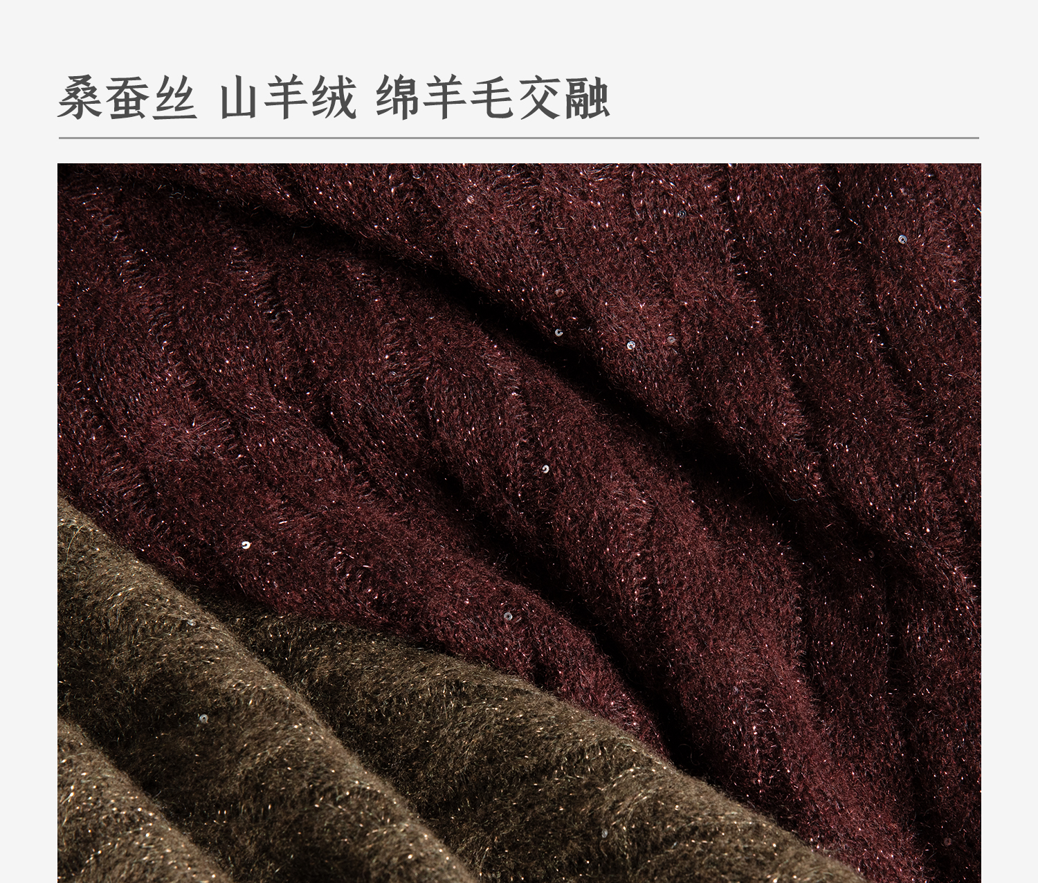 C+IMPRESS/西嘉 熠熠星光 复古绞花亮片桑蚕丝羊绒圆领针织毛衣女