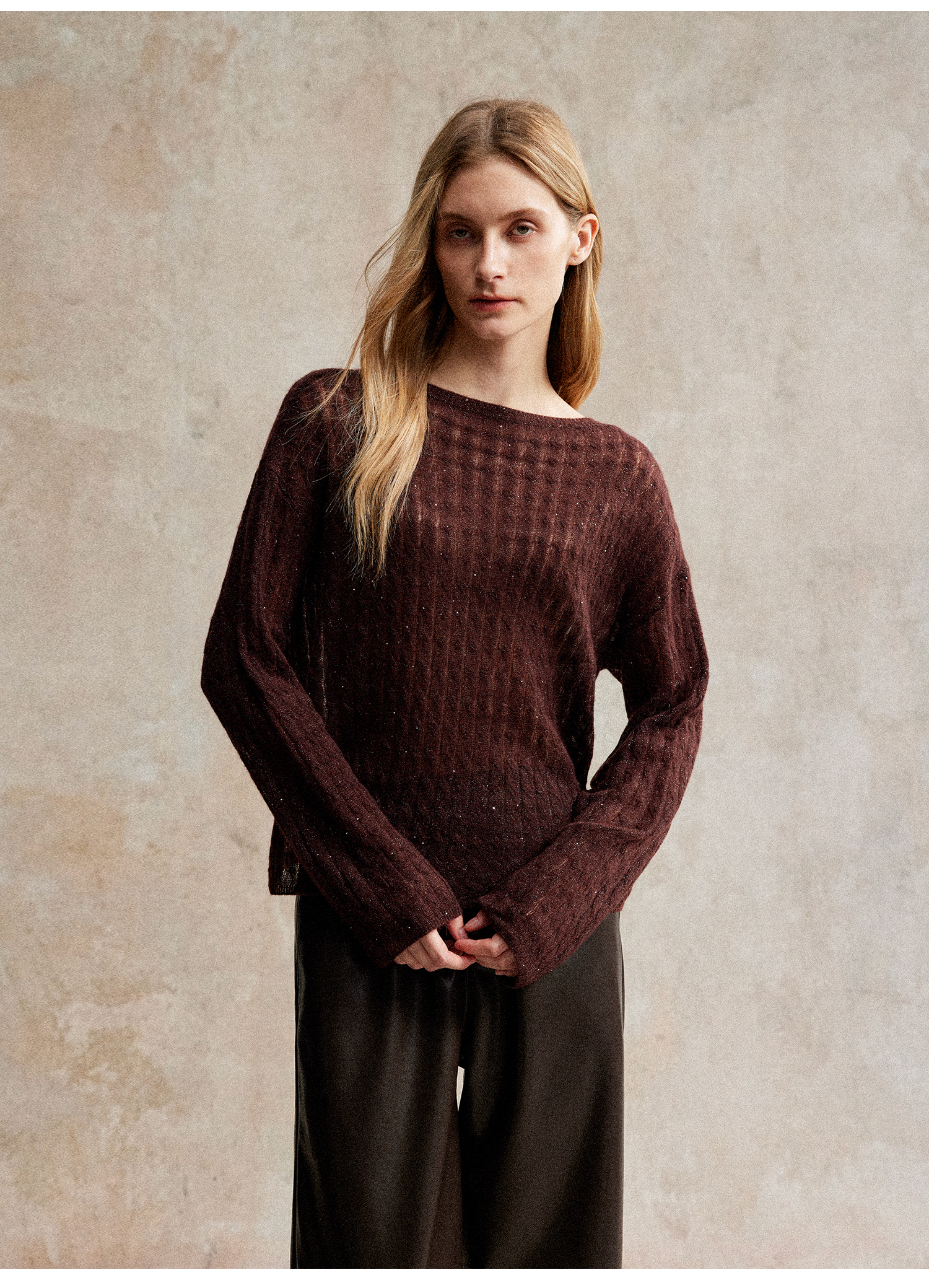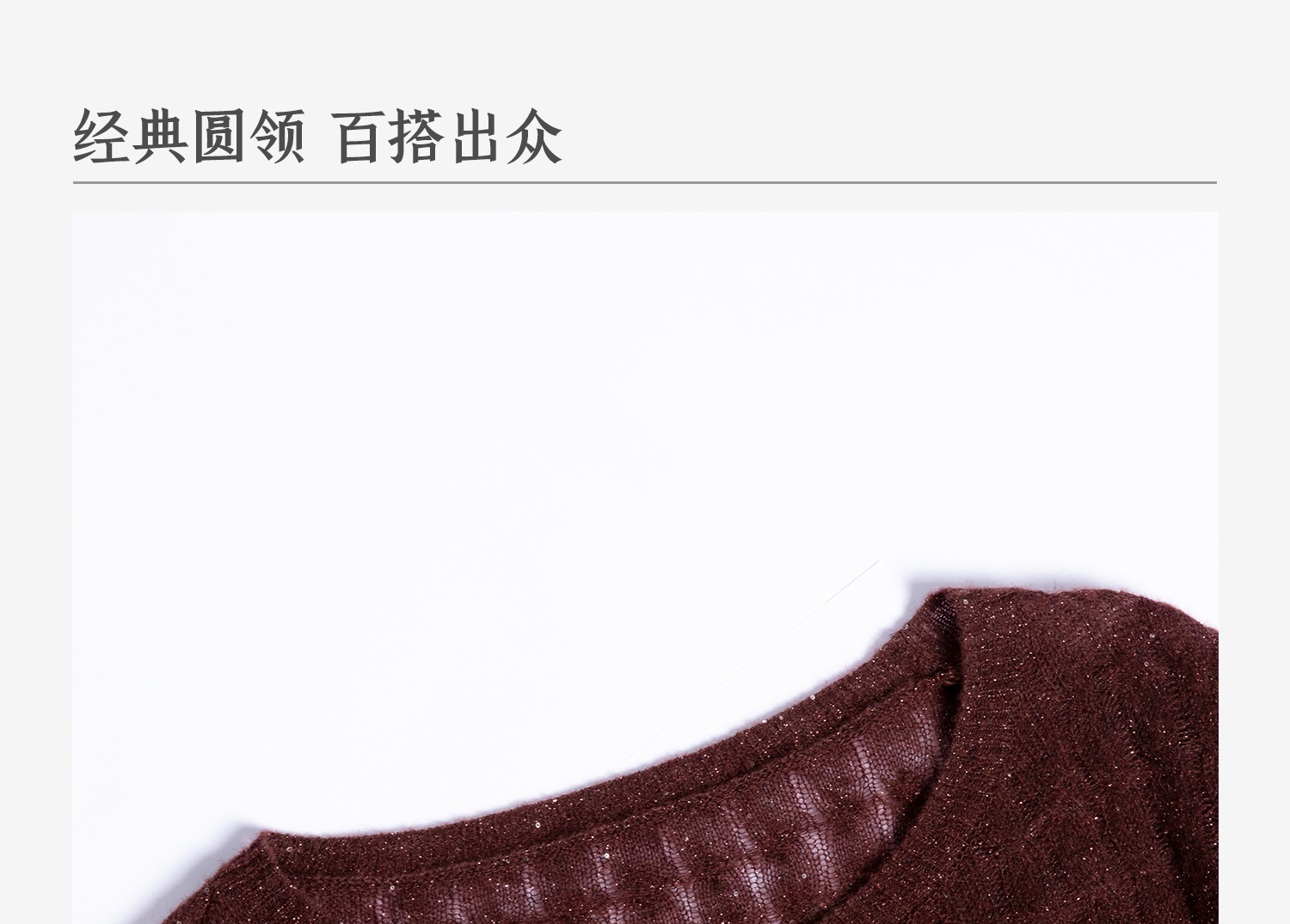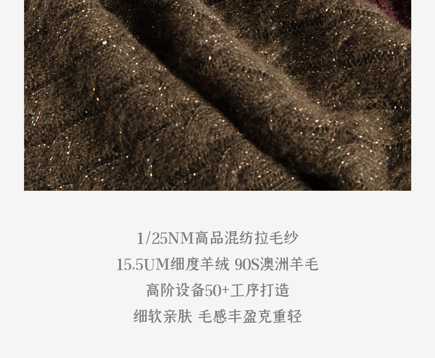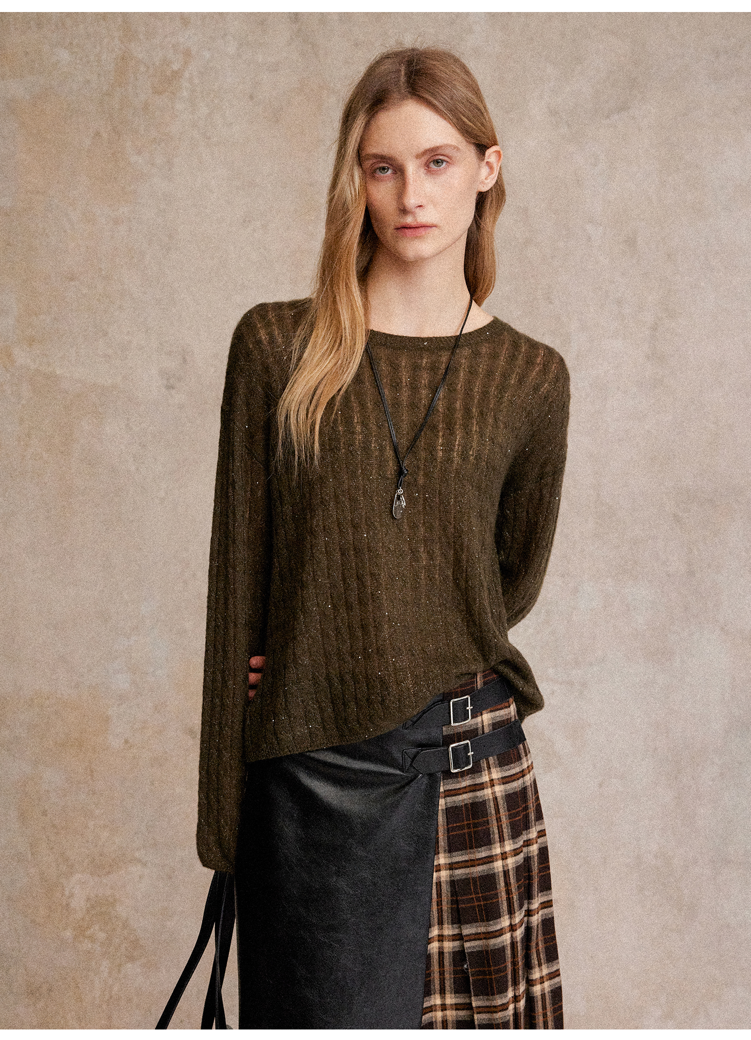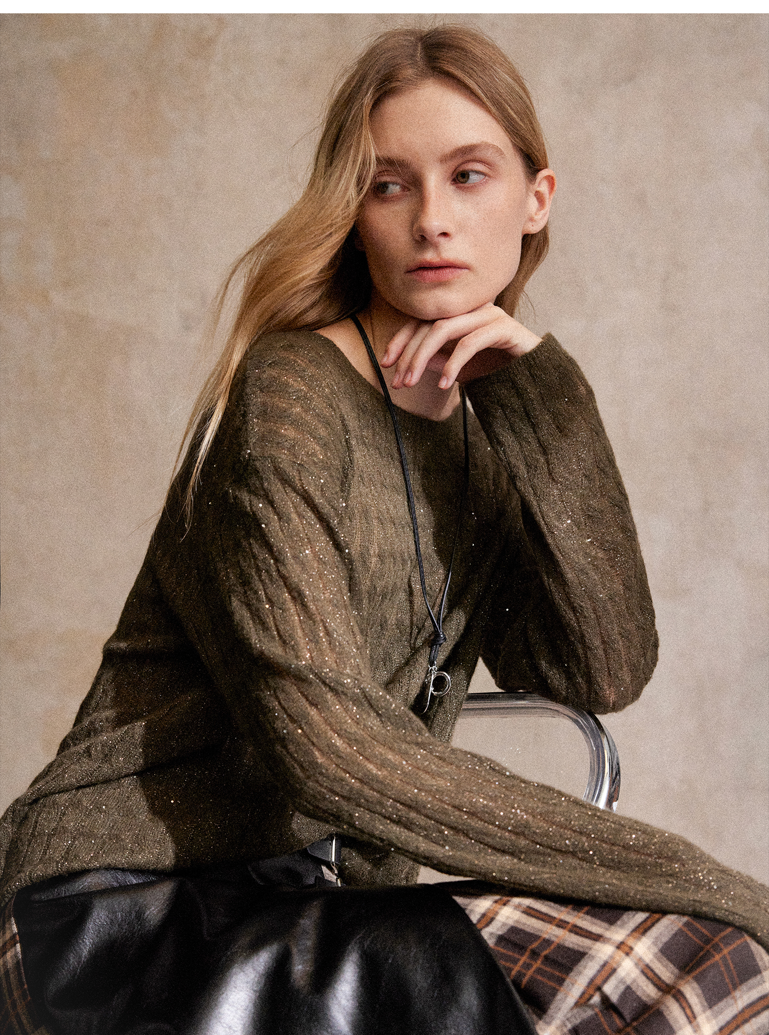 C+IMPRESS/西嘉 熠熠星光 复古绞花亮片桑蚕丝羊绒圆领针织毛衣女