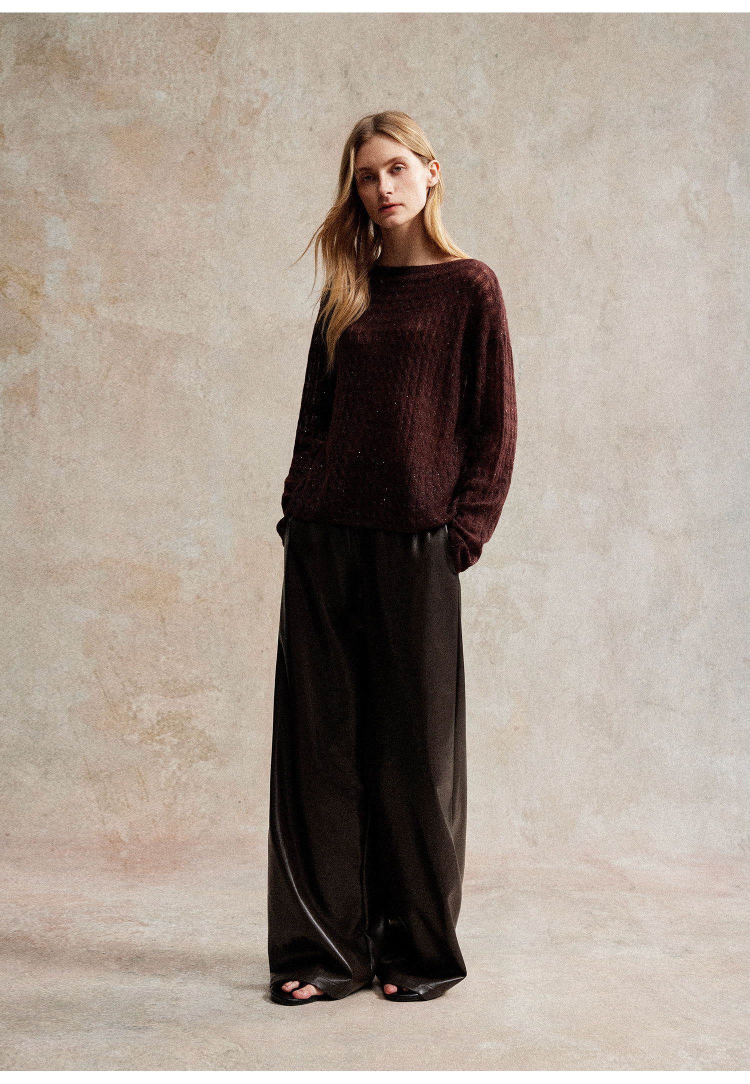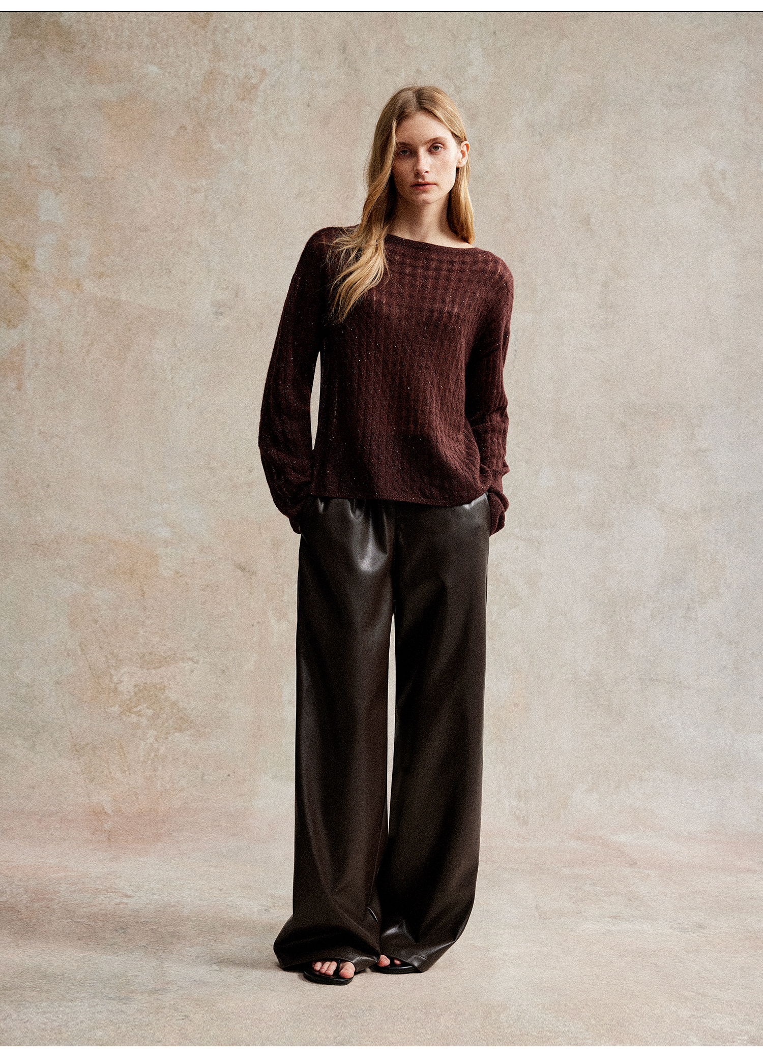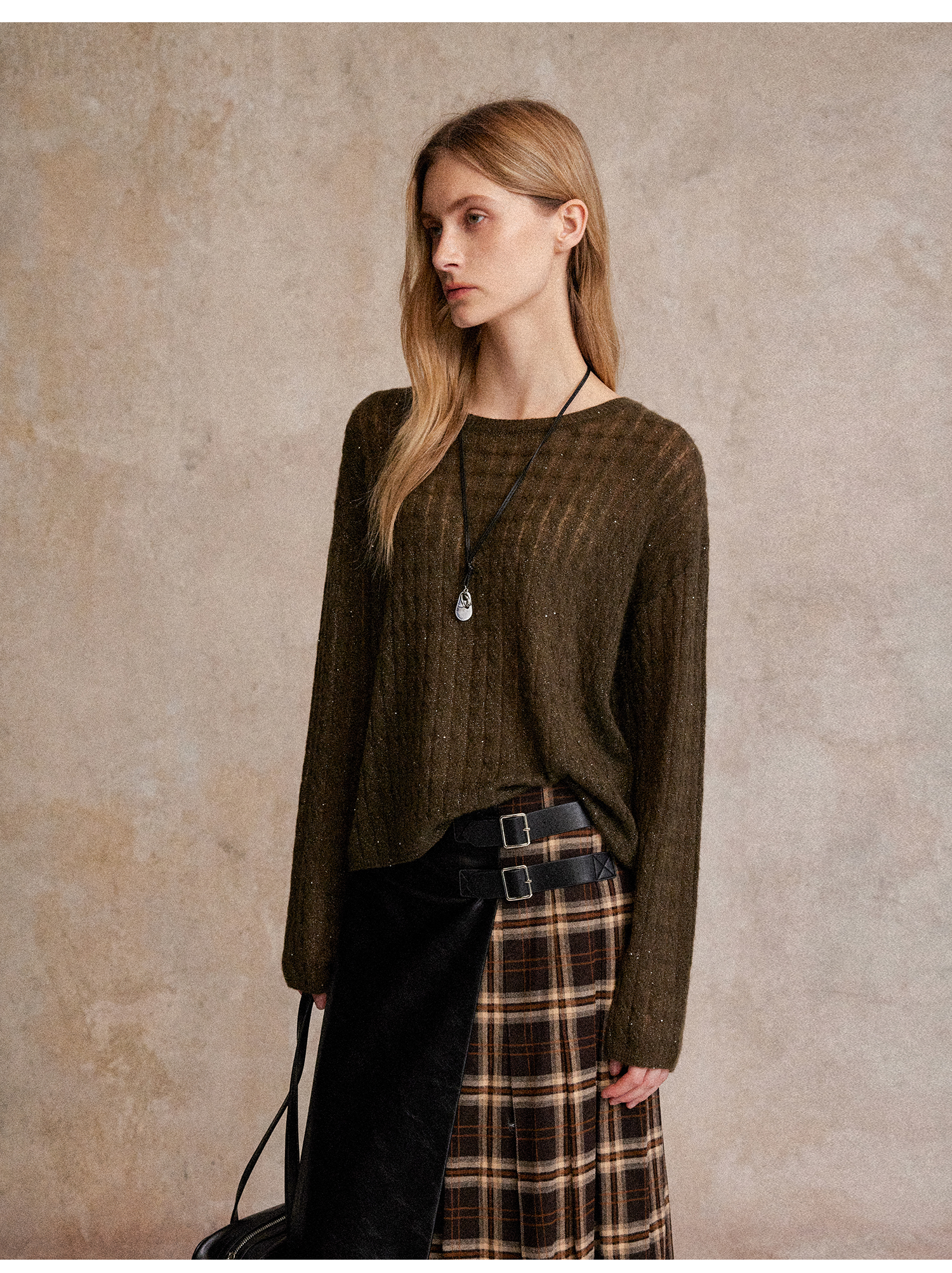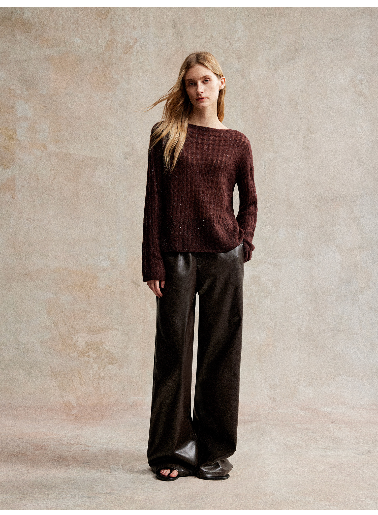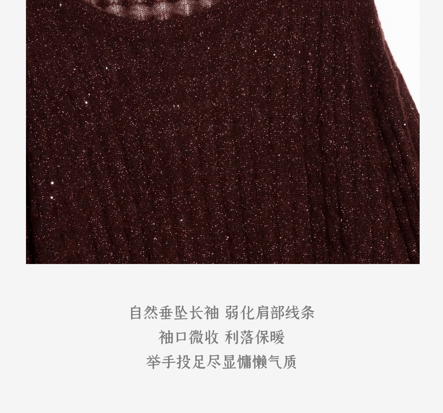 C+IMPRESS/西嘉 熠熠星光 复古绞花亮片桑蚕丝羊绒圆领针织毛衣女