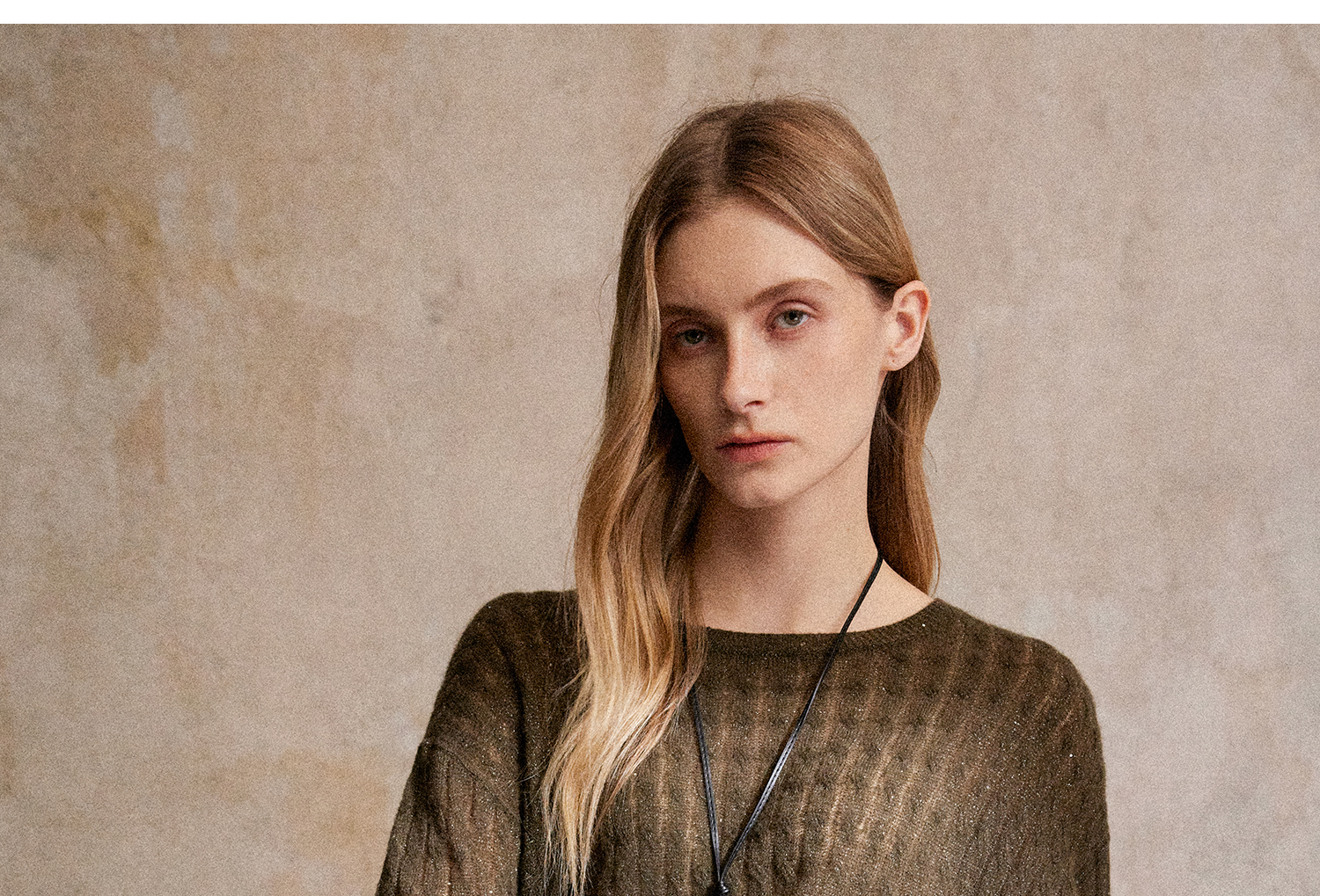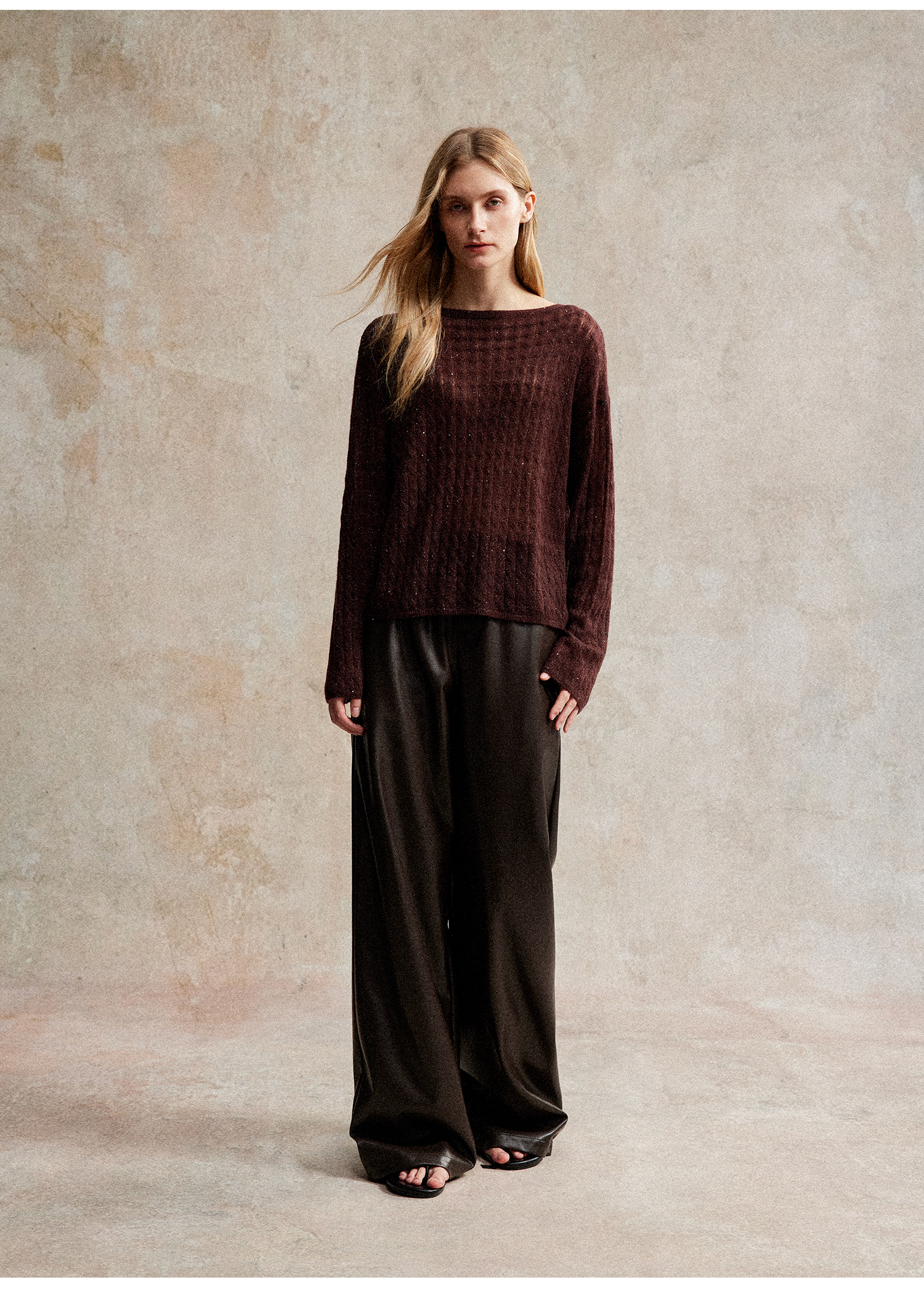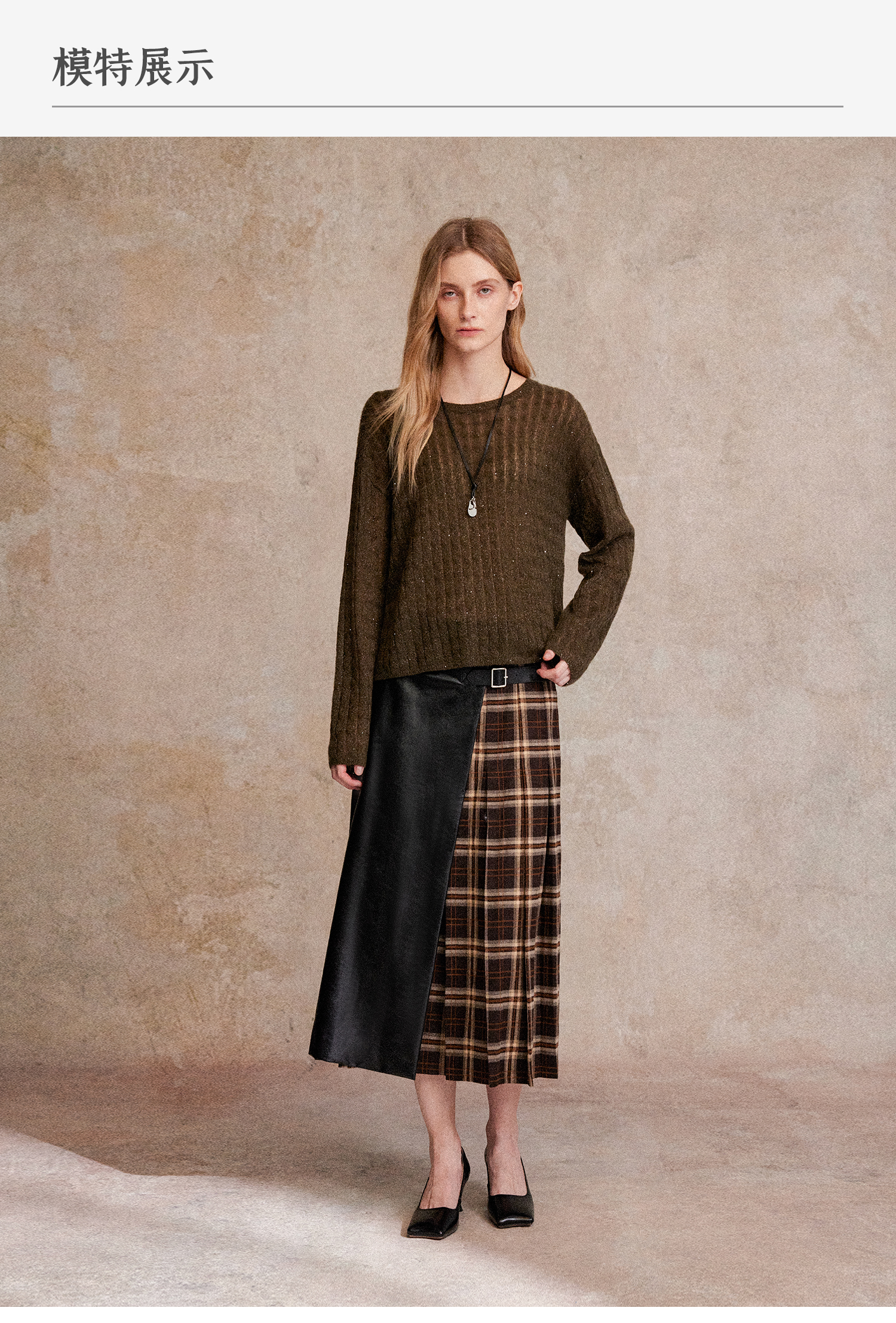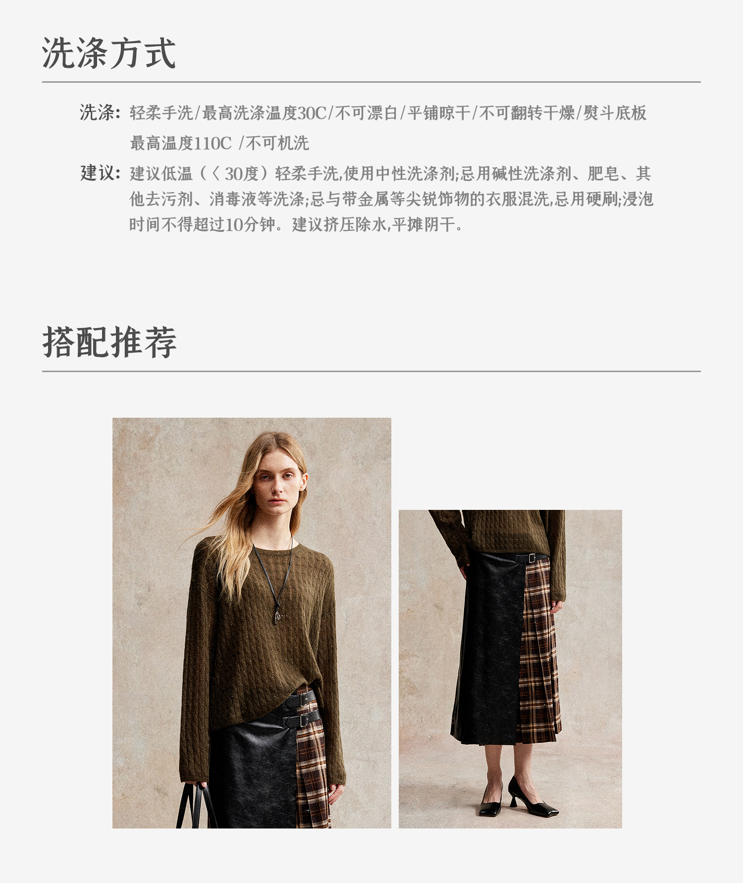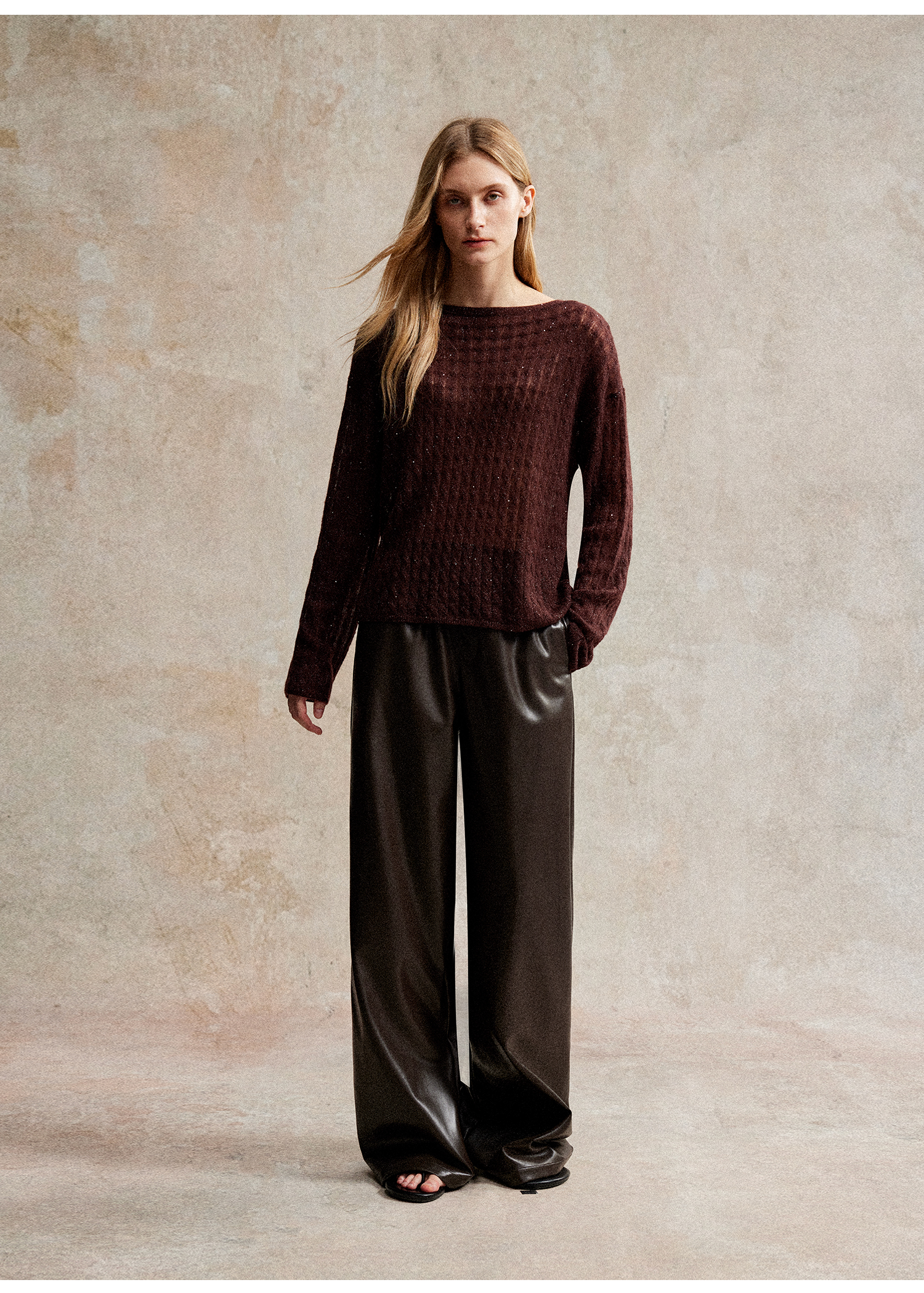 C+IMPRESS/西嘉 熠熠星光 复古绞花亮片桑蚕丝羊绒圆领针织毛衣女