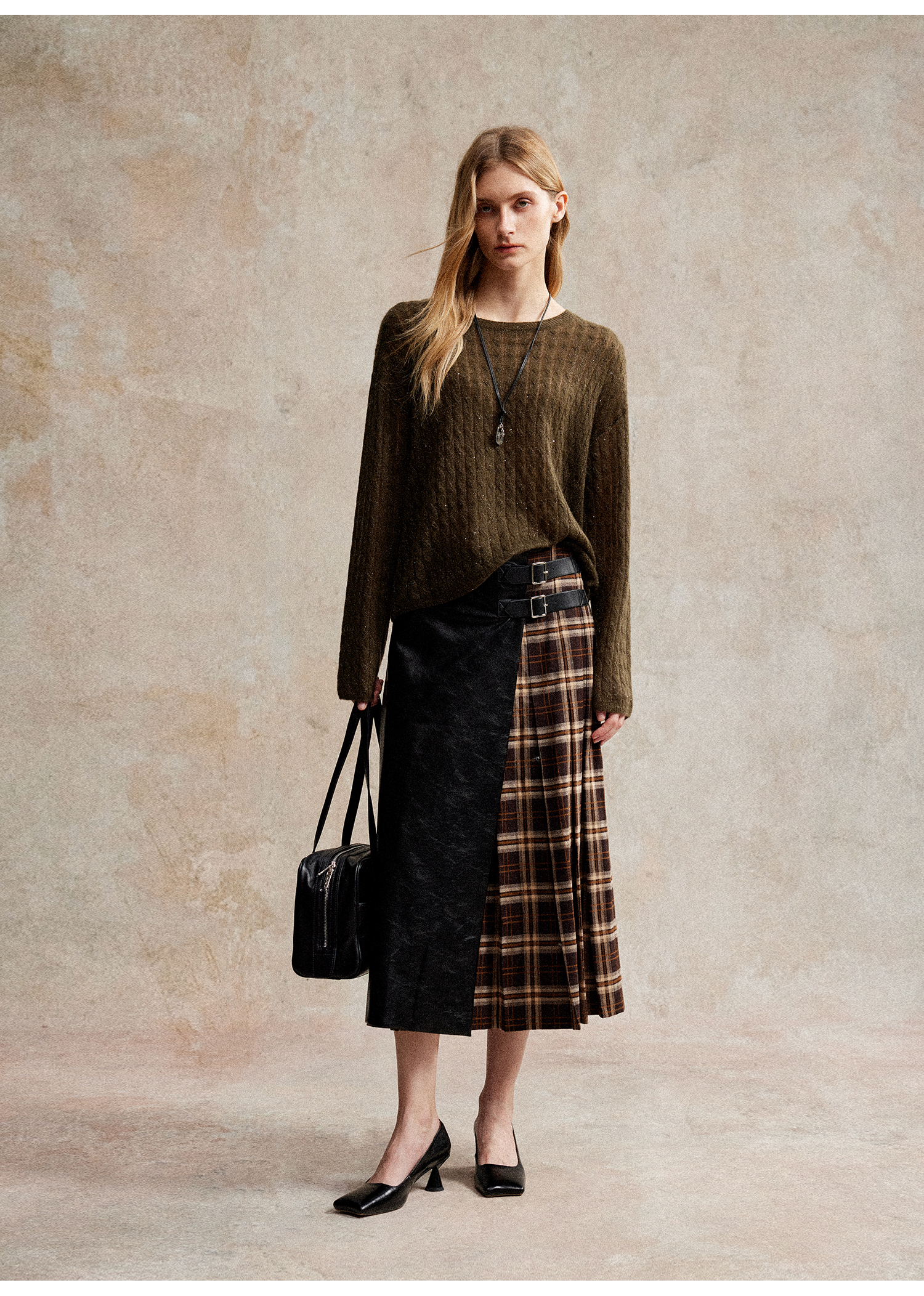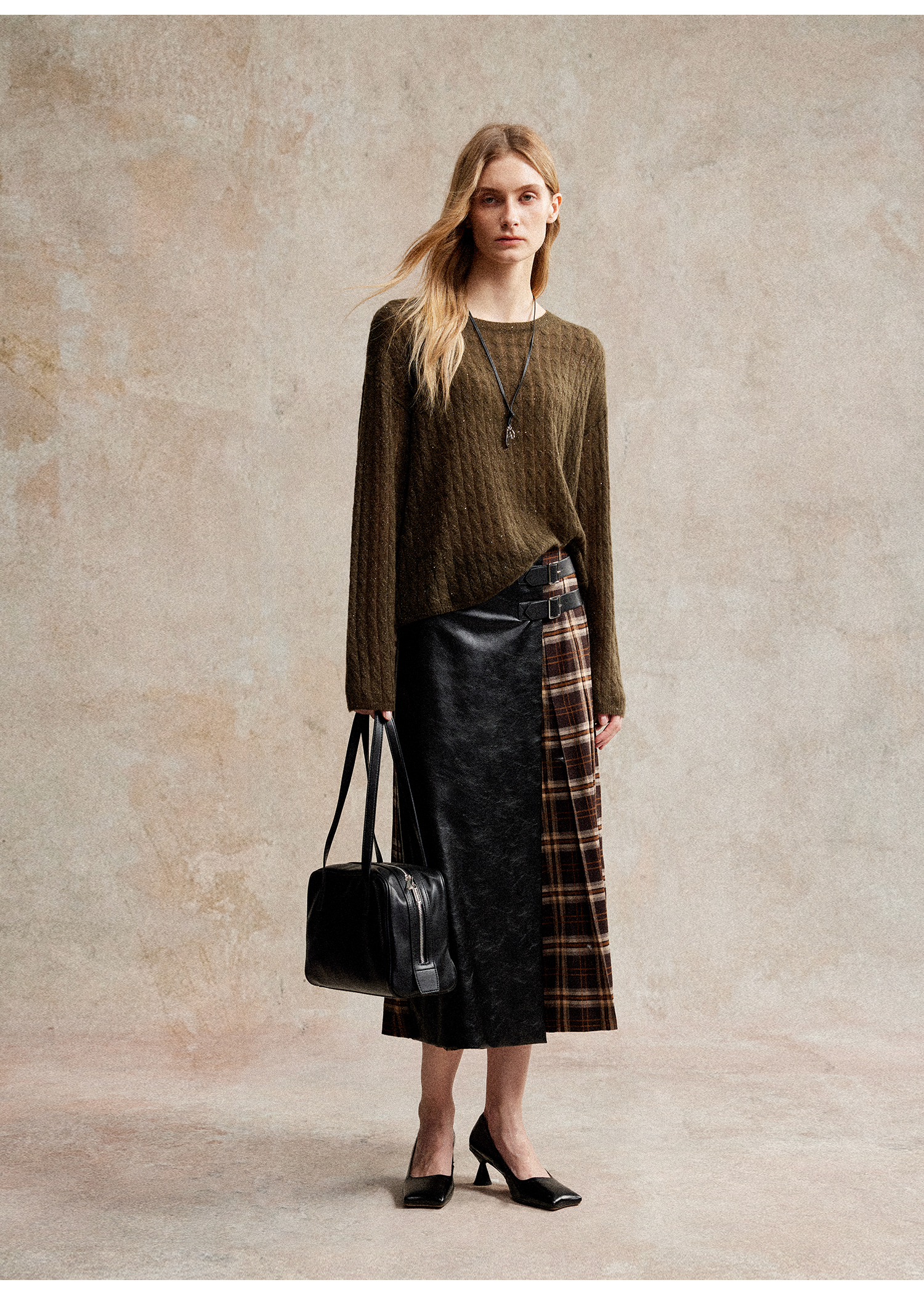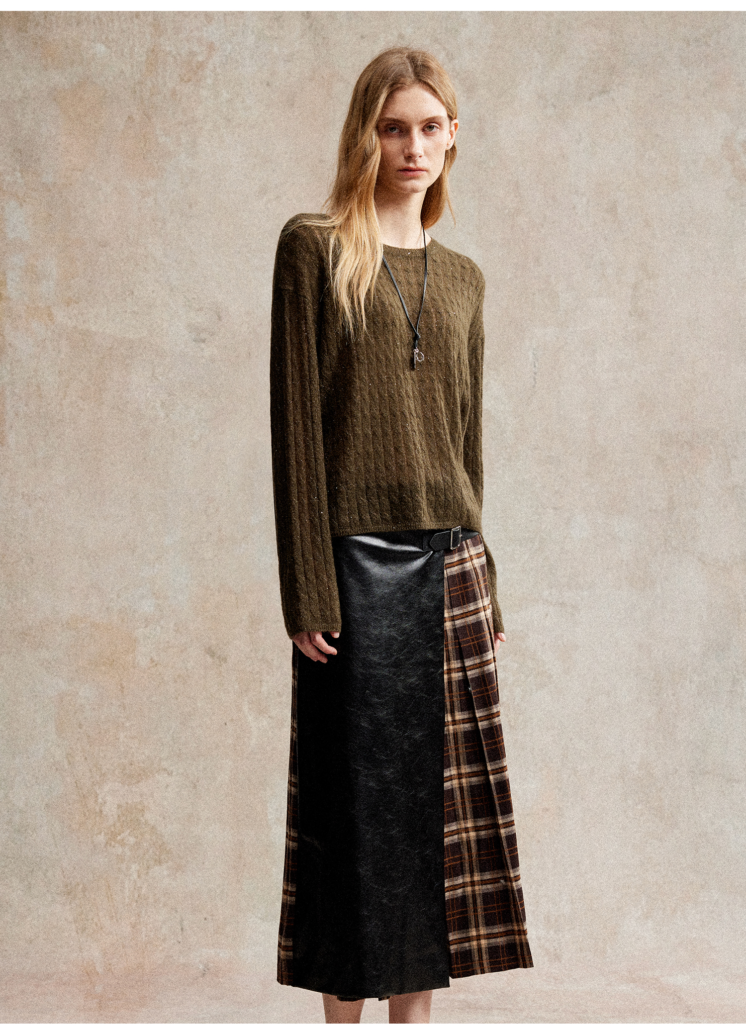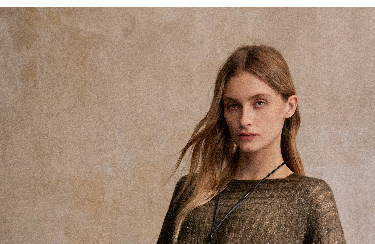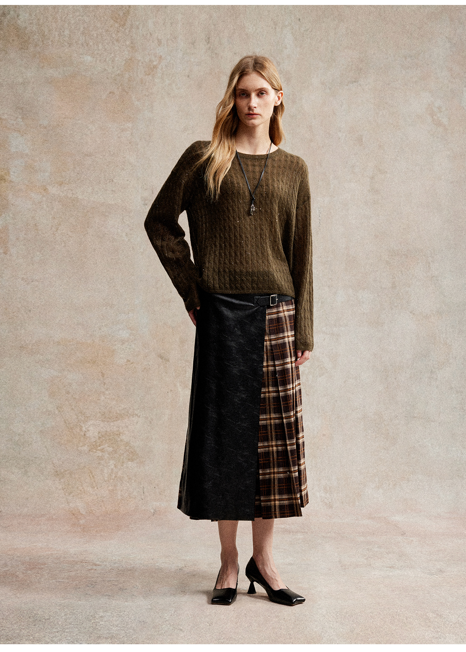 C+IMPRESS/西嘉 熠熠星光 复古绞花亮片桑蚕丝羊绒圆领针织毛衣女