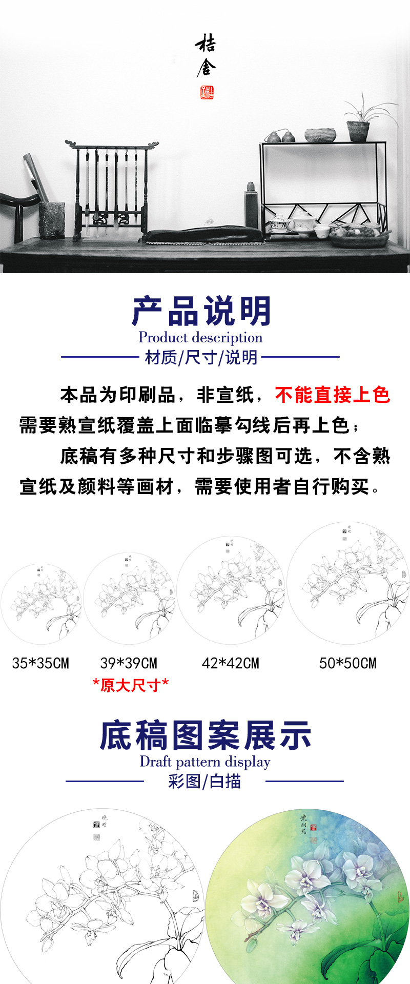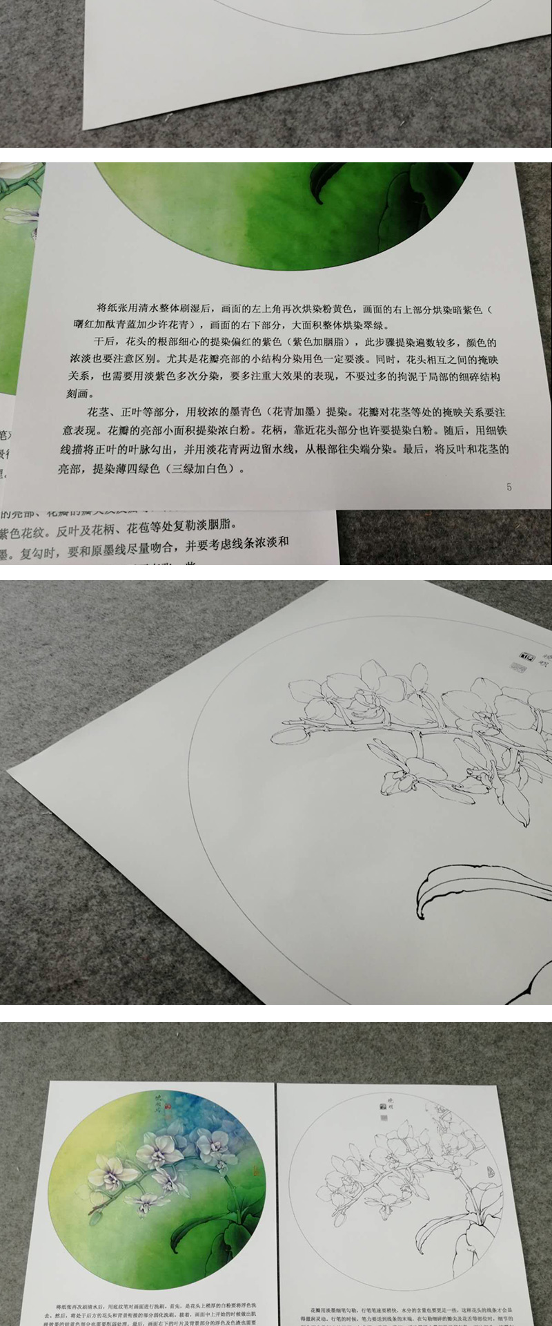 【有步骤、大彩图】李晓明工笔画白描稿小品《蝴蝶兰写真图》蝴蝶兰花临摹勾线花鸟线稿KB01