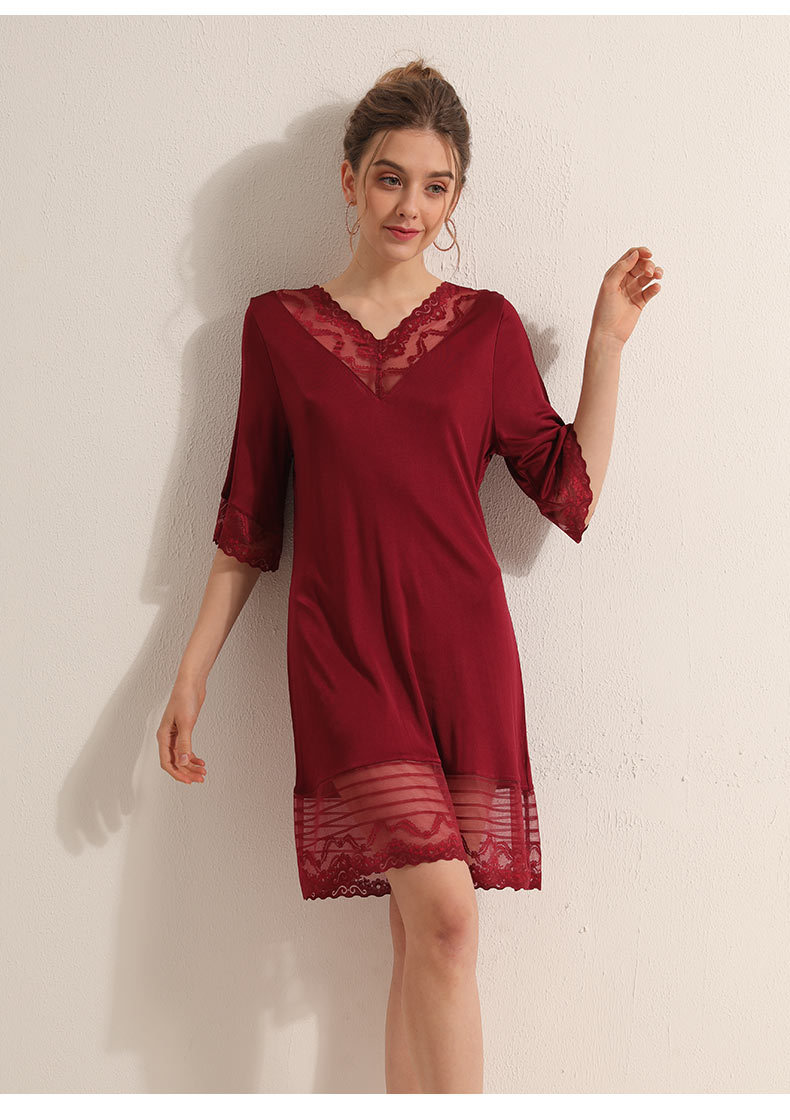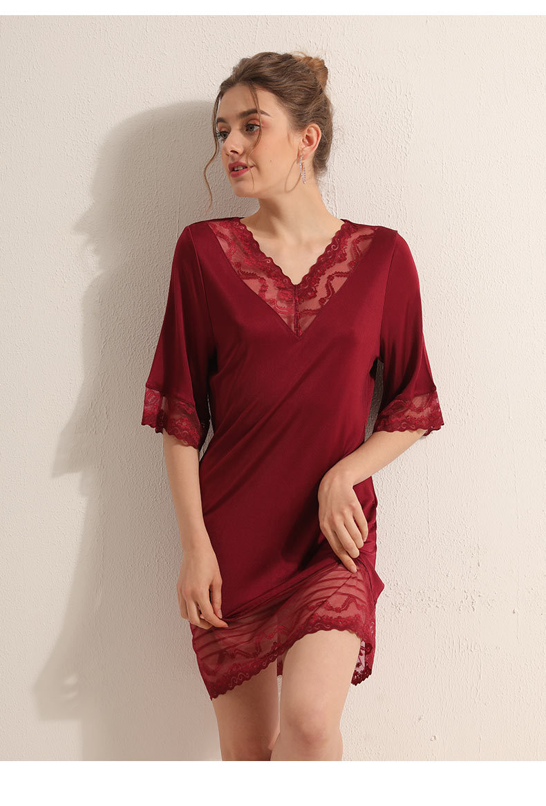 TG-TG03S119真丝吊带睡裙女夏季性感蕾丝薄款桑蚕丝睡衣女宽松外穿家居服