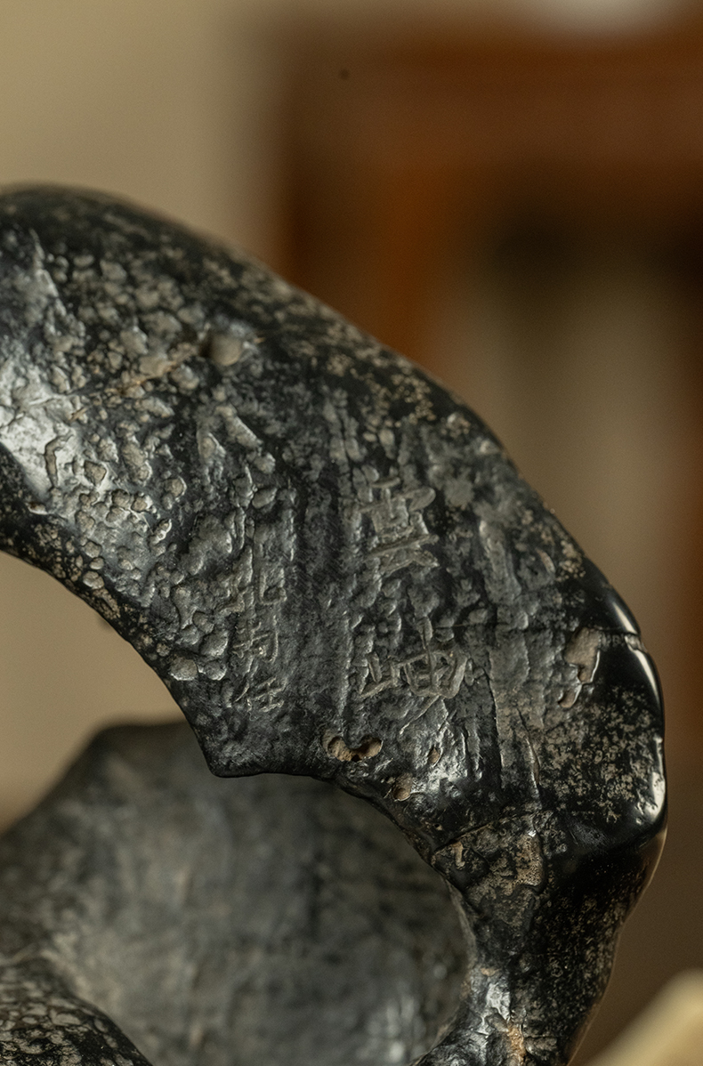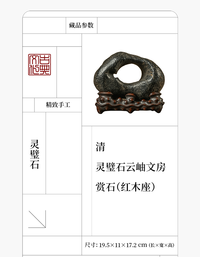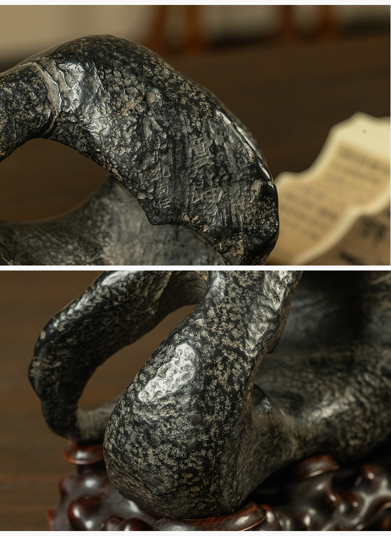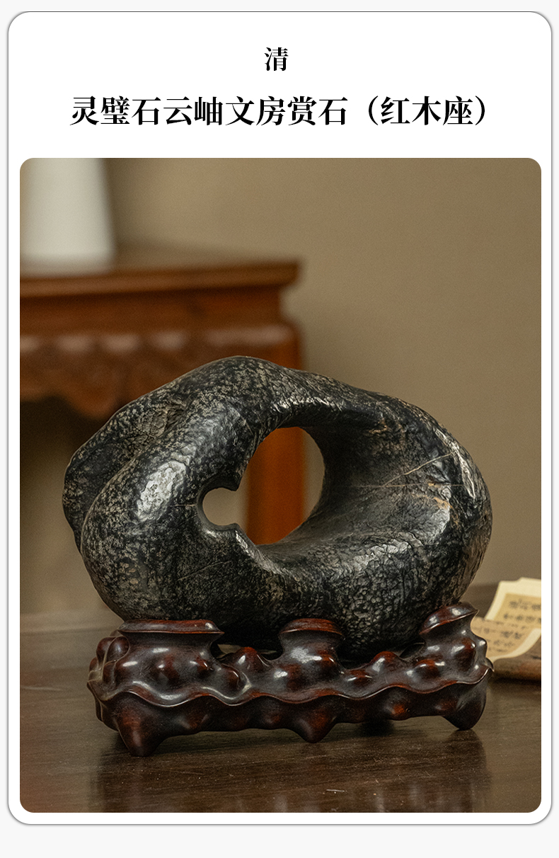 清 灵璧石云岫文房赏石(红木座)