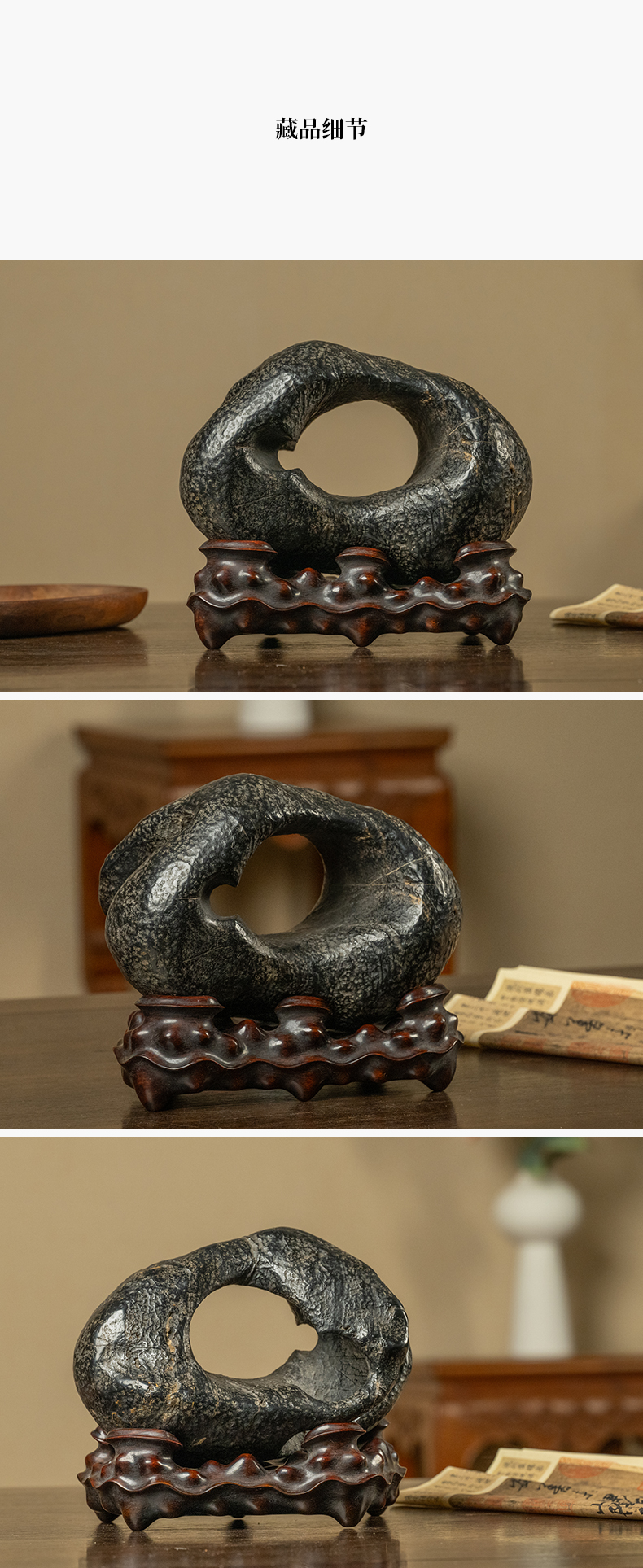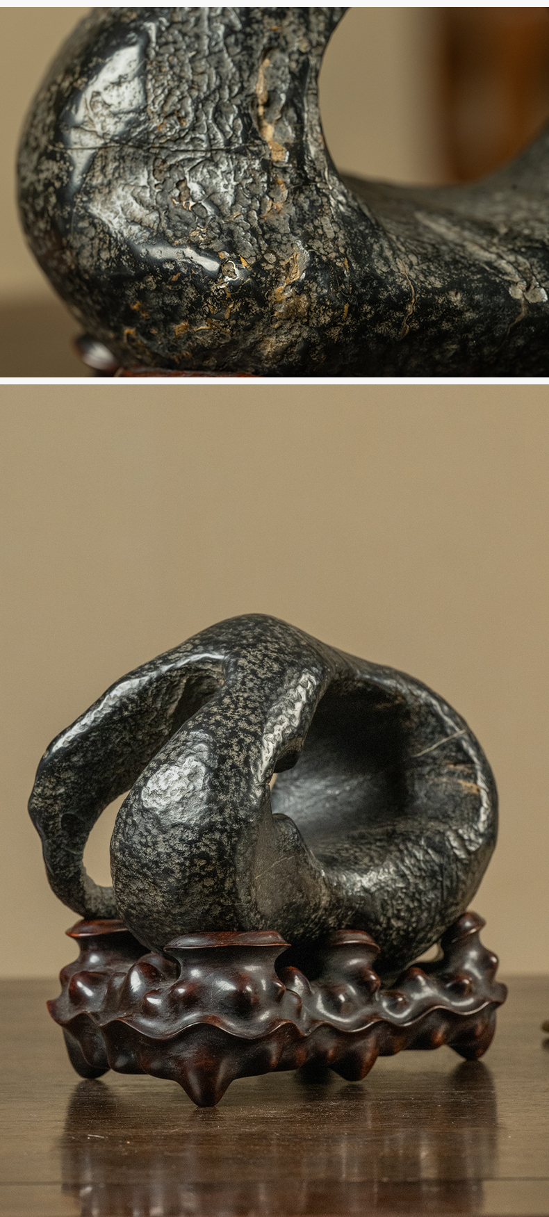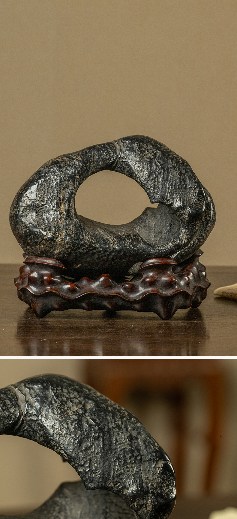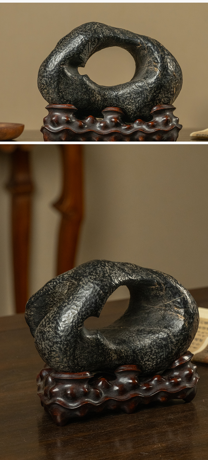 清 灵璧石云岫文房赏石(红木座)