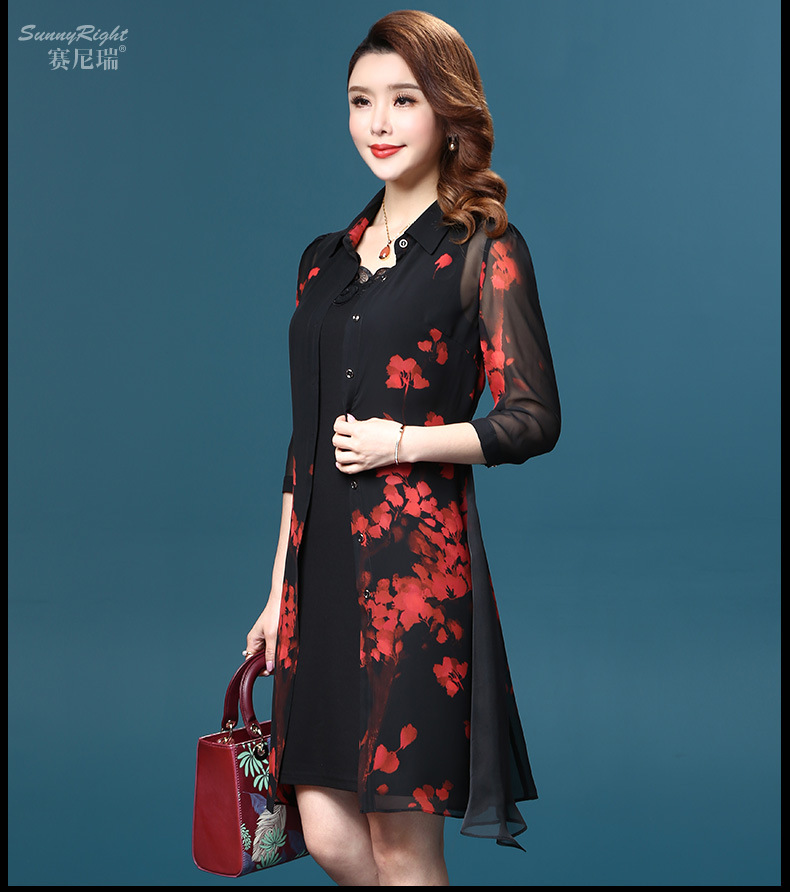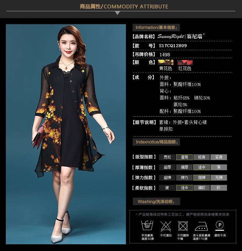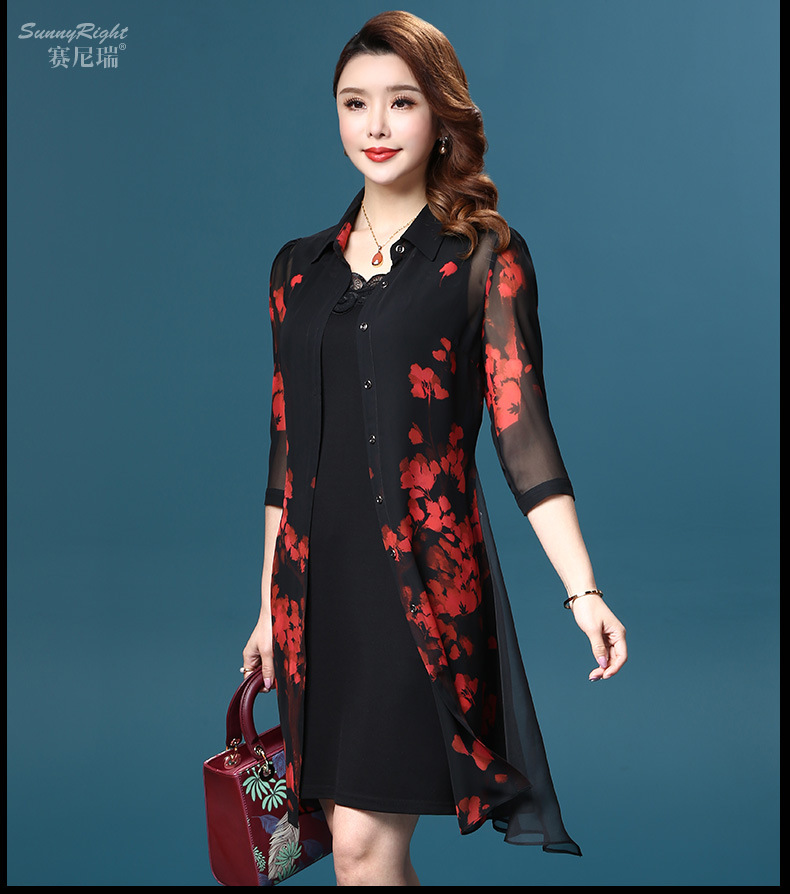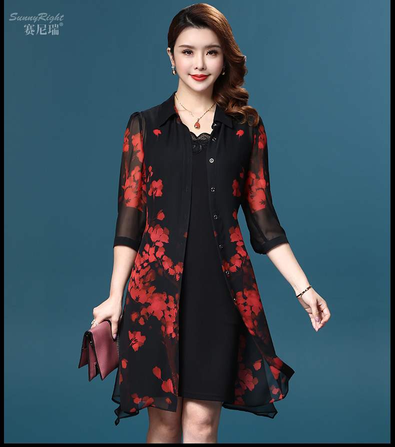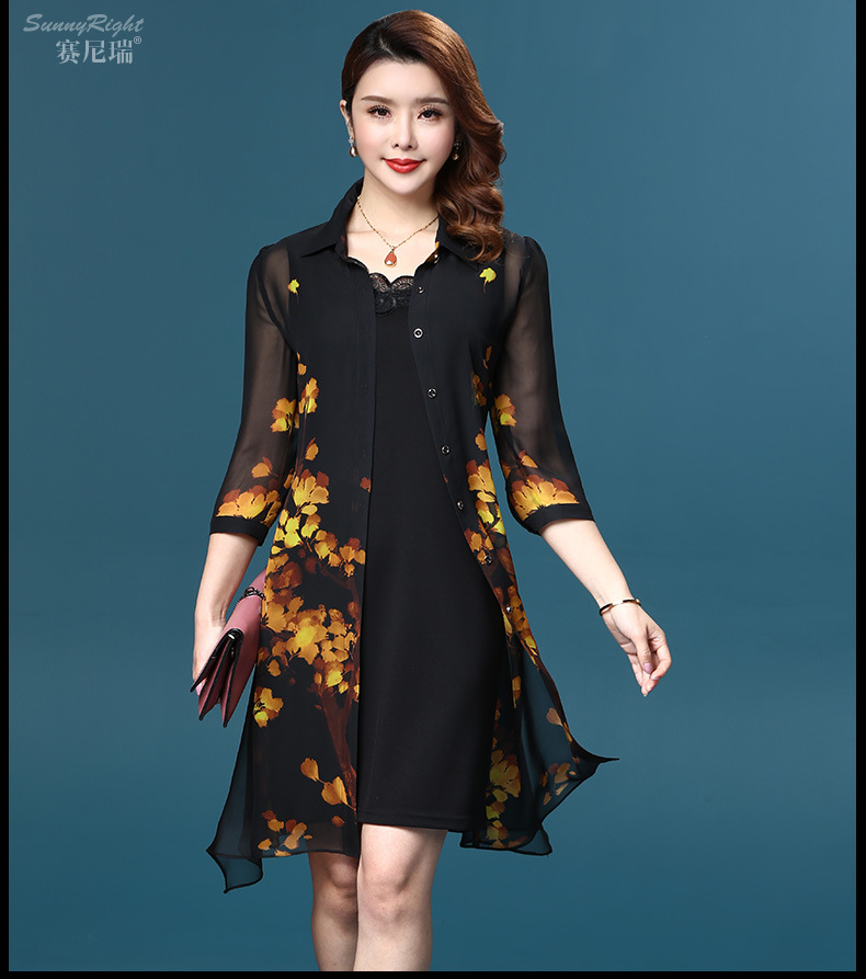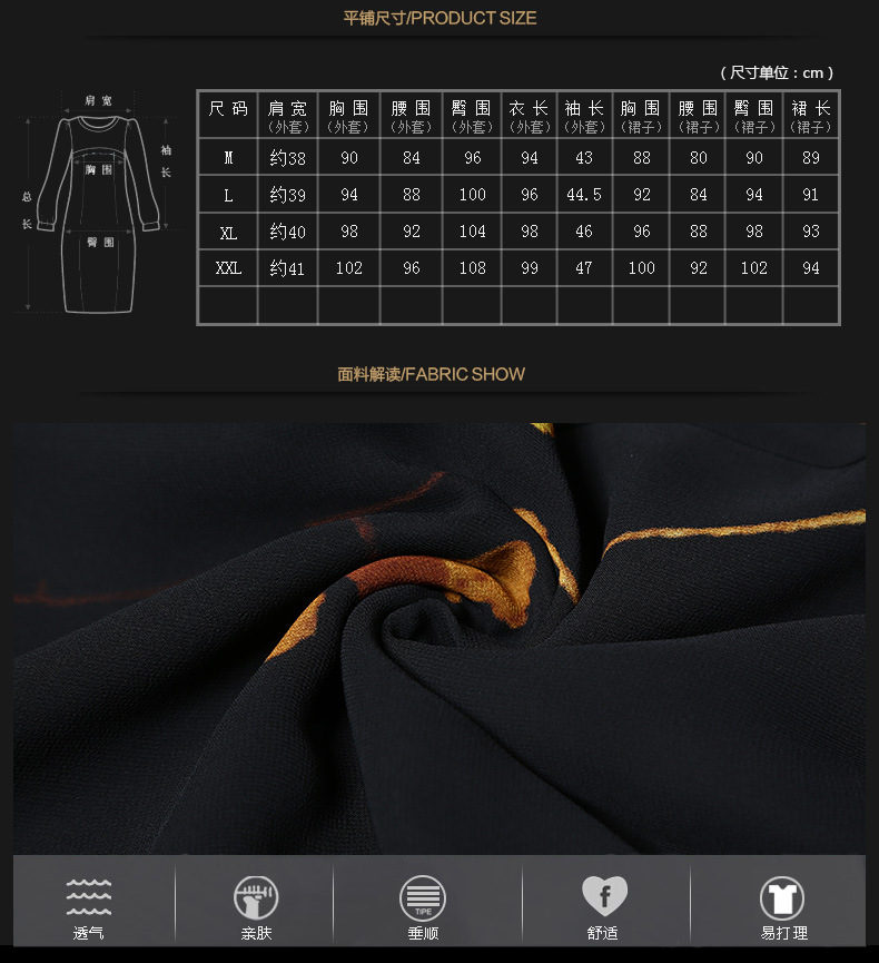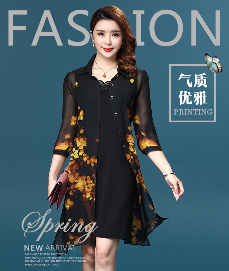 KLY1154 春夏新款气质两件套中腰修身印花七分袖连衣裙