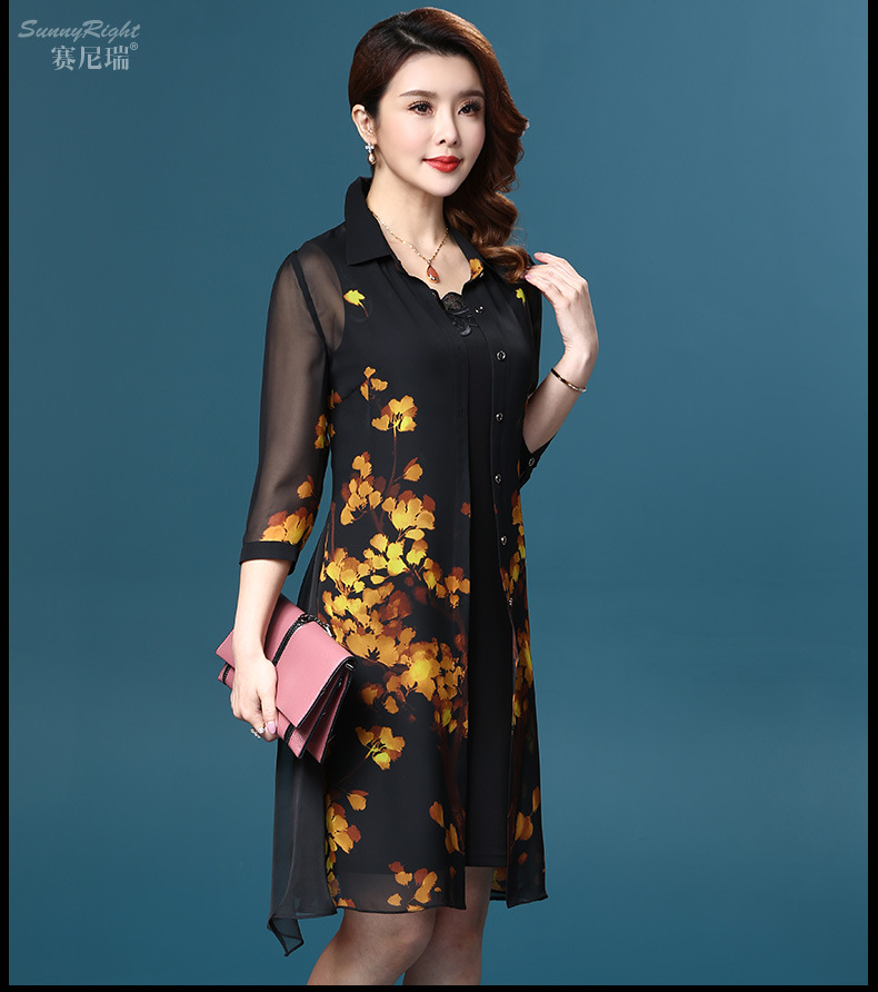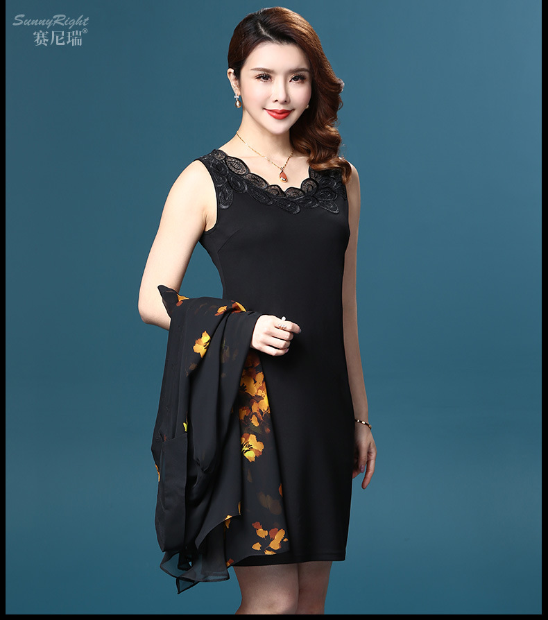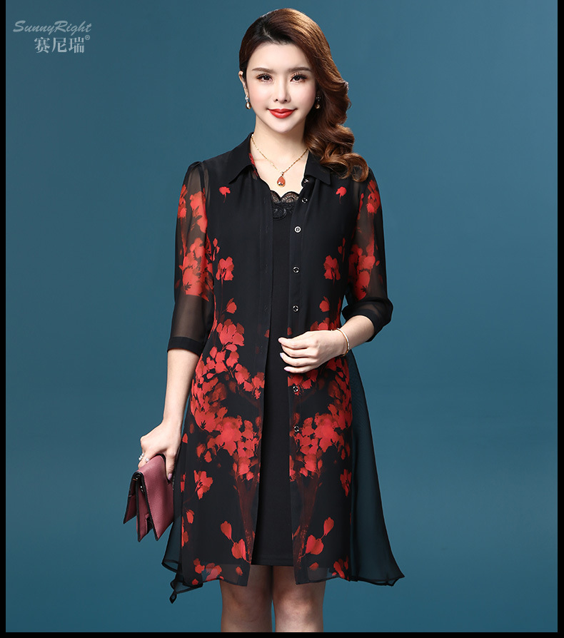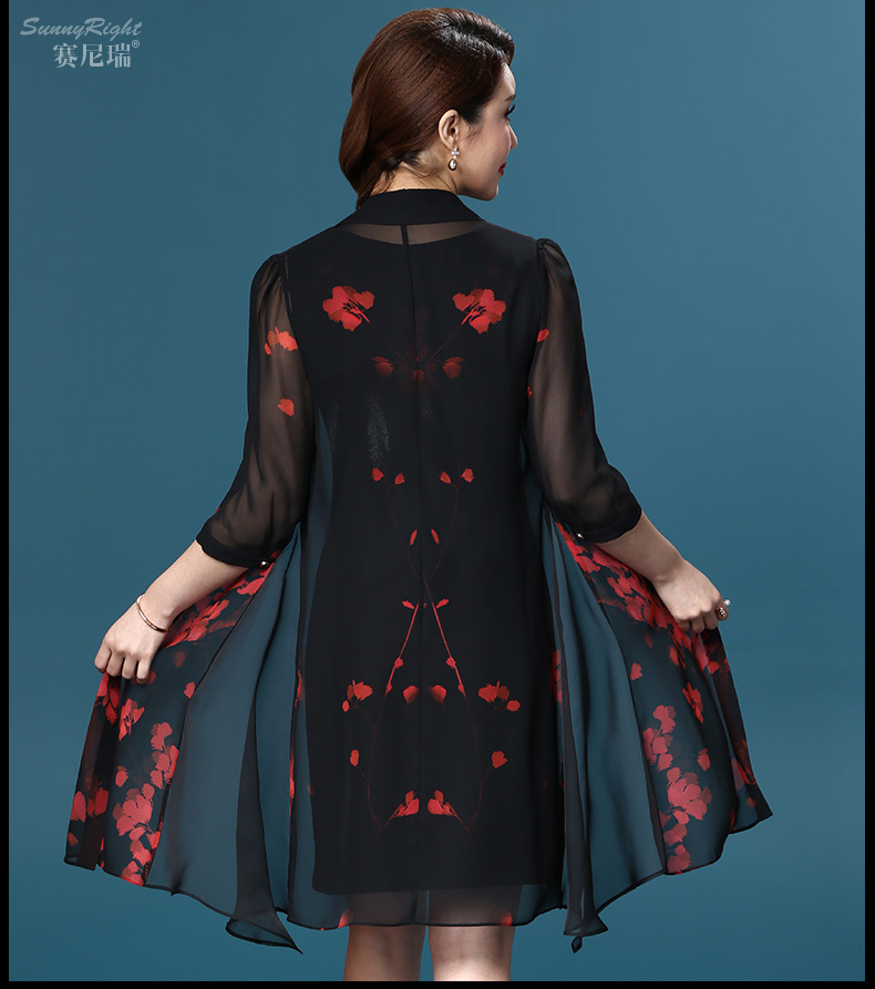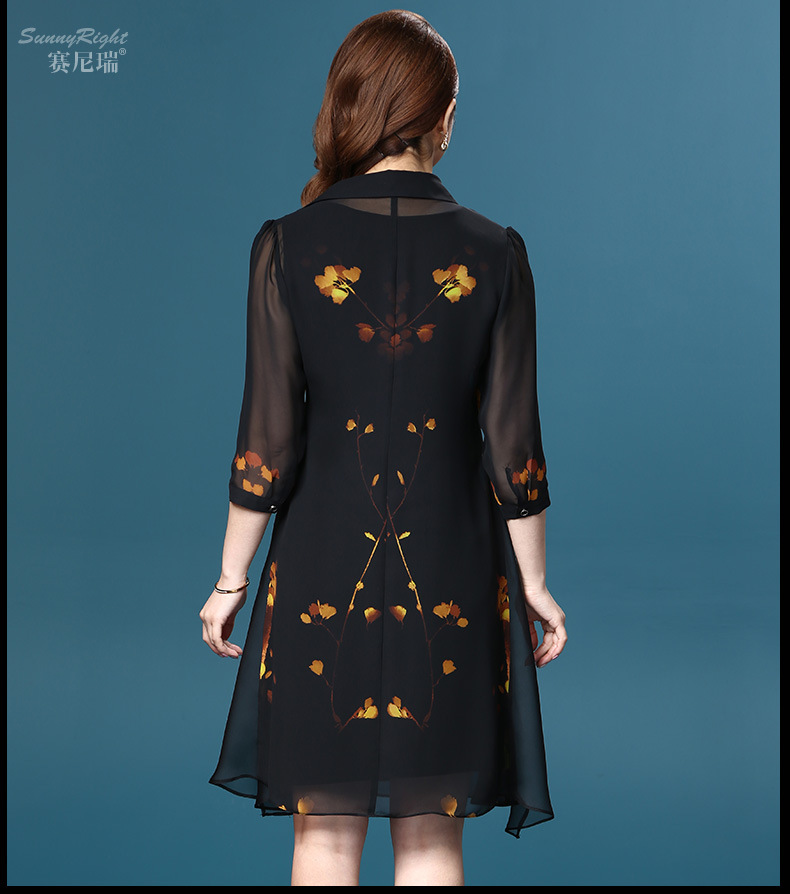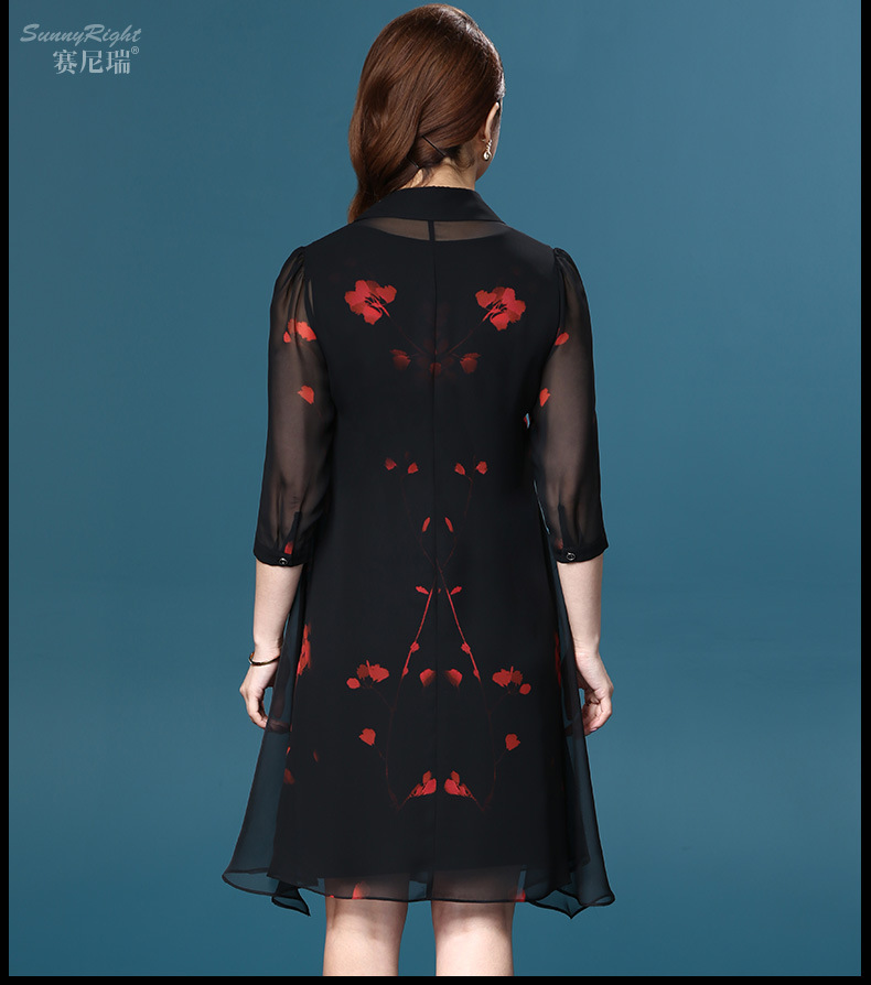 KLY1154 春夏新款气质两件套中腰修身印花七分袖连衣裙