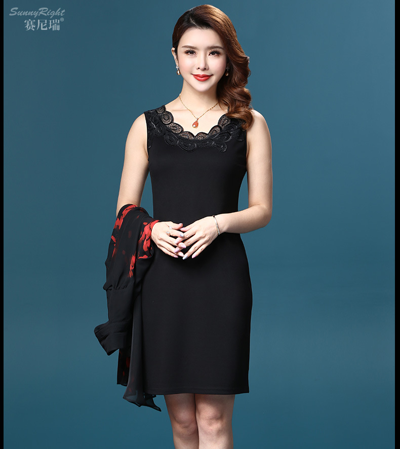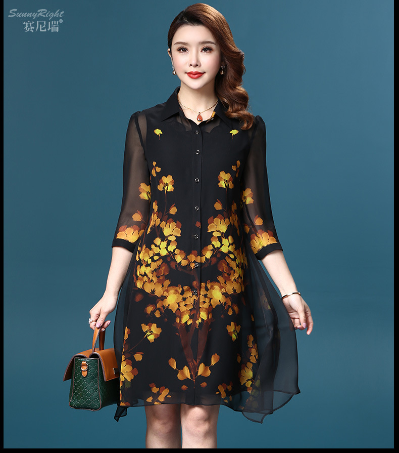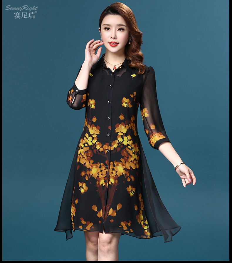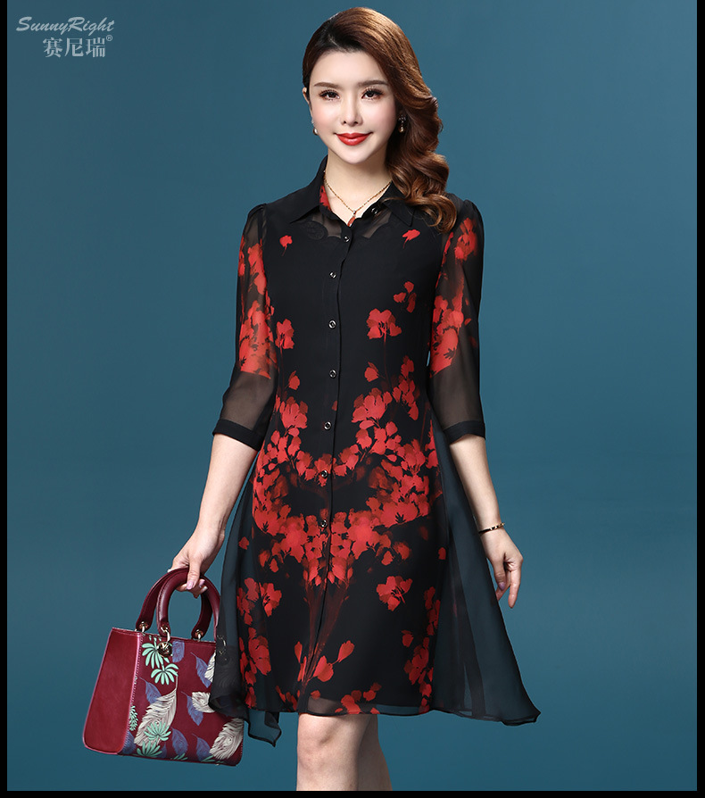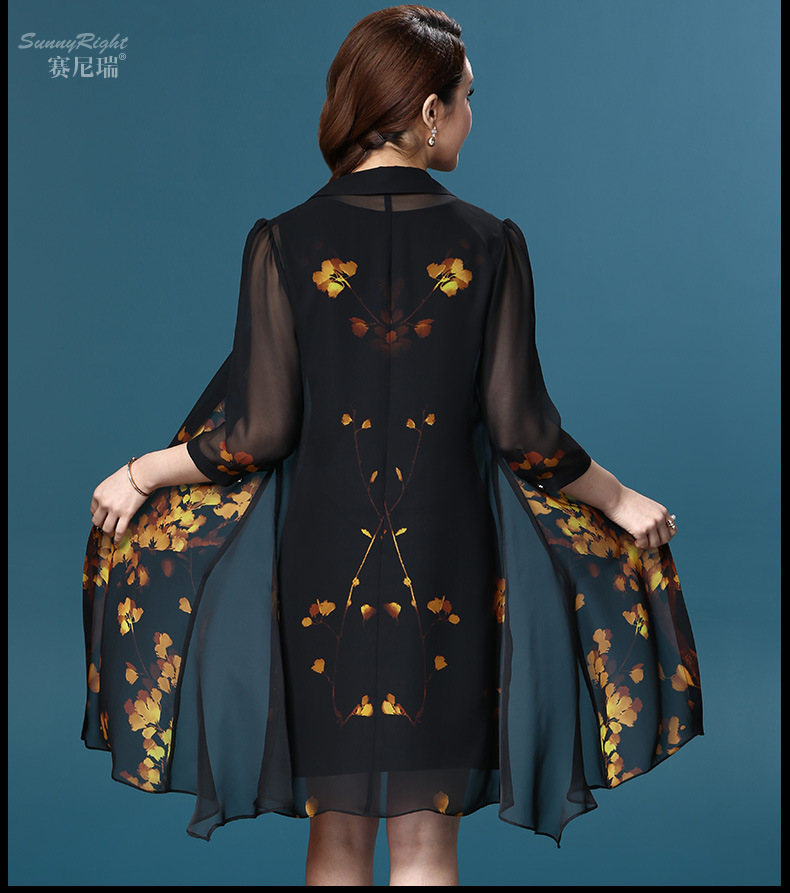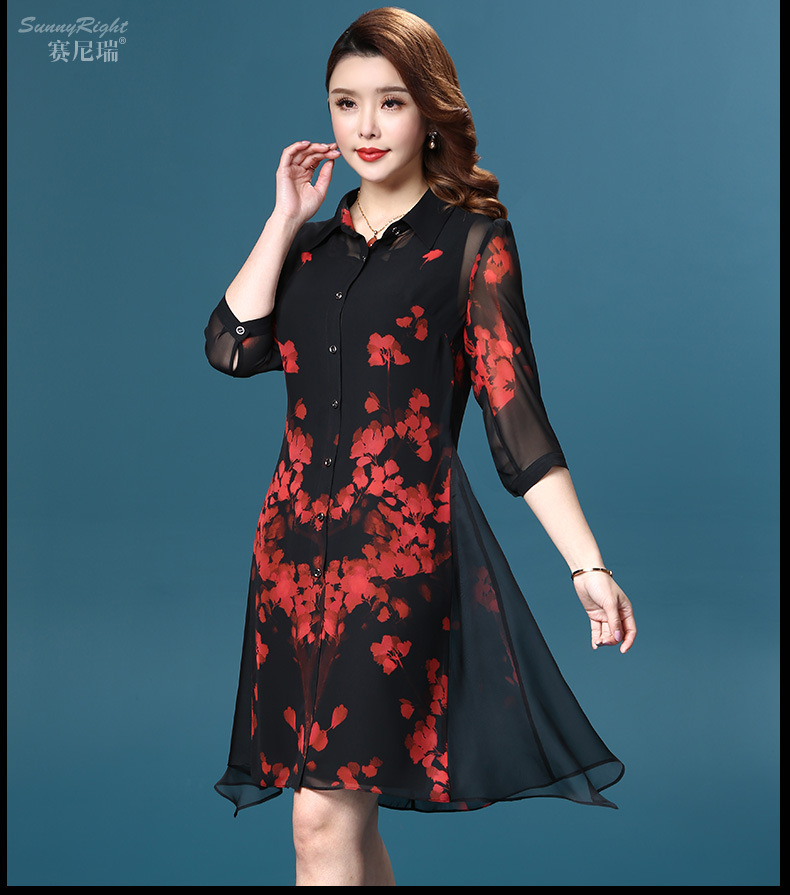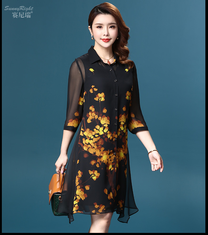 KLY1154 春夏新款气质两件套中腰修身印花七分袖连衣裙