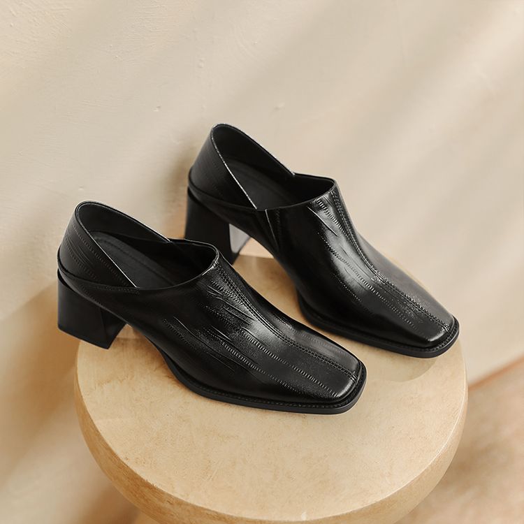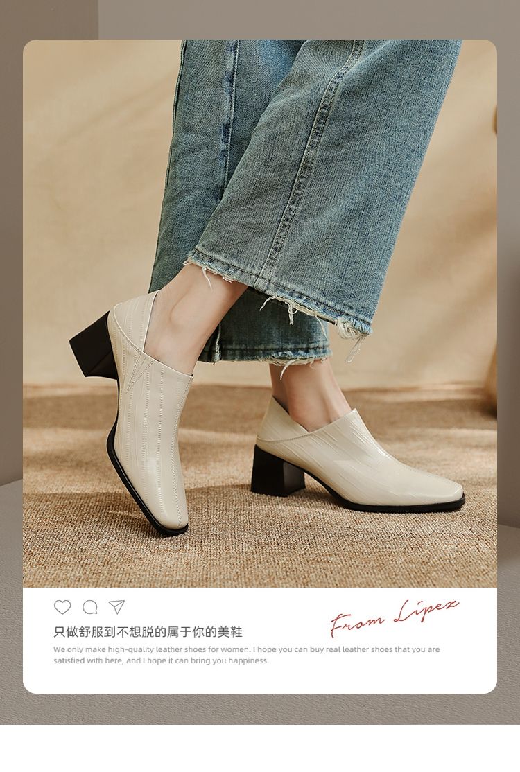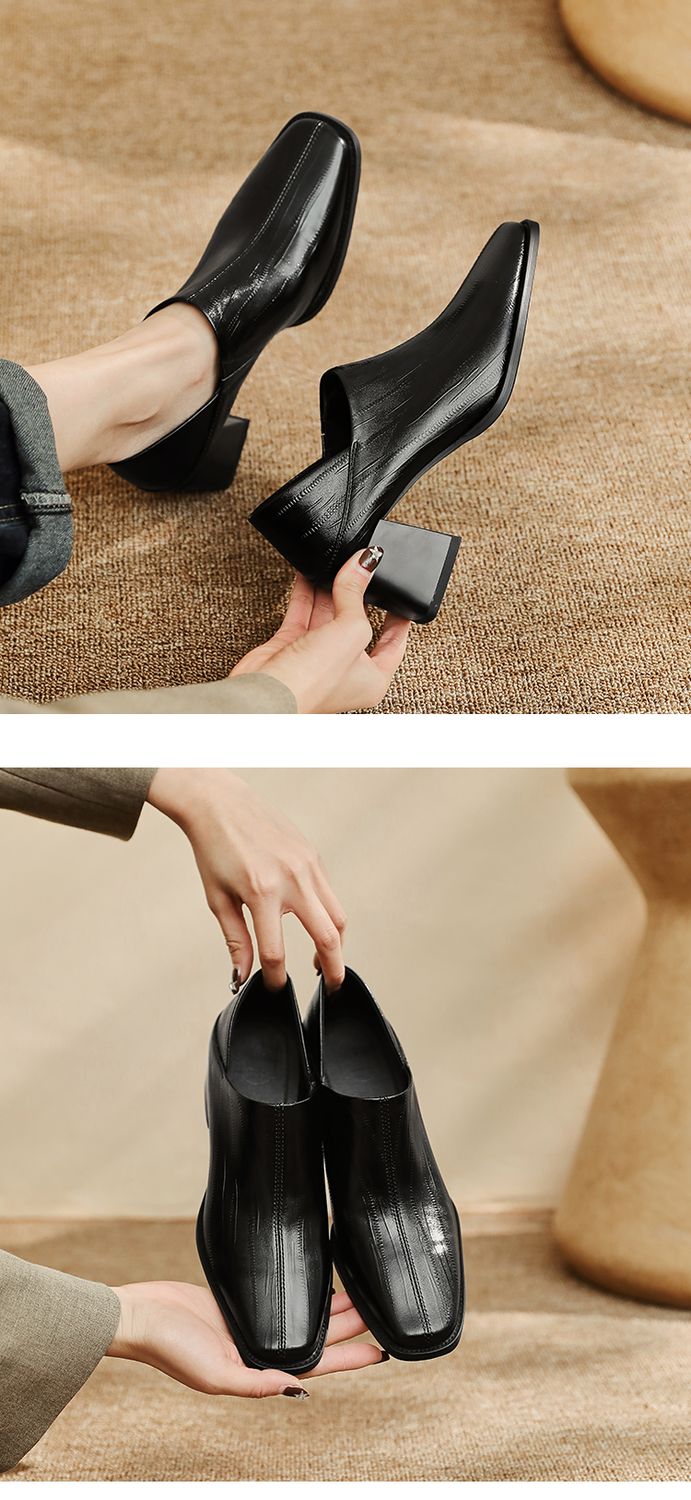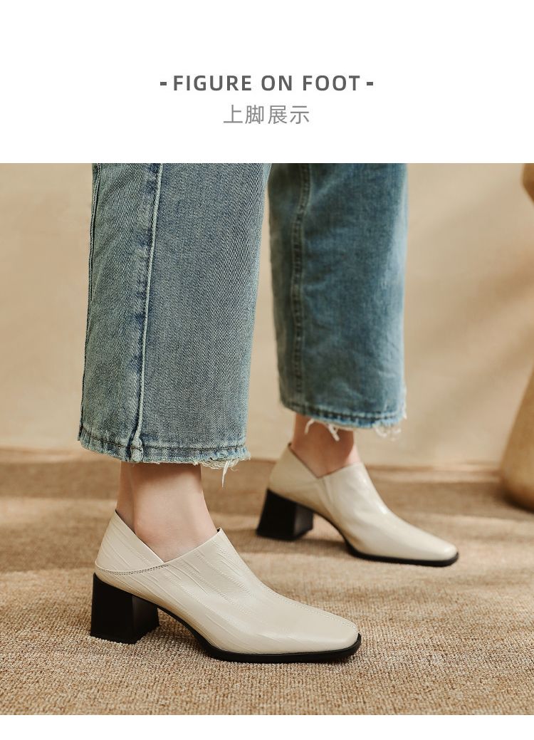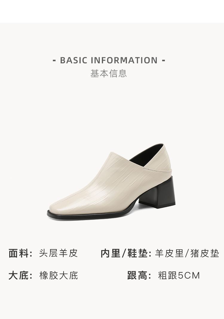【预售5天】舒适羊皮粗跟深口单鞋女2025早春新款简约方头通勤中跟小皮鞋女鞋LG&77-1068