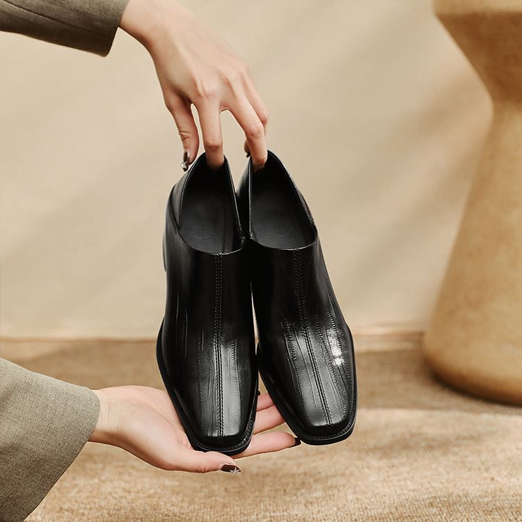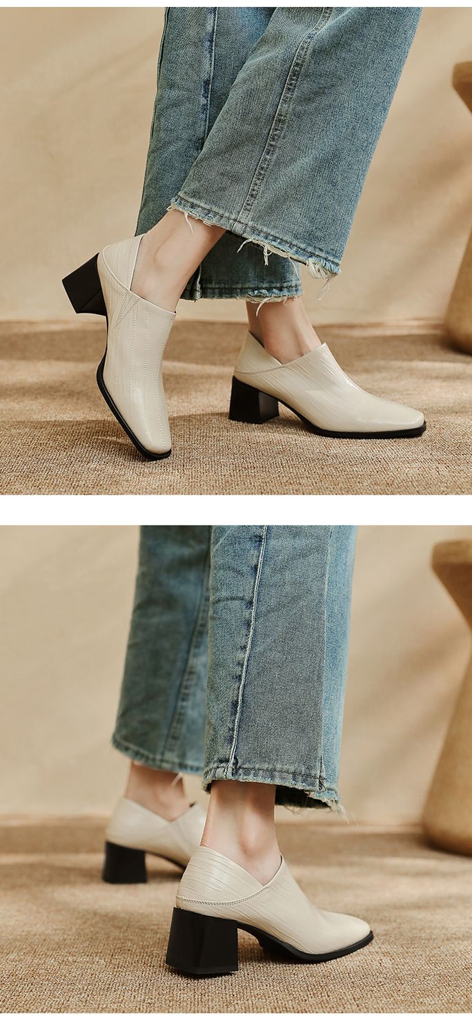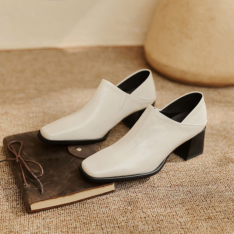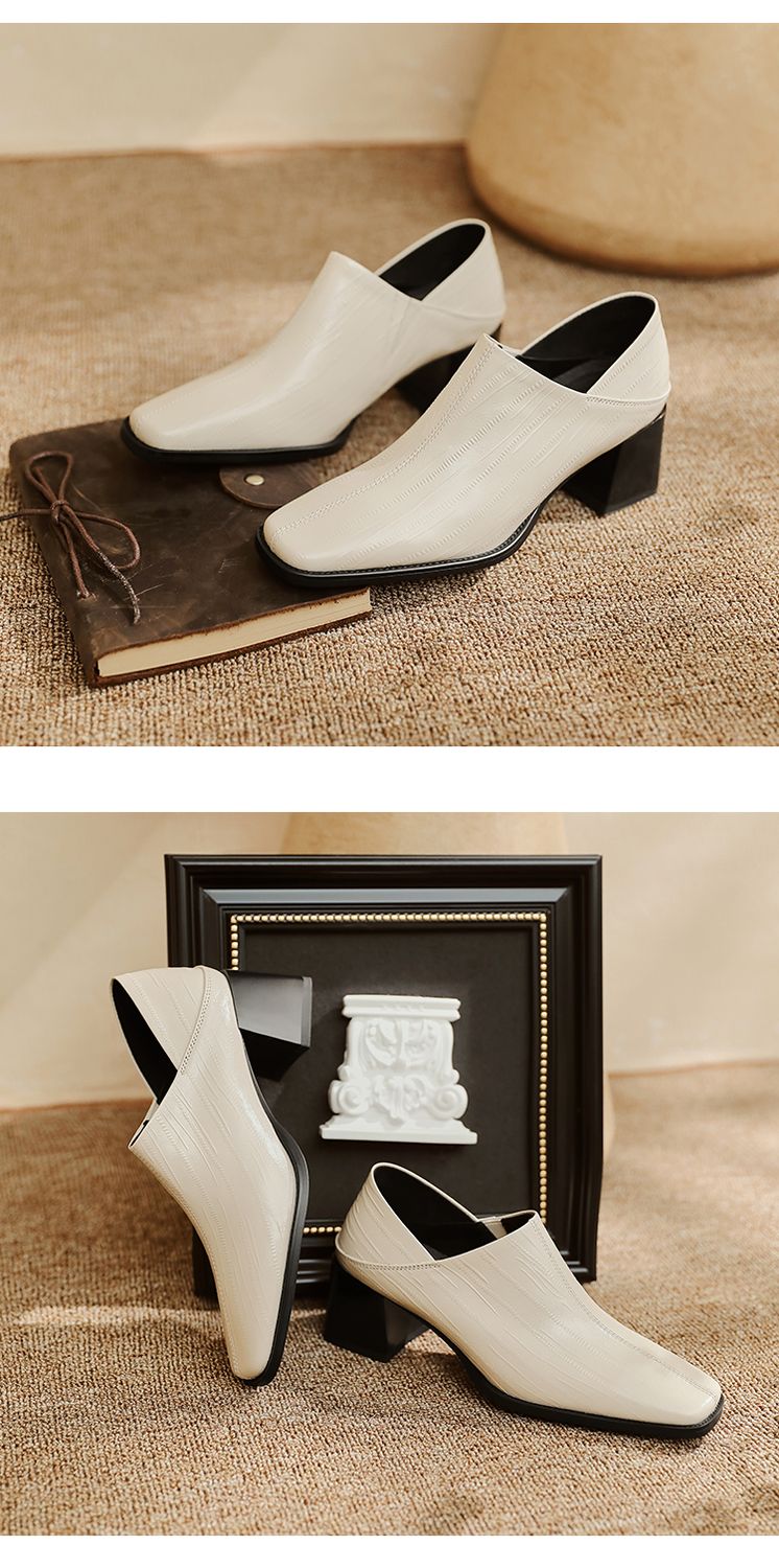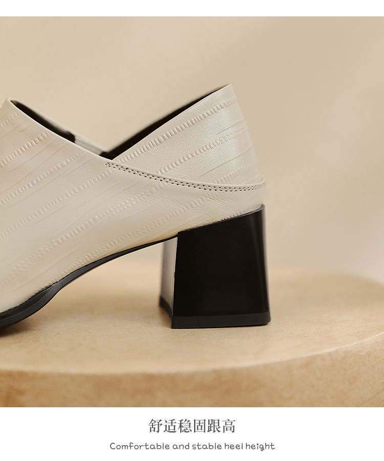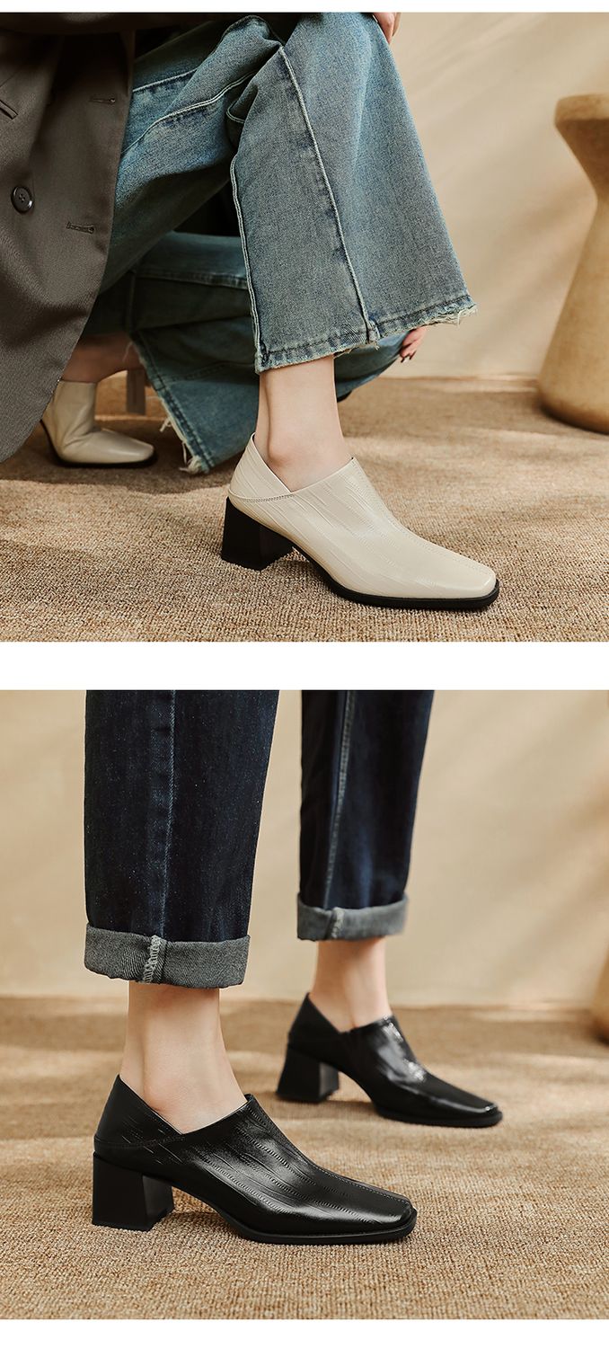 【预售5天】舒适羊皮粗跟深口单鞋女2025早春新款简约方头通勤中跟小皮鞋女鞋LG&77-1068